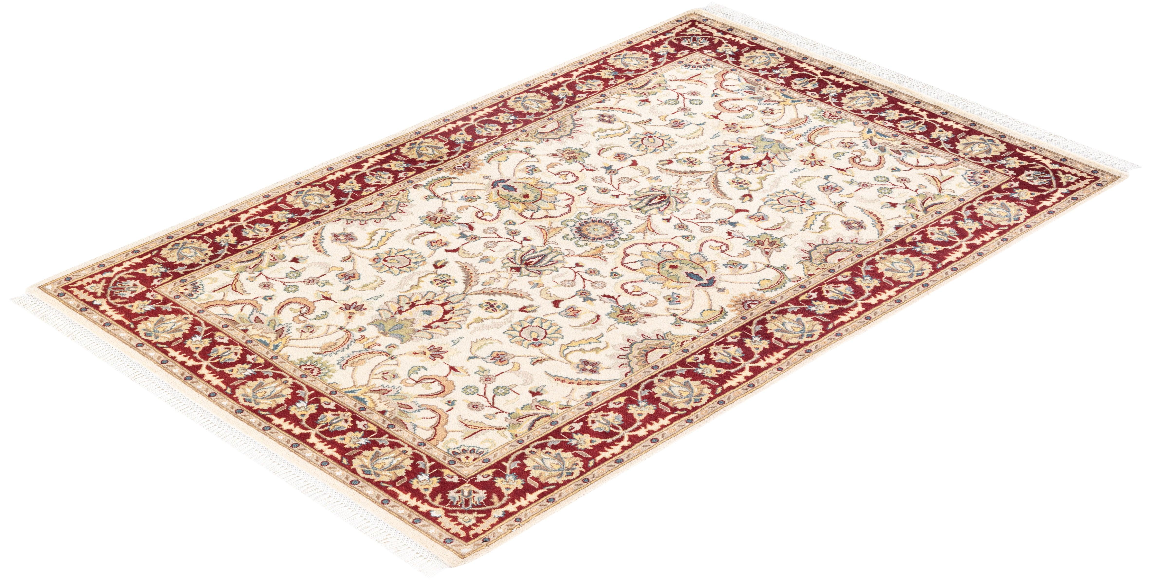 Traditional Hand Knotted Mogul Oriental Ivory Area Rug 4' 2" x 6' 5"