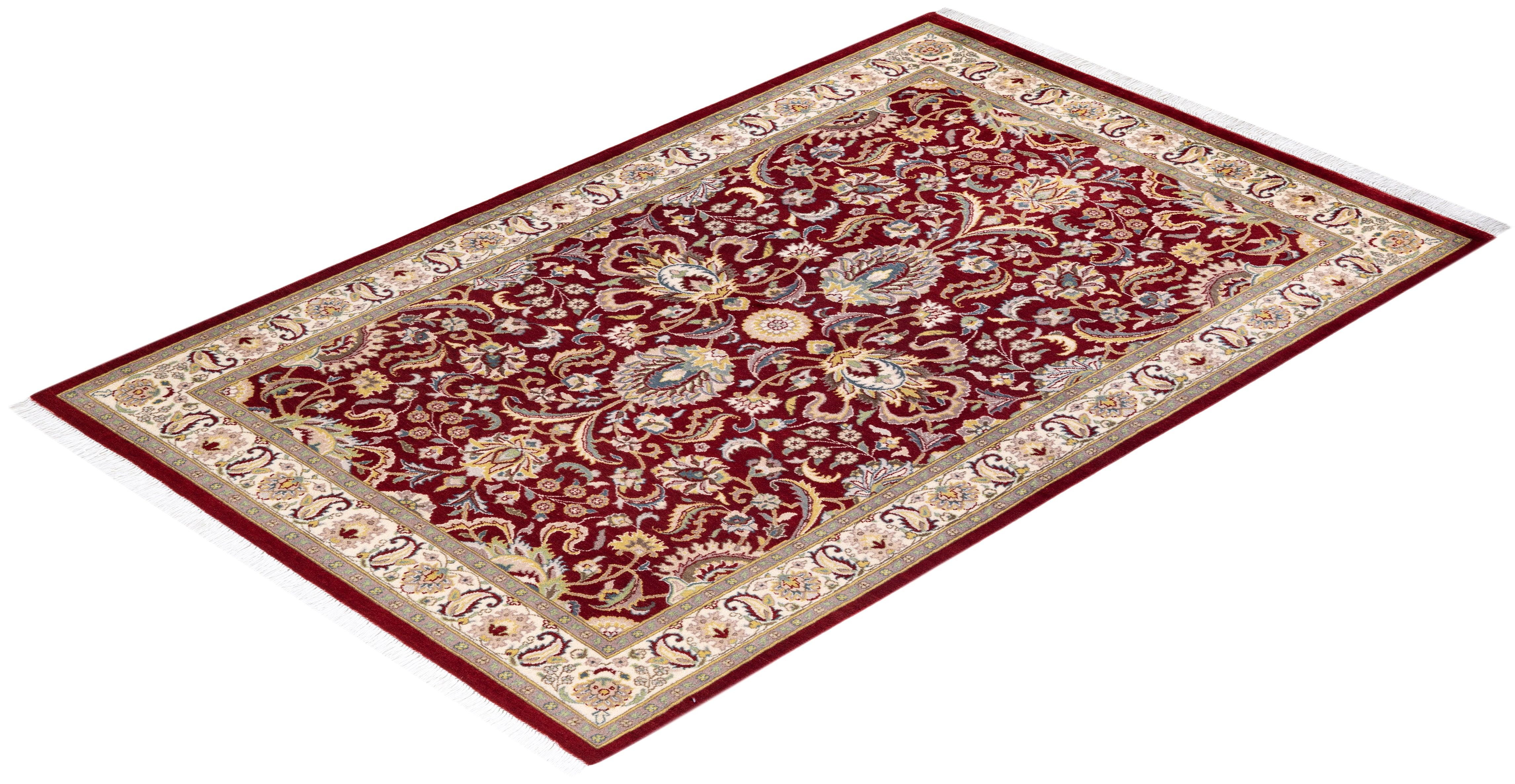 Traditional Hand Knotted Mogul Oriental Red Area Rug 4' 2" x 6' 7"