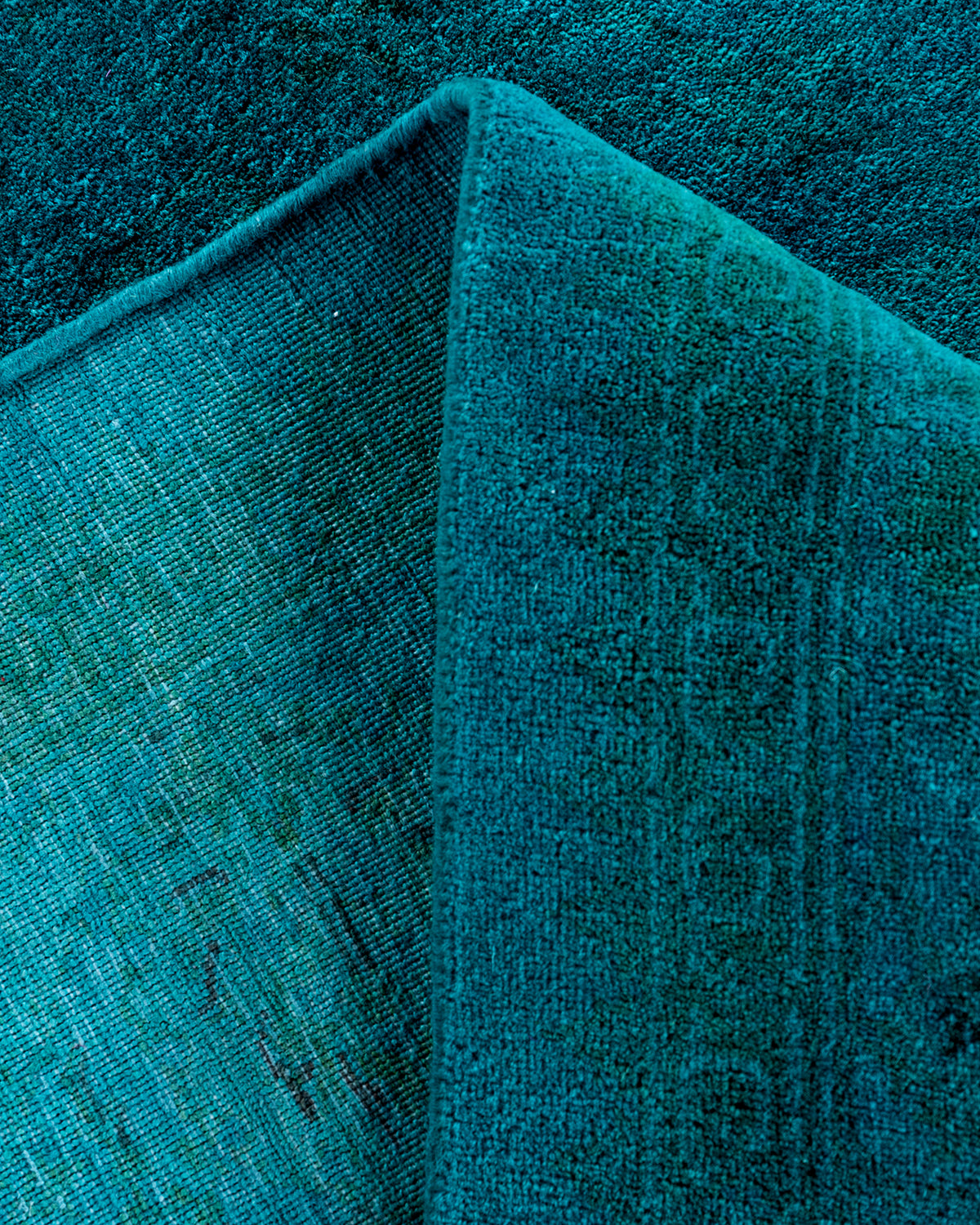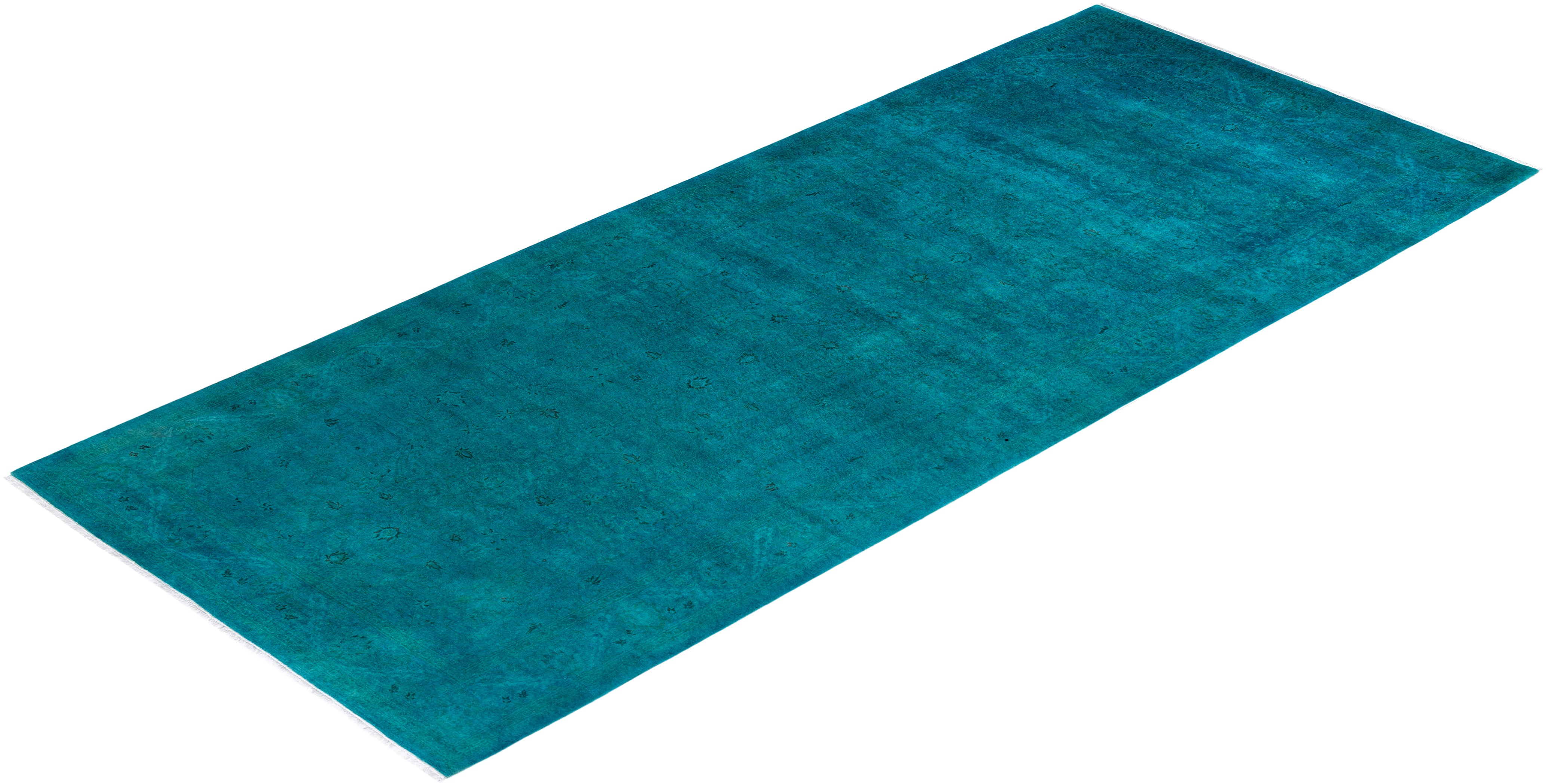 Contemporary Hand-Knotted Overdyed Blue Area Rug 5' 2" x 12' 7"