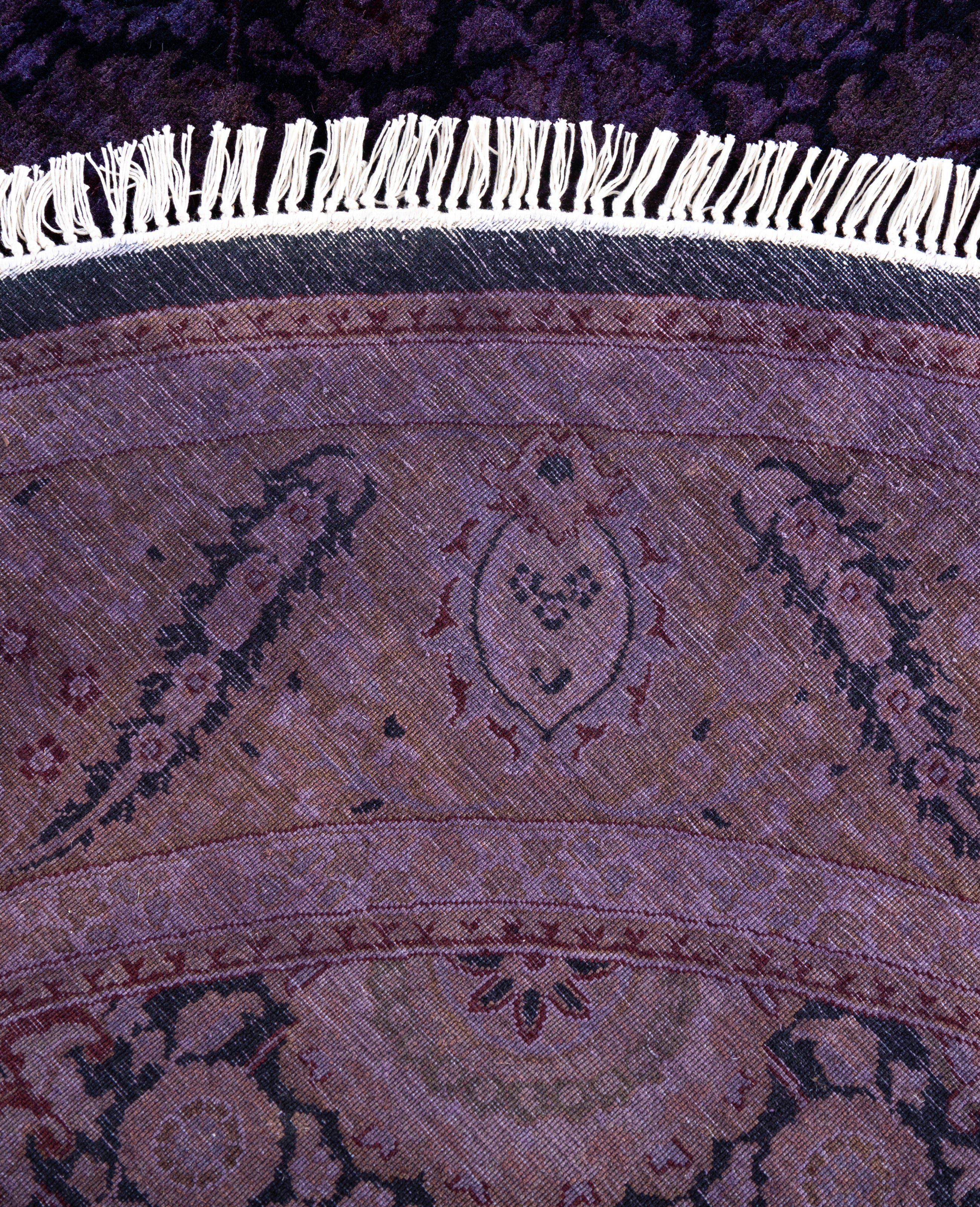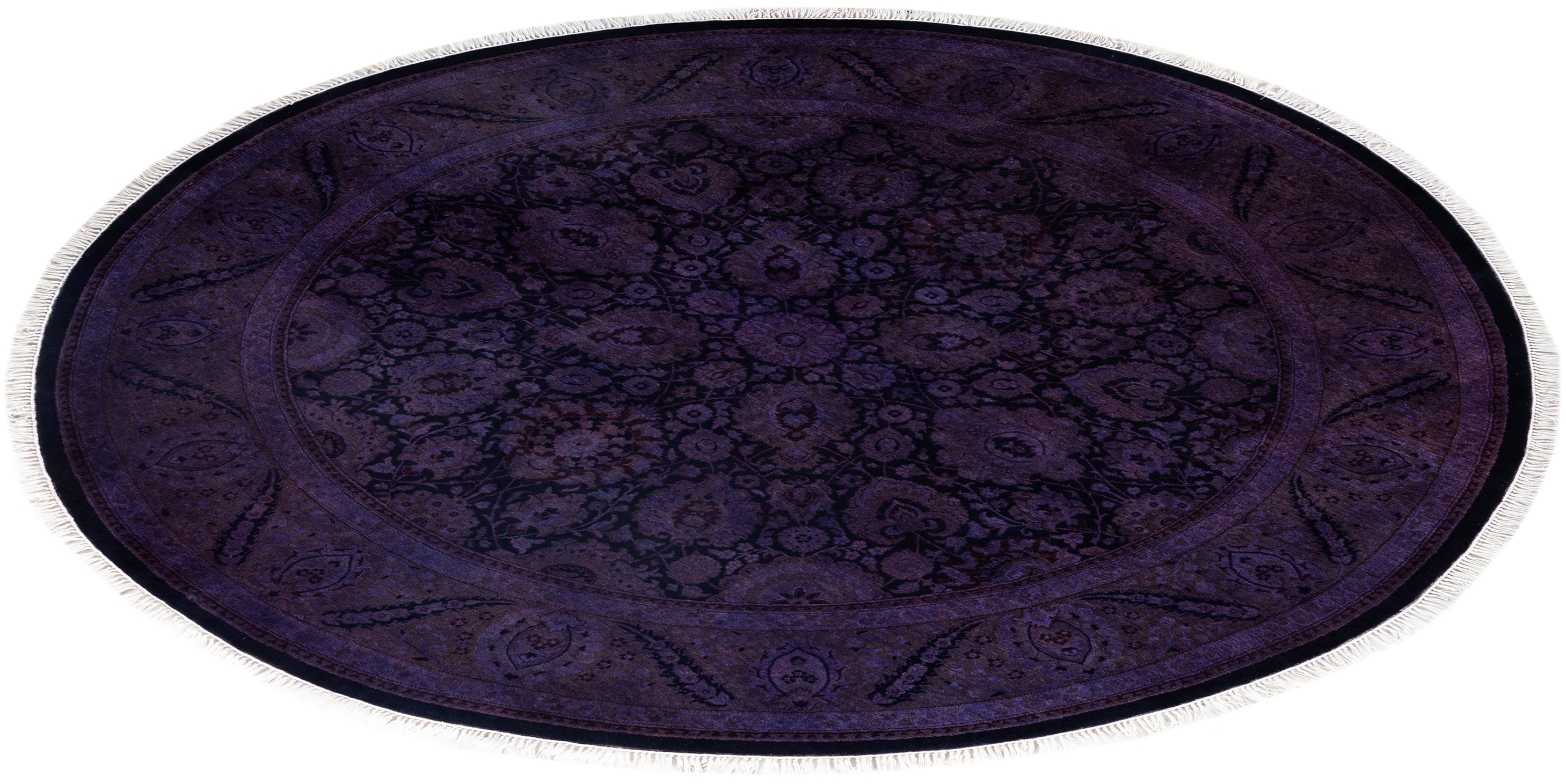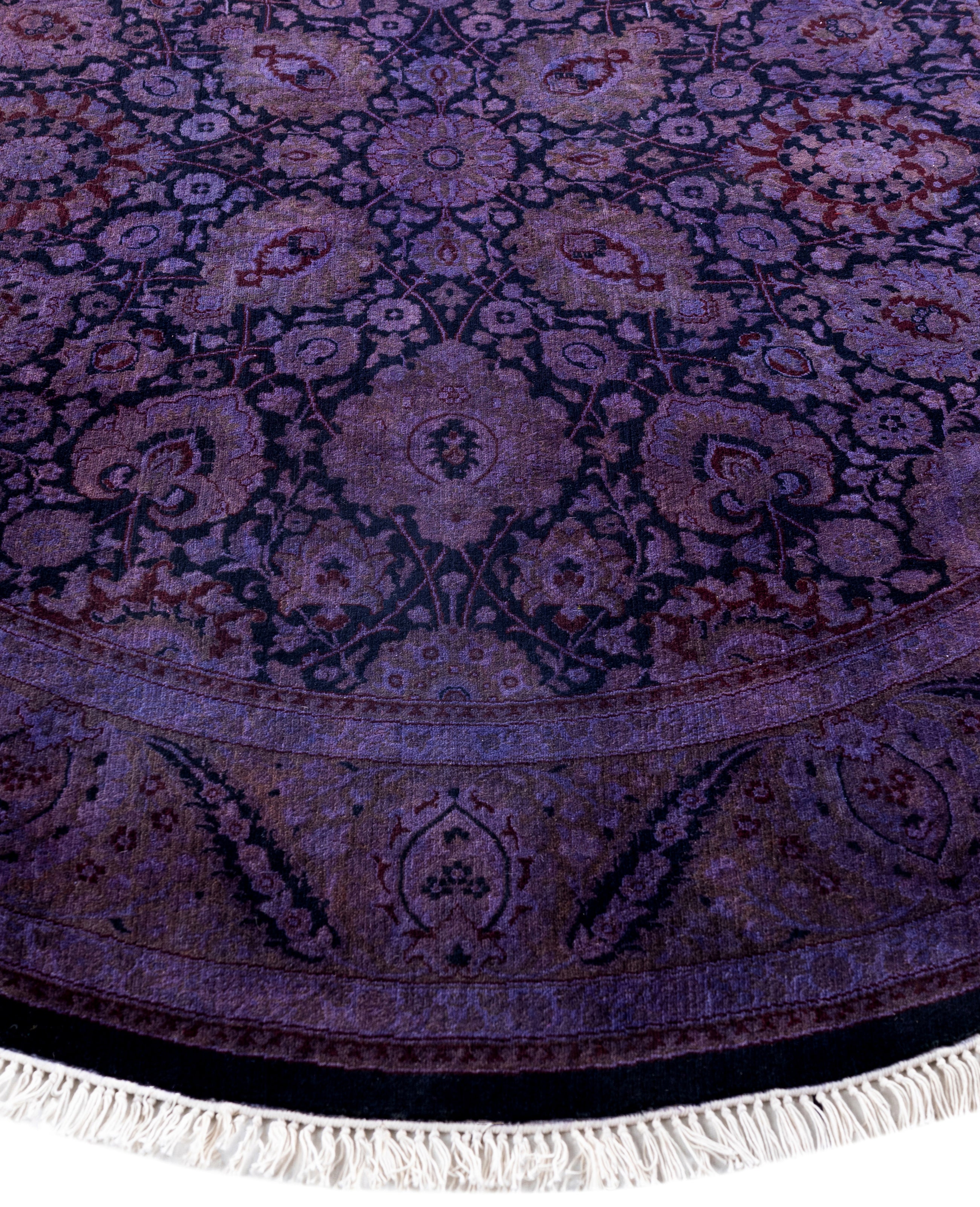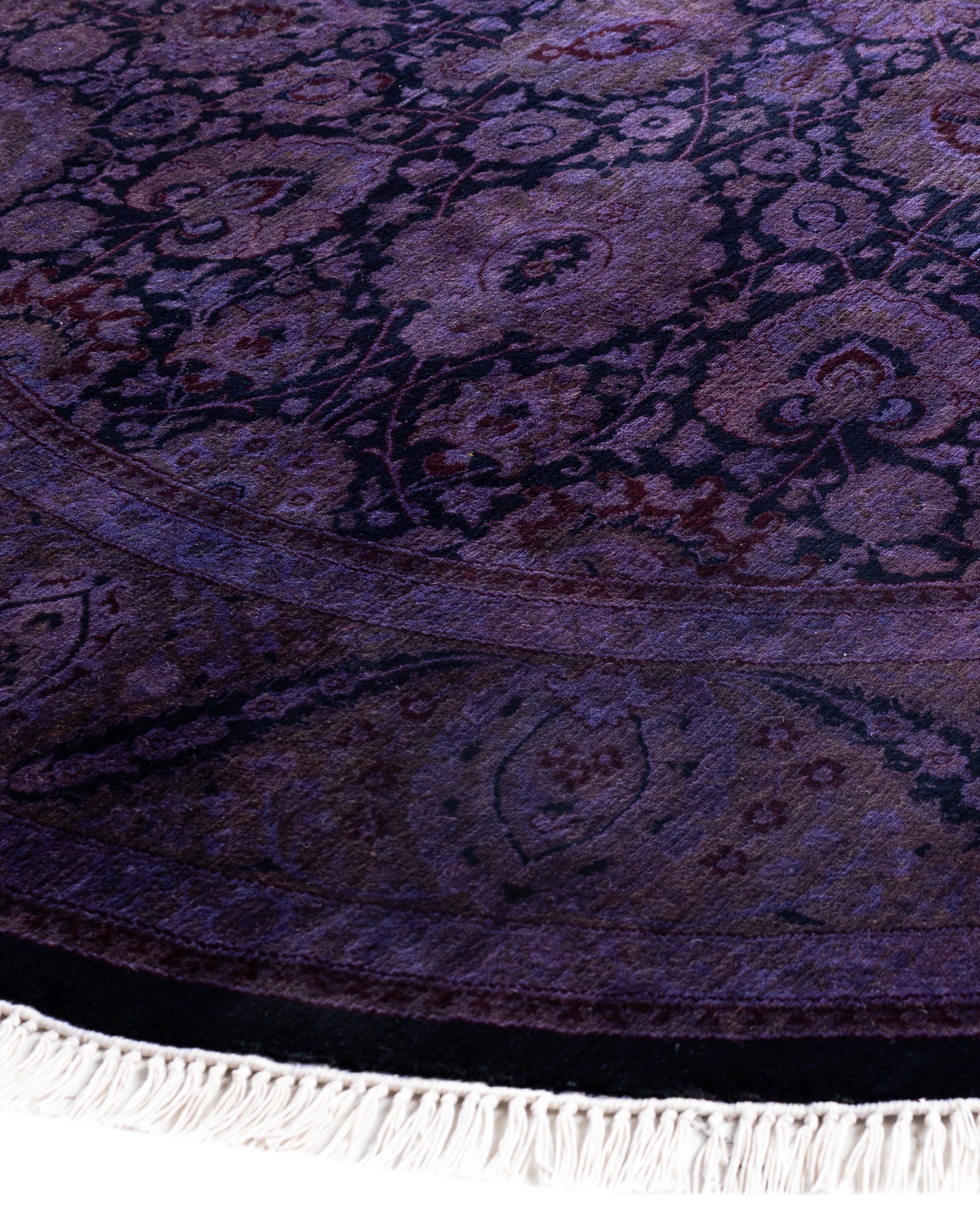 Overdyed One-of-a-Kind Wool Purple Round Area Rug 6' 1" x 6' 1"