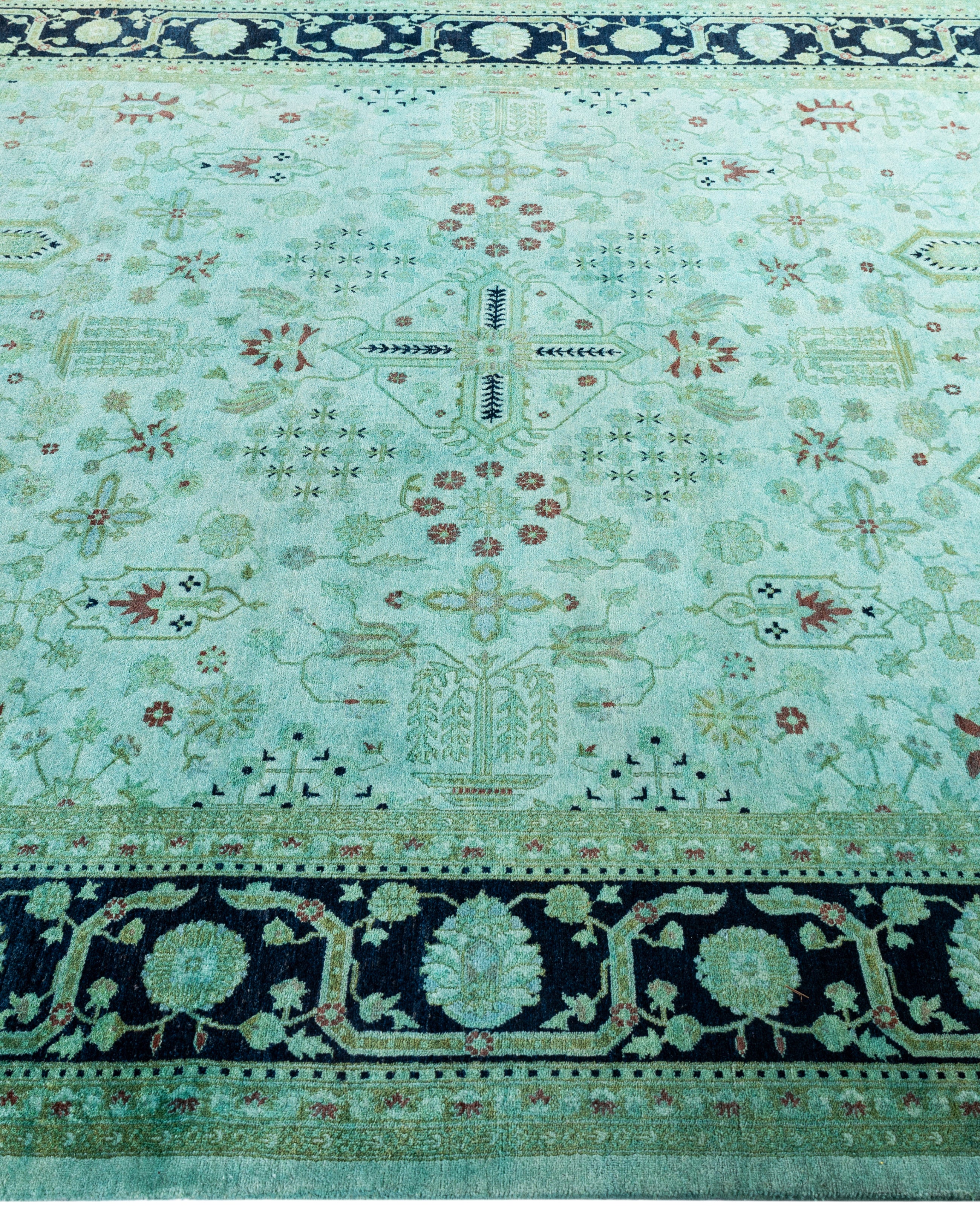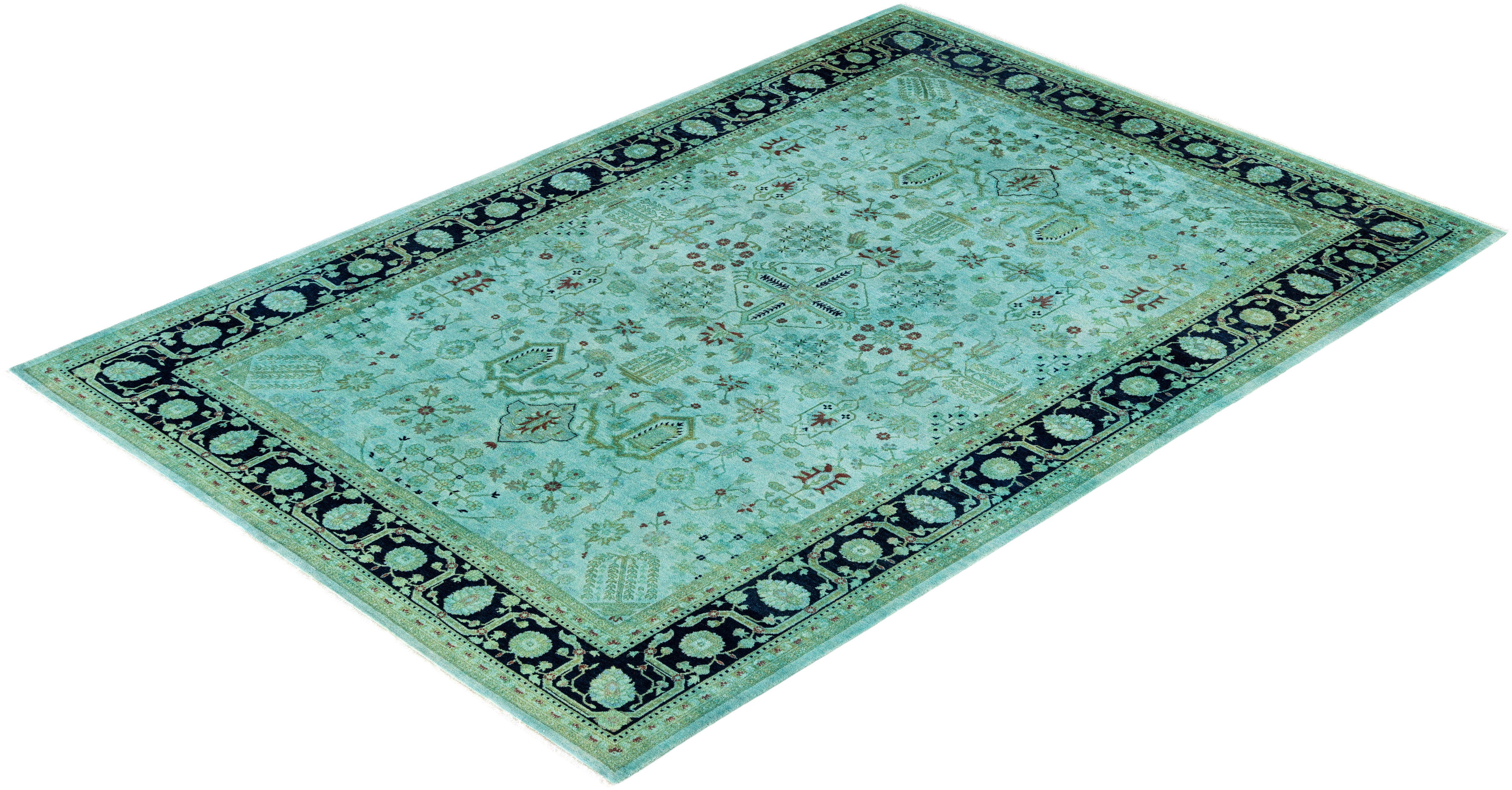 Contemporary Overdyed Wool Hand Knotted Green Area Rug 6' 1" x 8' 10"