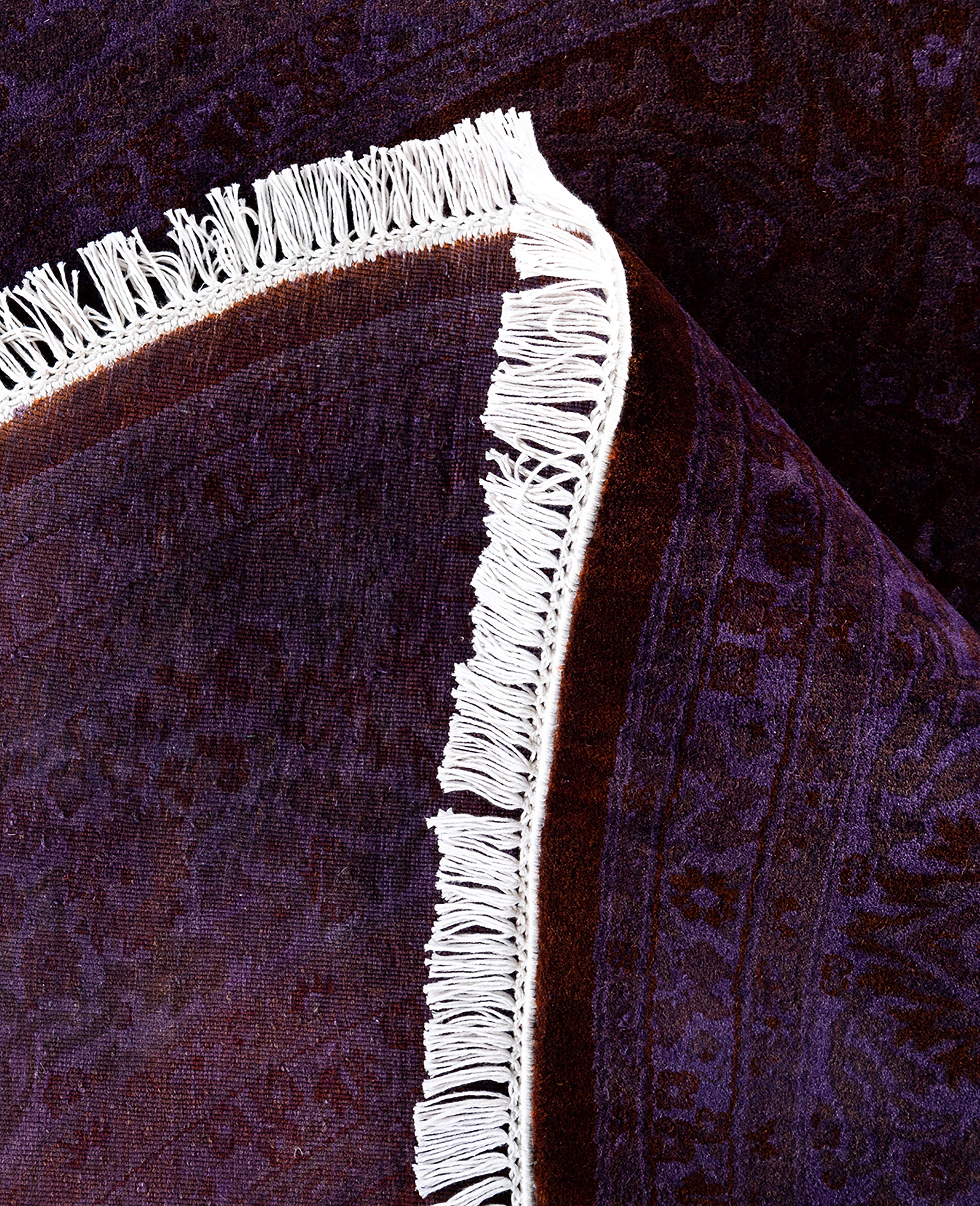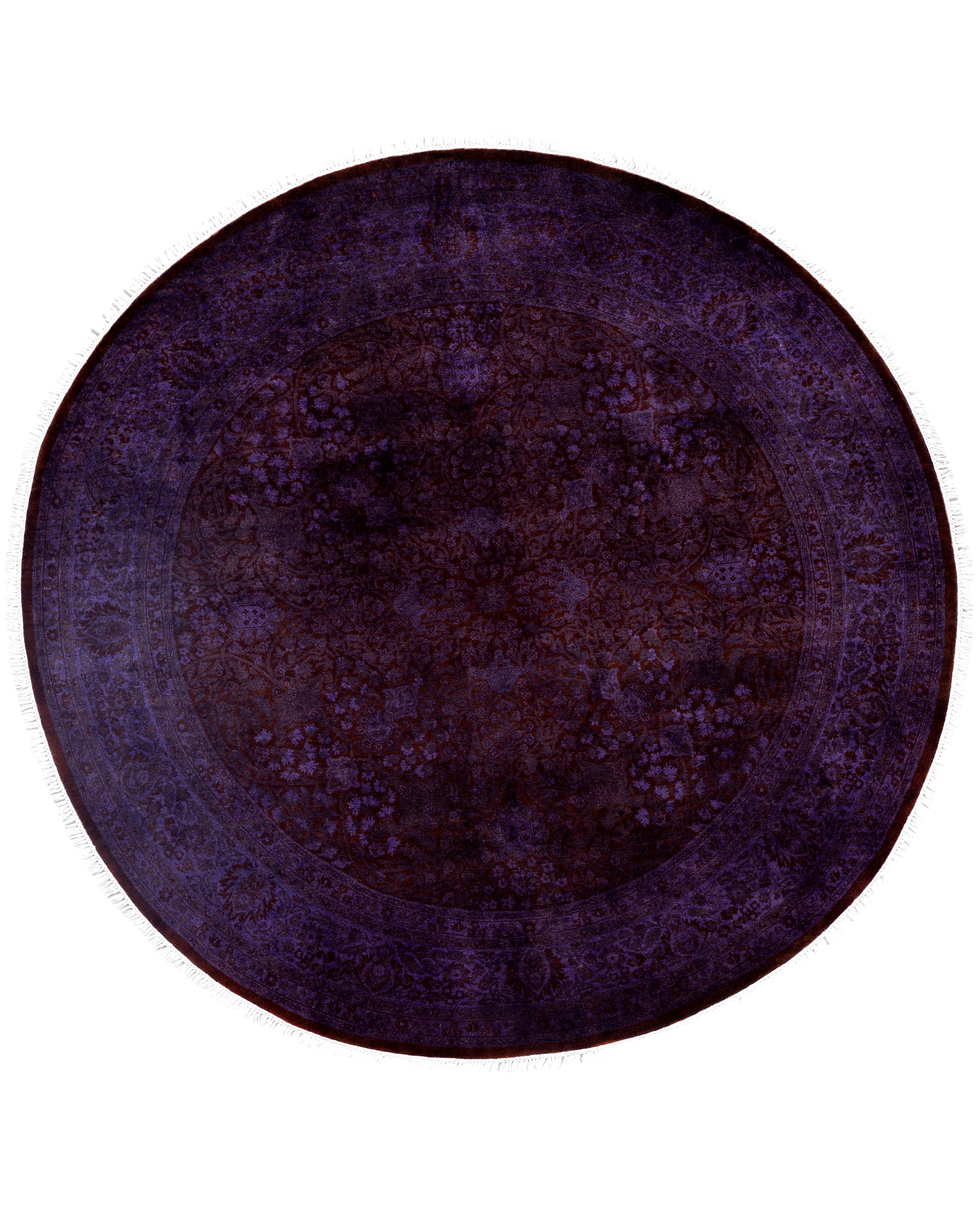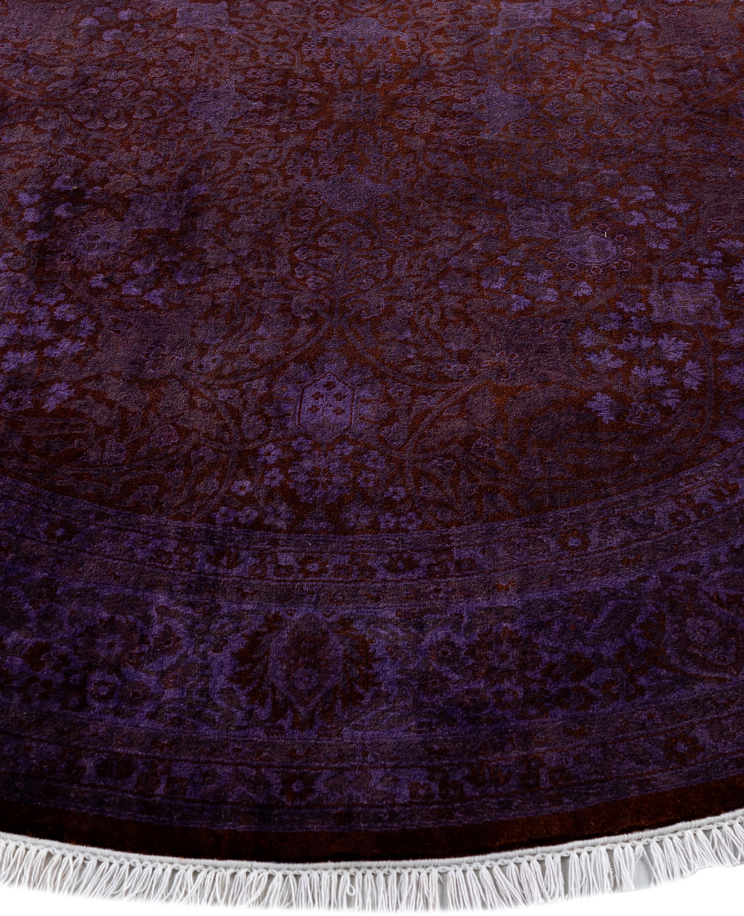 Overdyed One-of-a-Kind Wool Purple Round Area Rug 6' 1" x 6' 1"