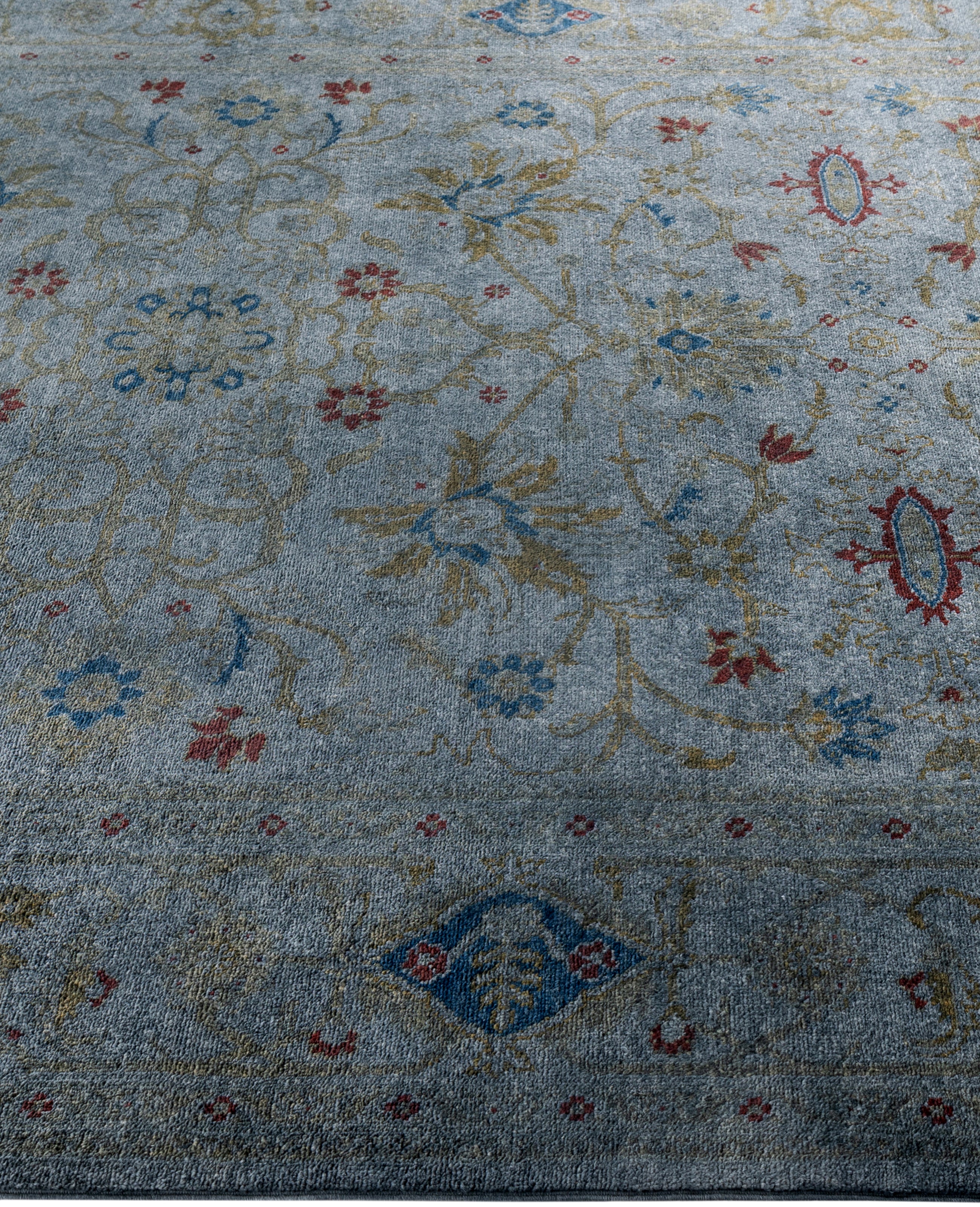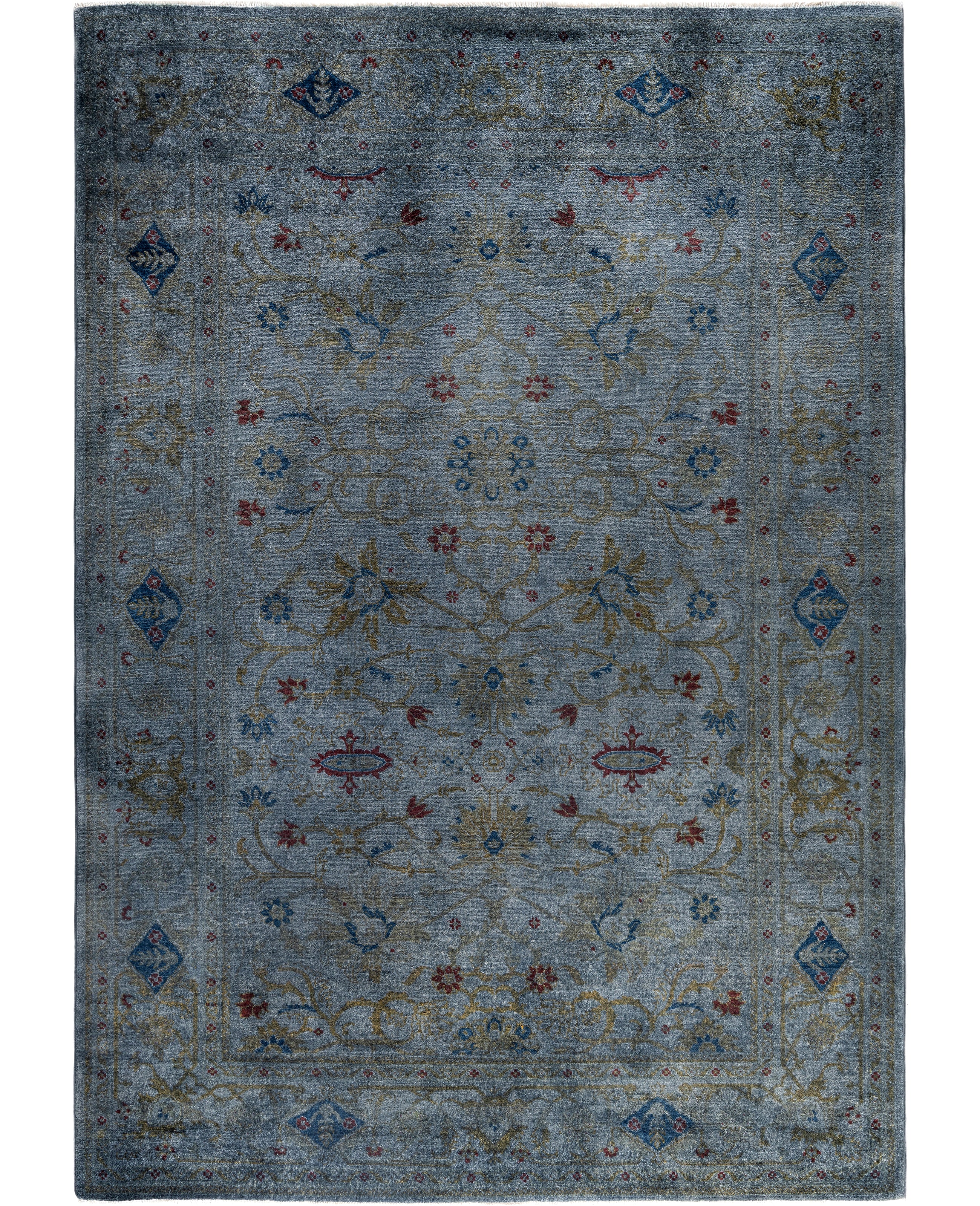 Over-dyed area rugs are created by taking vintage or traditional rugs and applying a vibrant, monochromatic dye over the existing patterns. This technique results in a bold, modern aesthetic while preserving the intricate designs beneath, blending the old with the new. The rugs are often faded and distressed before dyeing, which adds texture and depth to their appearance. The over-dye process breathes new life into worn or antique rugs, giving them a contemporary twist with rich, saturated colors like deep blues, purples, or bright reds. These rugs work well in both eclectic and modern spaces, offering a unique, artistic flair to any room. They provide a dynamic focal point, balancing between traditional craftsmanship and contemporary design trends. Over-dyed rugs are perfect for those looking to add a pop of color and character to their home decor.