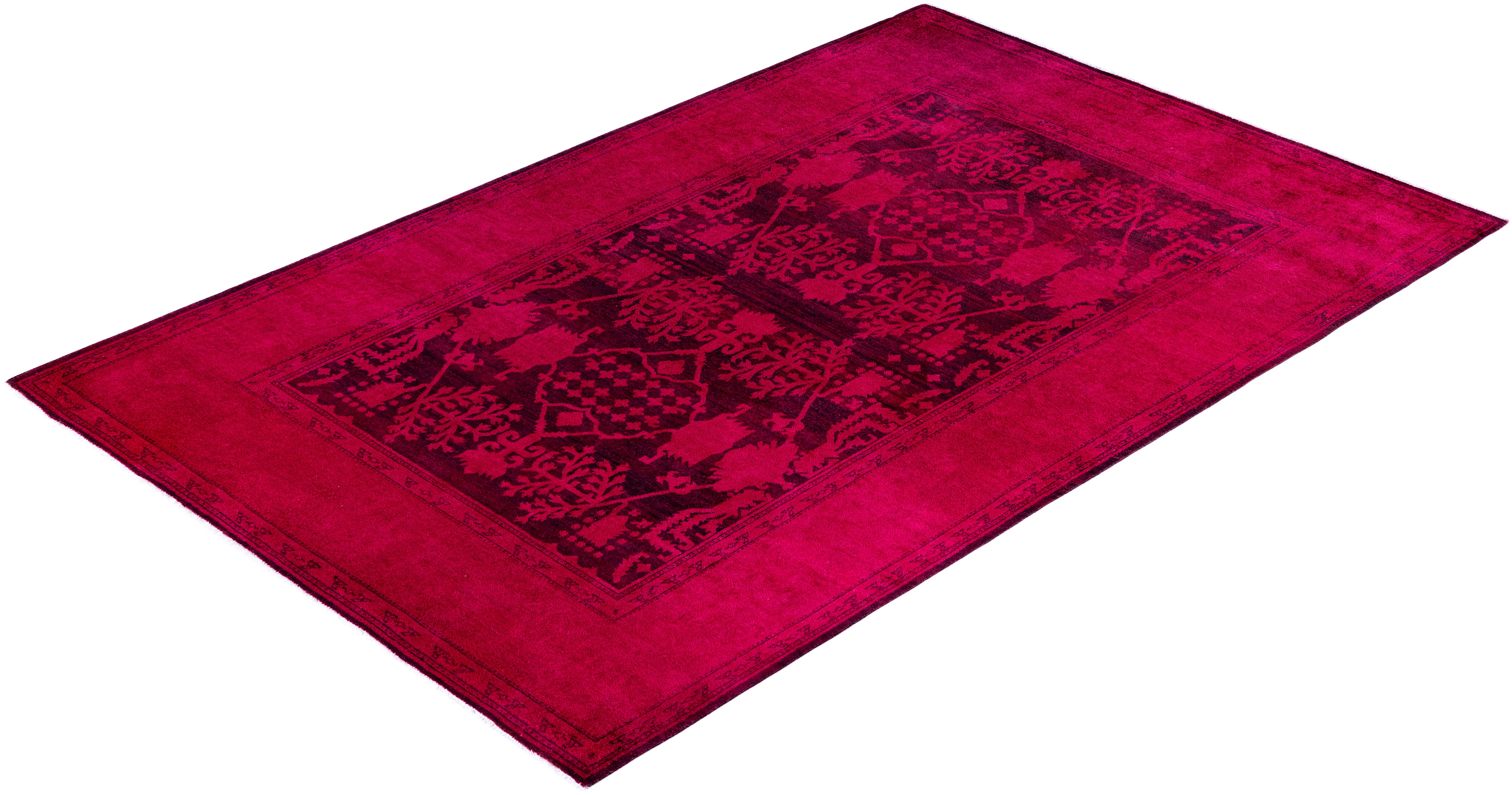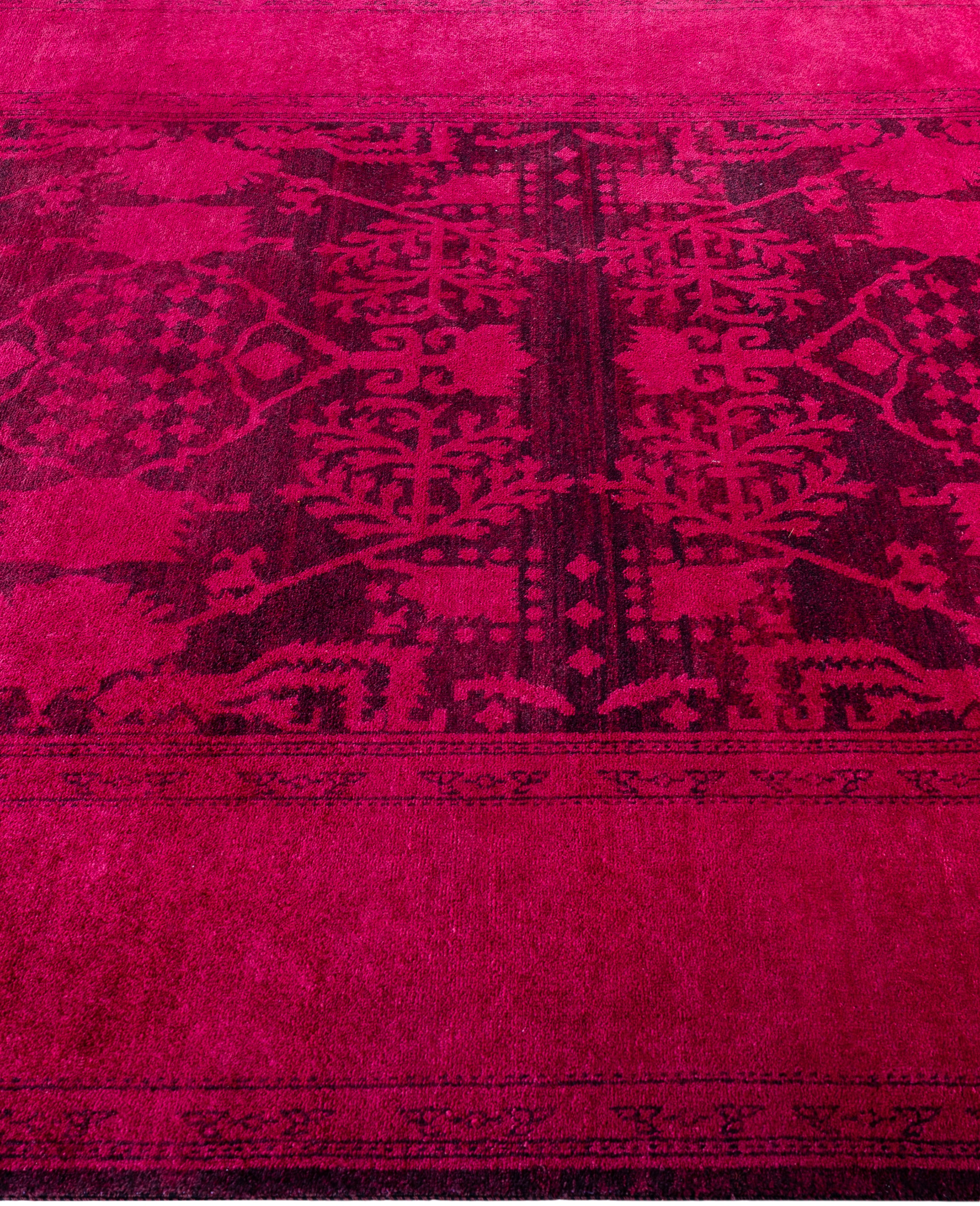 Contemporary Overdyed Wool Hand Knotted Pink Area Rug 6' 1" x 9' 5"