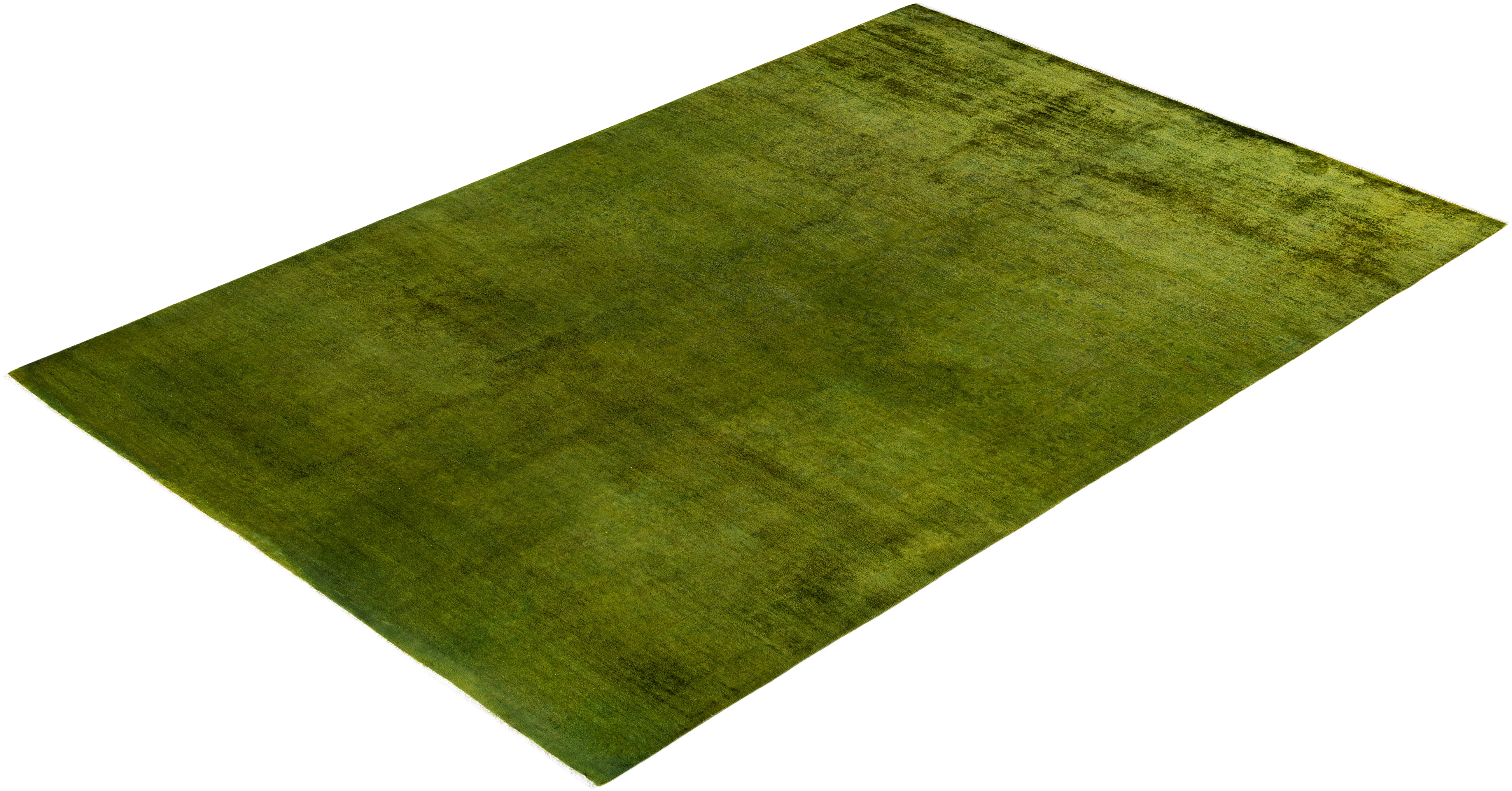 Contemporary Overdyed Wool Hand Knotted Green Area Rug 6' 3" x 9' 1"