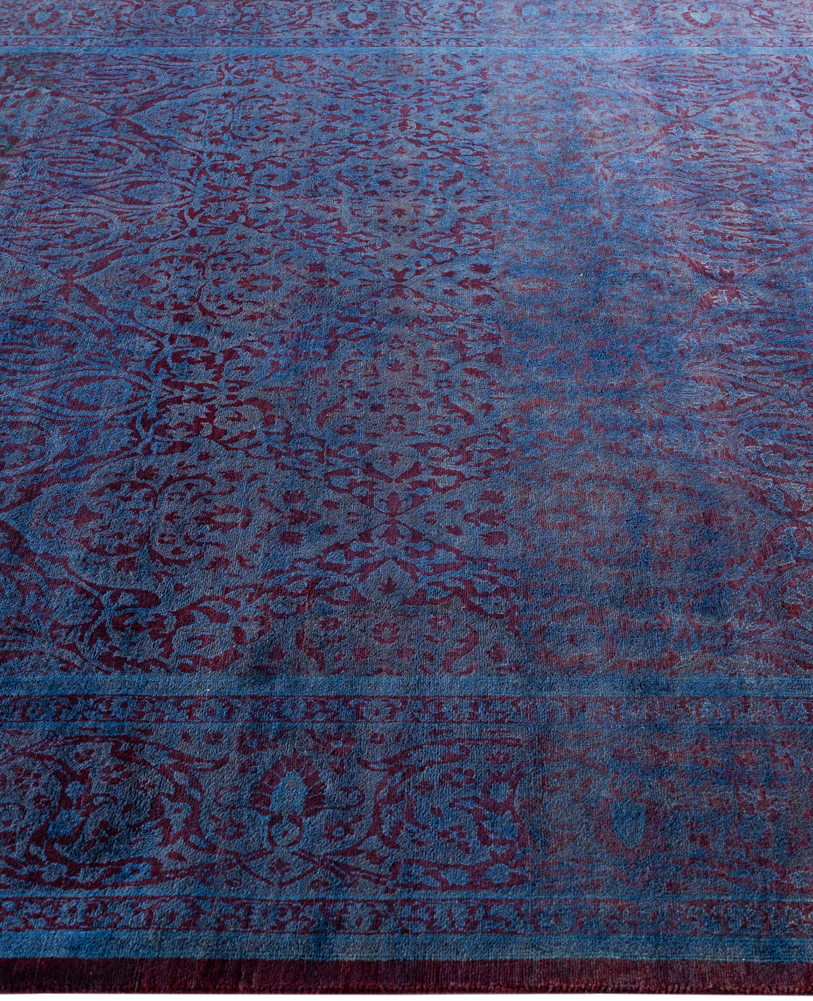 Over-dyed area rugs are created by taking vintage or traditional rugs and applying a vibrant, monochromatic dye over the existing patterns. This technique results in a bold, modern aesthetic while preserving the intricate designs beneath, blending the old with the new. The rugs are often faded and distressed before dyeing, which adds texture and depth to their appearance. The over-dye process breathes new life into worn or antique rugs, giving them a contemporary twist with rich, saturated colors like deep blues, purples, or bright reds. These rugs work well in both eclectic and modern spaces, offering a unique, artistic flair to any room. They provide a dynamic focal point, balancing between traditional craftsmanship and contemporary design trends. Over-dyed rugs are perfect for those looking to add a pop of color and character to their home decor.