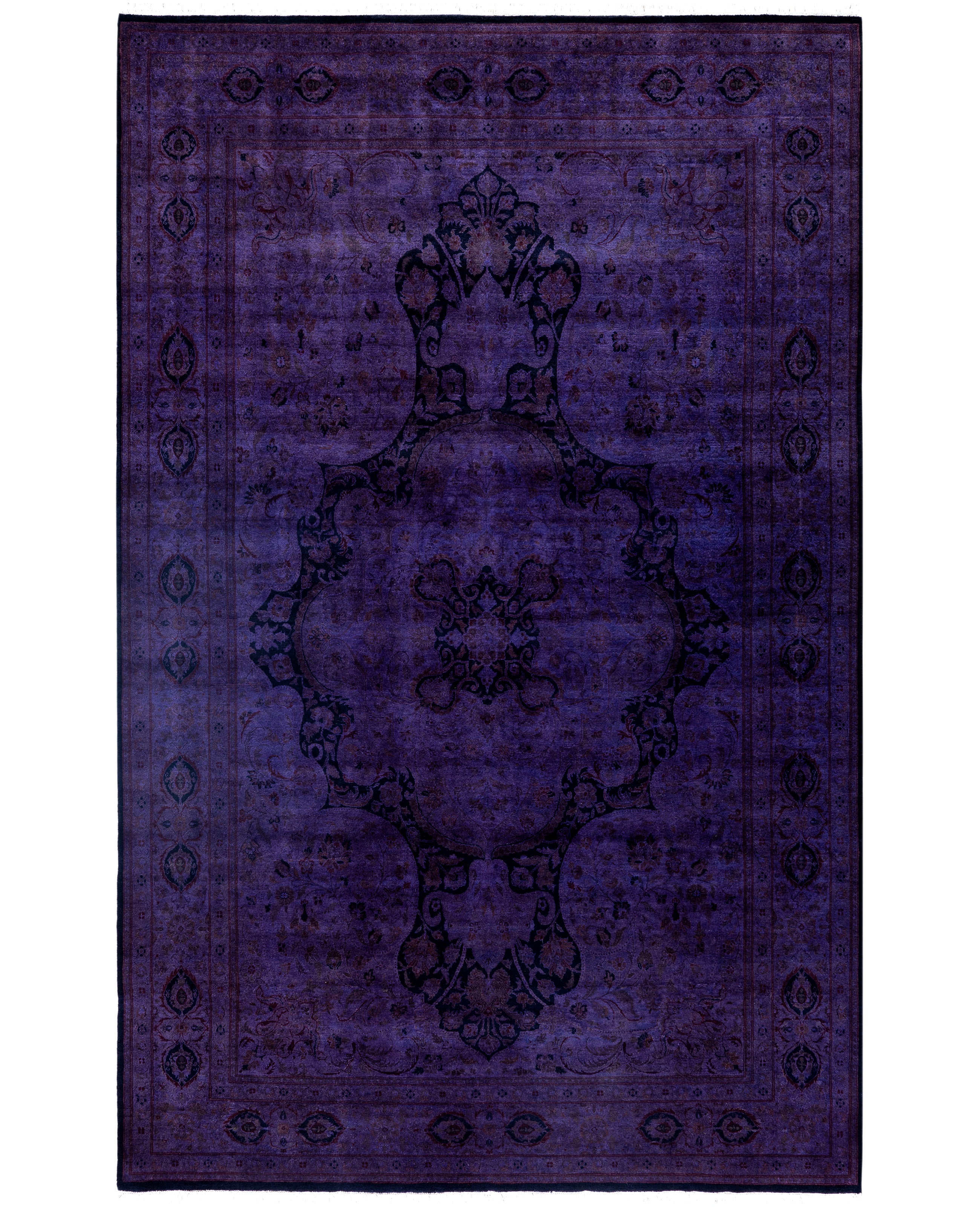 Over-dyed area rugs are created by taking vintage or traditional rugs and applying a vibrant, monochromatic dye over the existing patterns. This technique results in a bold, modern aesthetic while preserving the intricate designs beneath, blending the old with the new. The rugs are often faded and distressed before dyeing, which adds texture and depth to their appearance. The over-dye process breathes new life into worn or antique rugs, giving them a contemporary twist with rich, saturated colors like deep blues, purples, or bright reds. These rugs work well in both eclectic and modern spaces, offering a unique, artistic flair to any room. They provide a dynamic focal point, balancing between traditional craftsmanship and contemporary design trends. Over-dyed rugs are perfect for those looking to add a pop of color and character to their home decor.