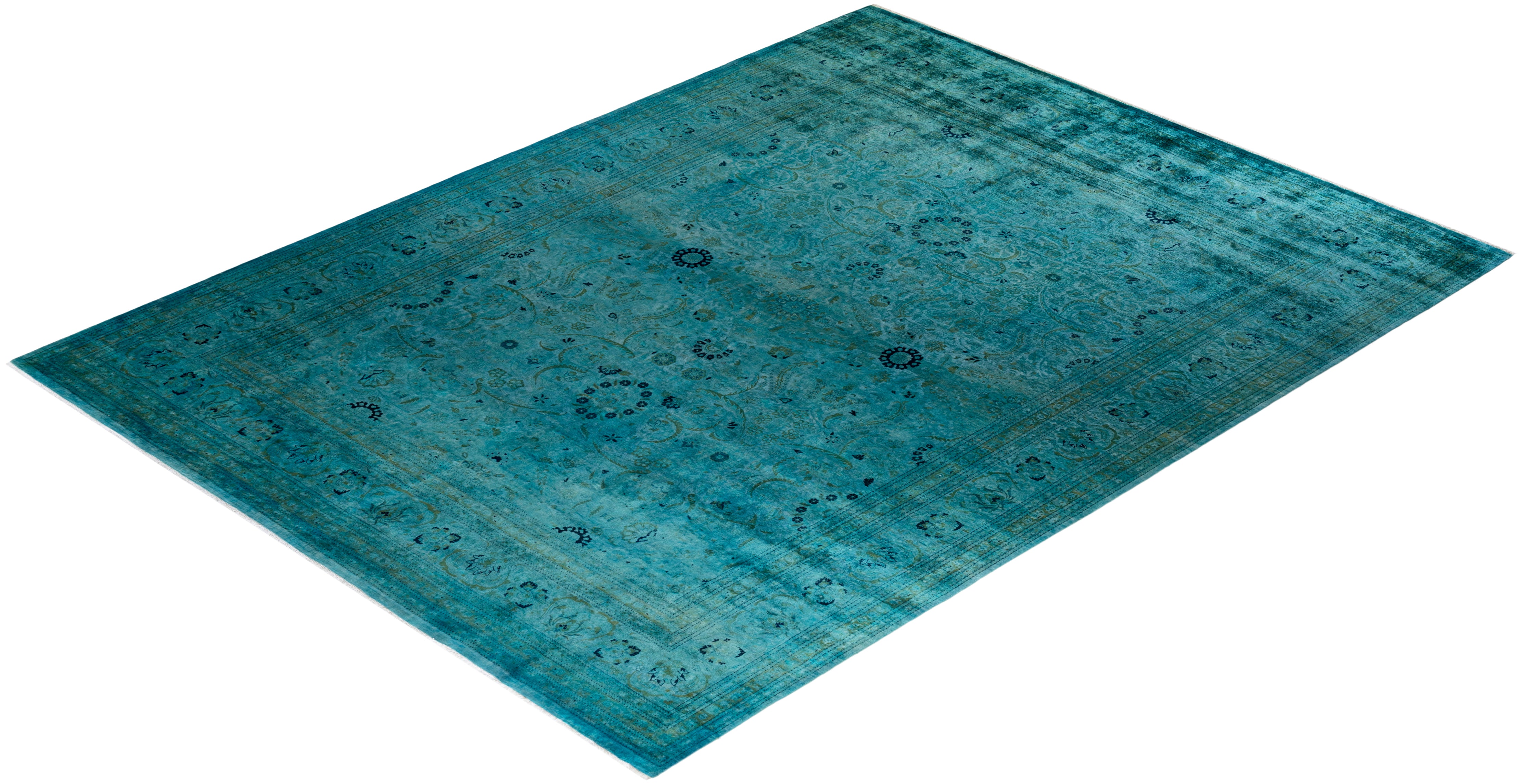 Contemporary Hand Knotted Overdyed Blue Area Rug 9' 1" x 12' 1"
