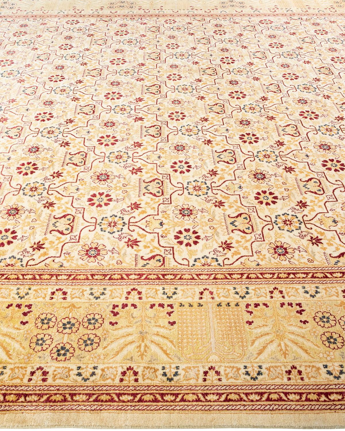 Traditional Hand Knotted Mogul Floral Ivory Area Rug 9' 1" x 11' 8"
