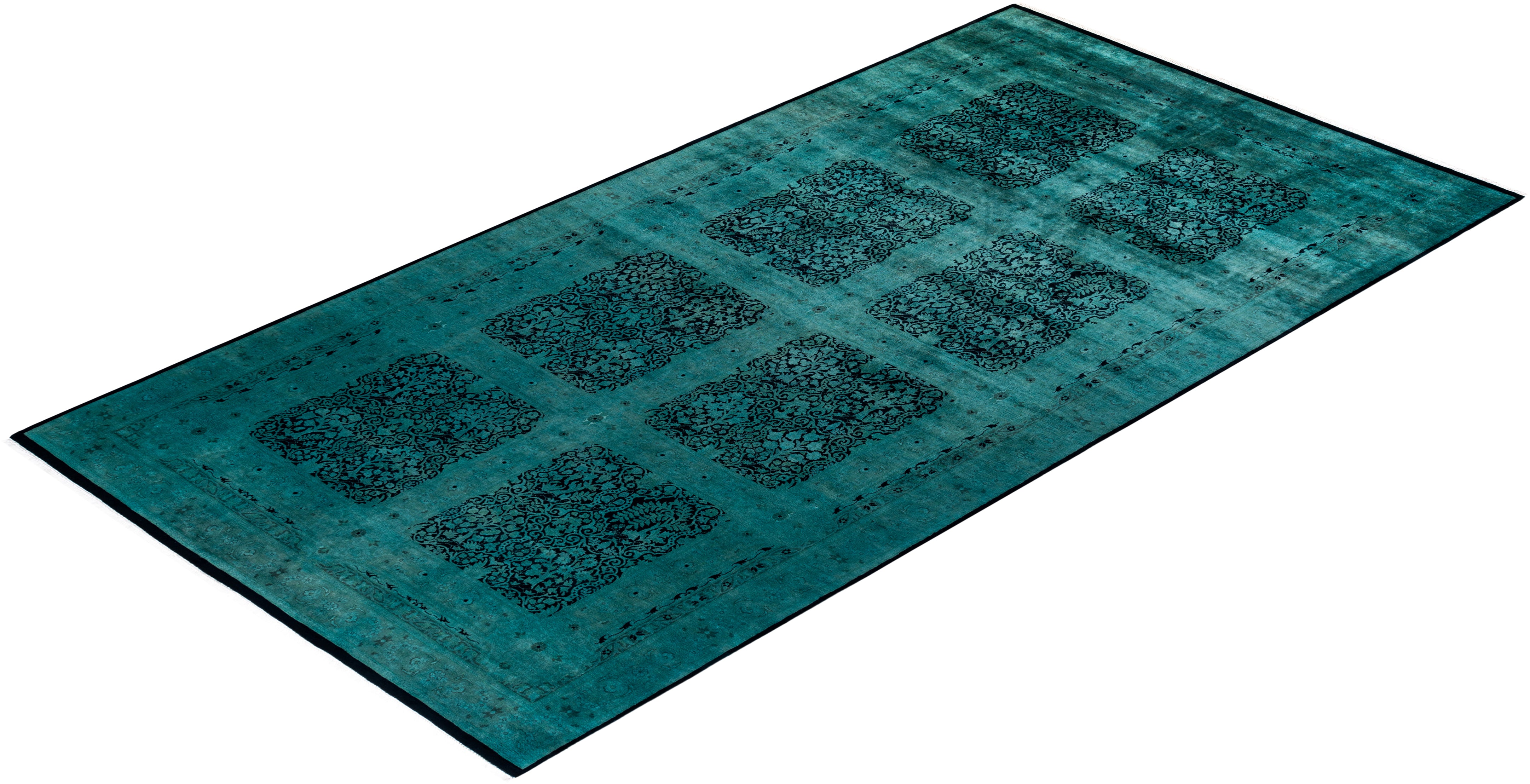 Contemporary Hand Knotted Overdyed Blue Area Rug 6' 1" x 12' 0"