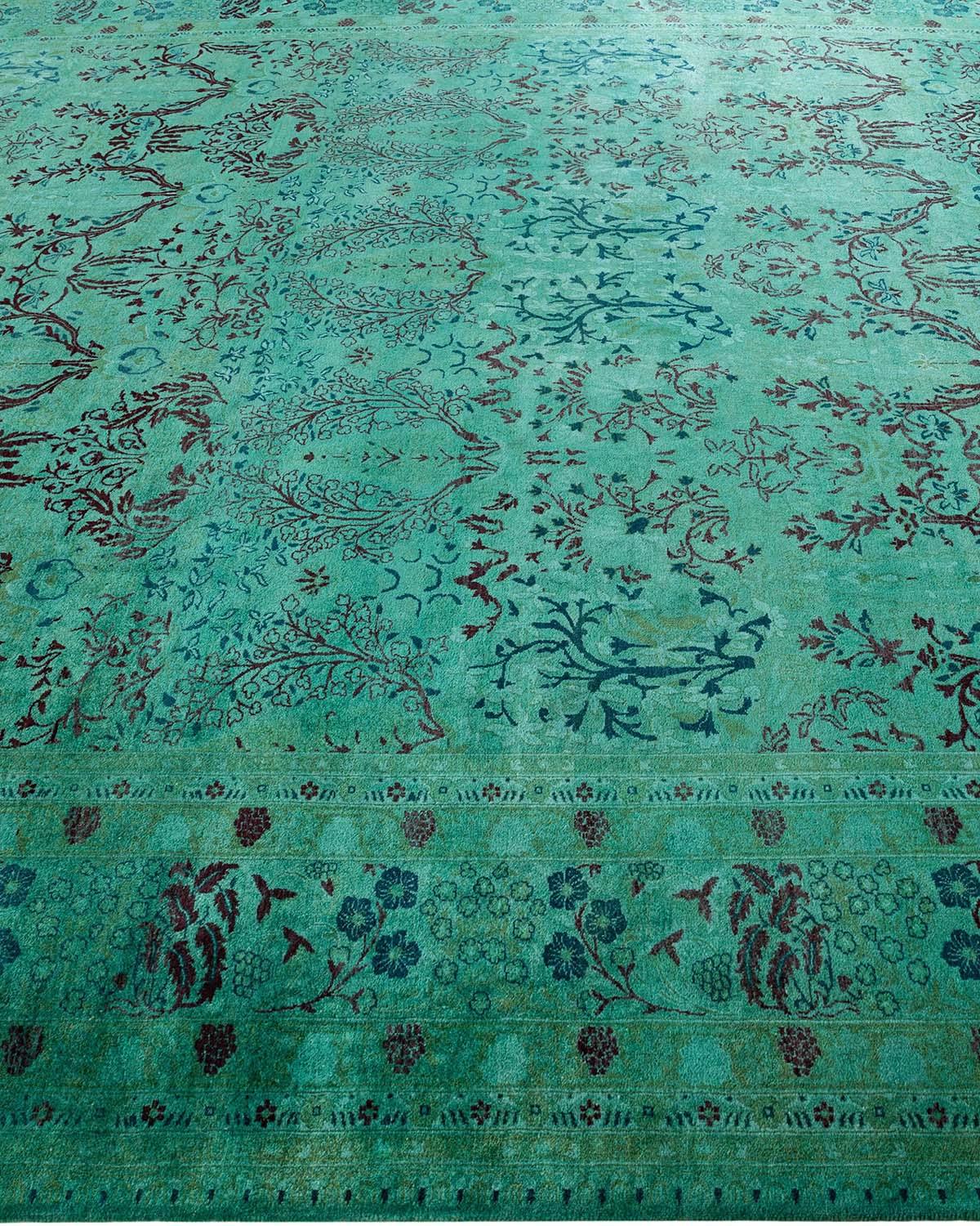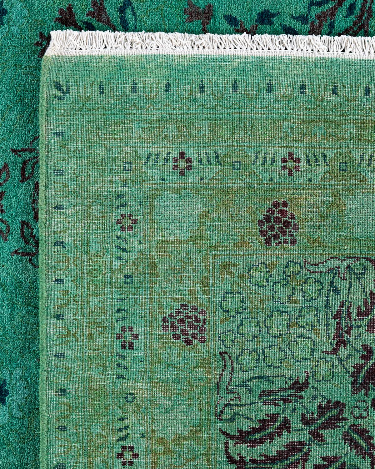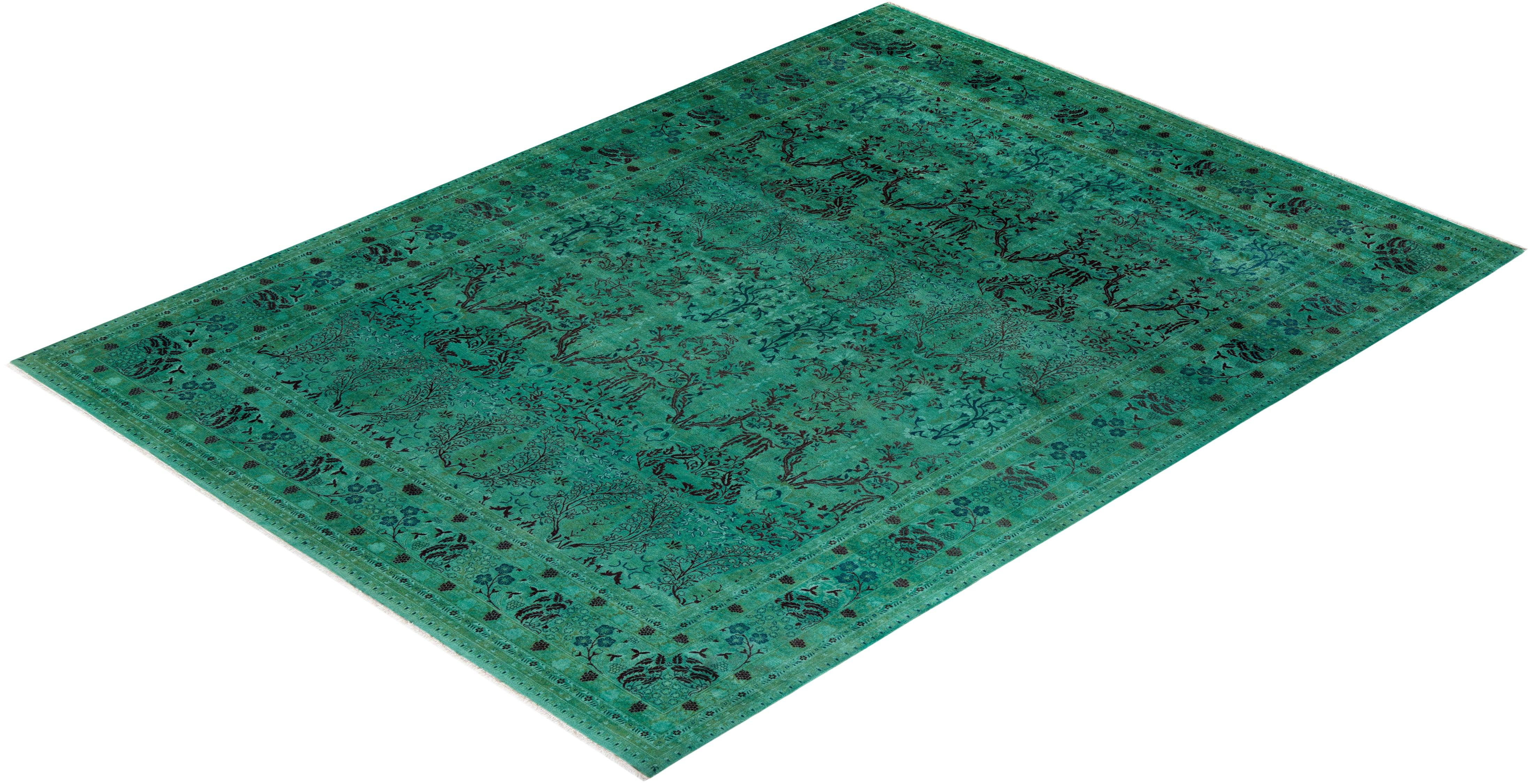 Contemporary Hand-Knotted Green Area Rug 9' 2" x 12' 1"