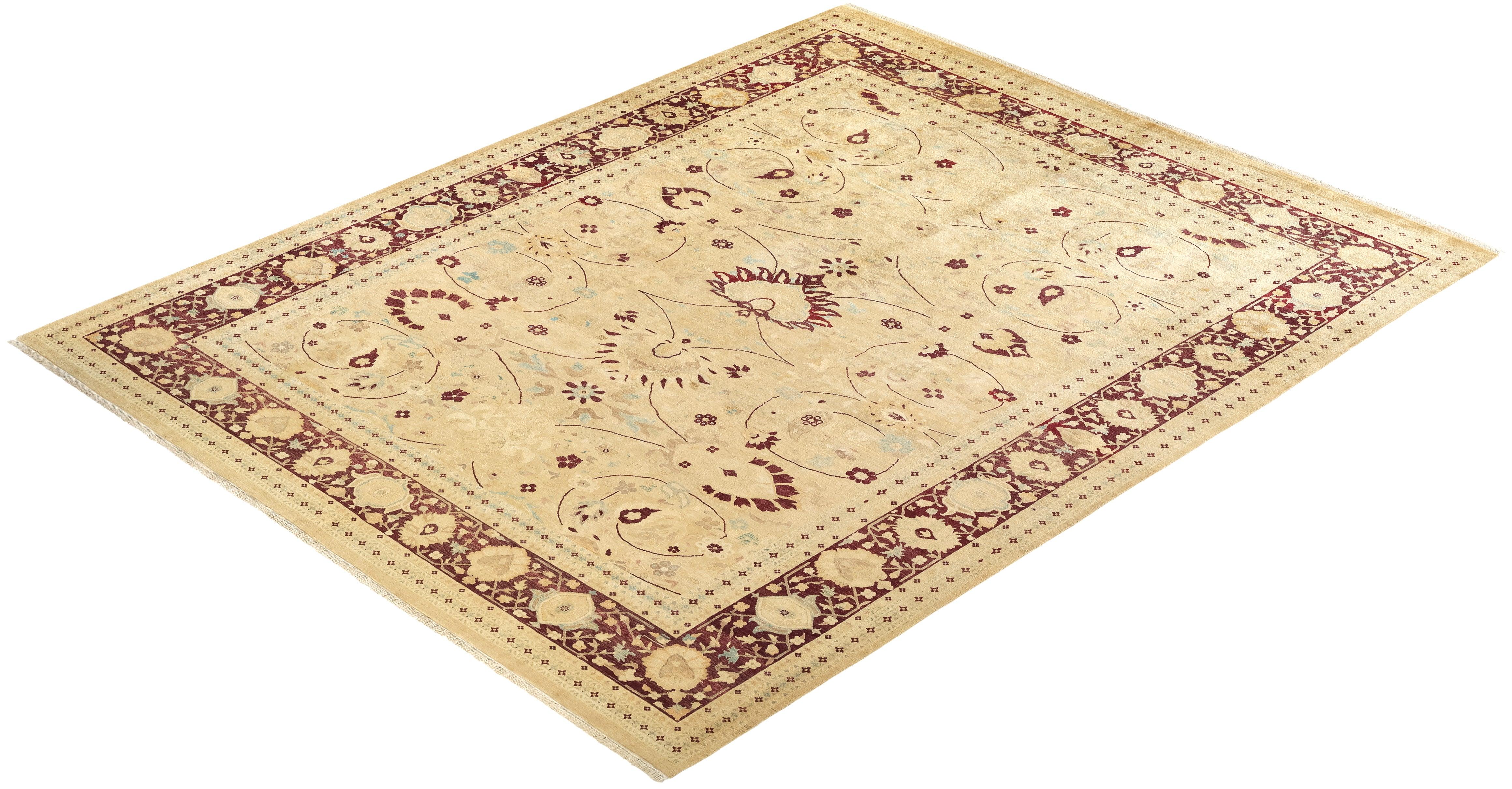Traditional Hand Knotted Mogul Floral Ivory Area Rug 9' 2" x 11' 10"
