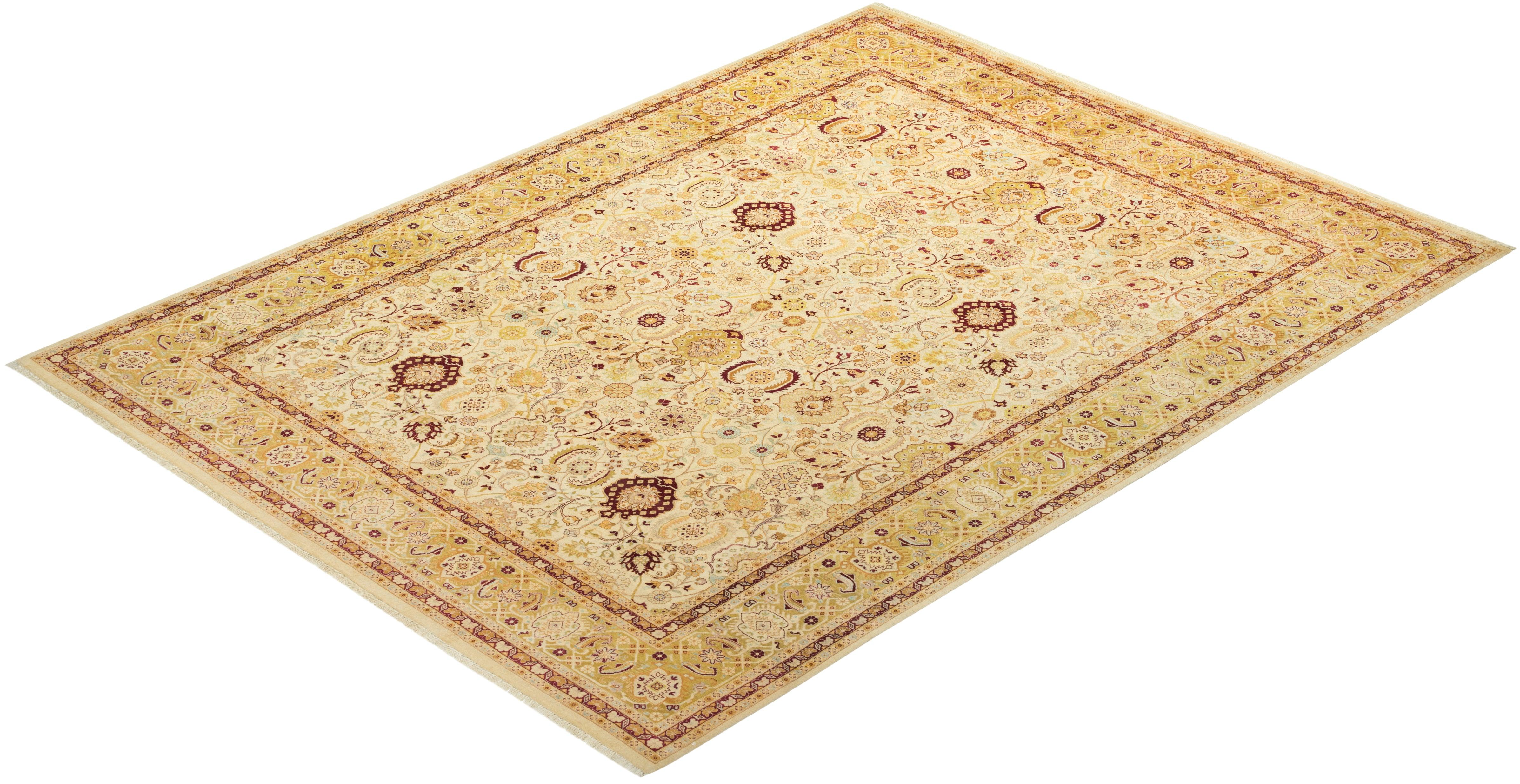 Traditional Hand Knotted Mogul Floral Ivory Area Rug 9' 3" x 12' 3"