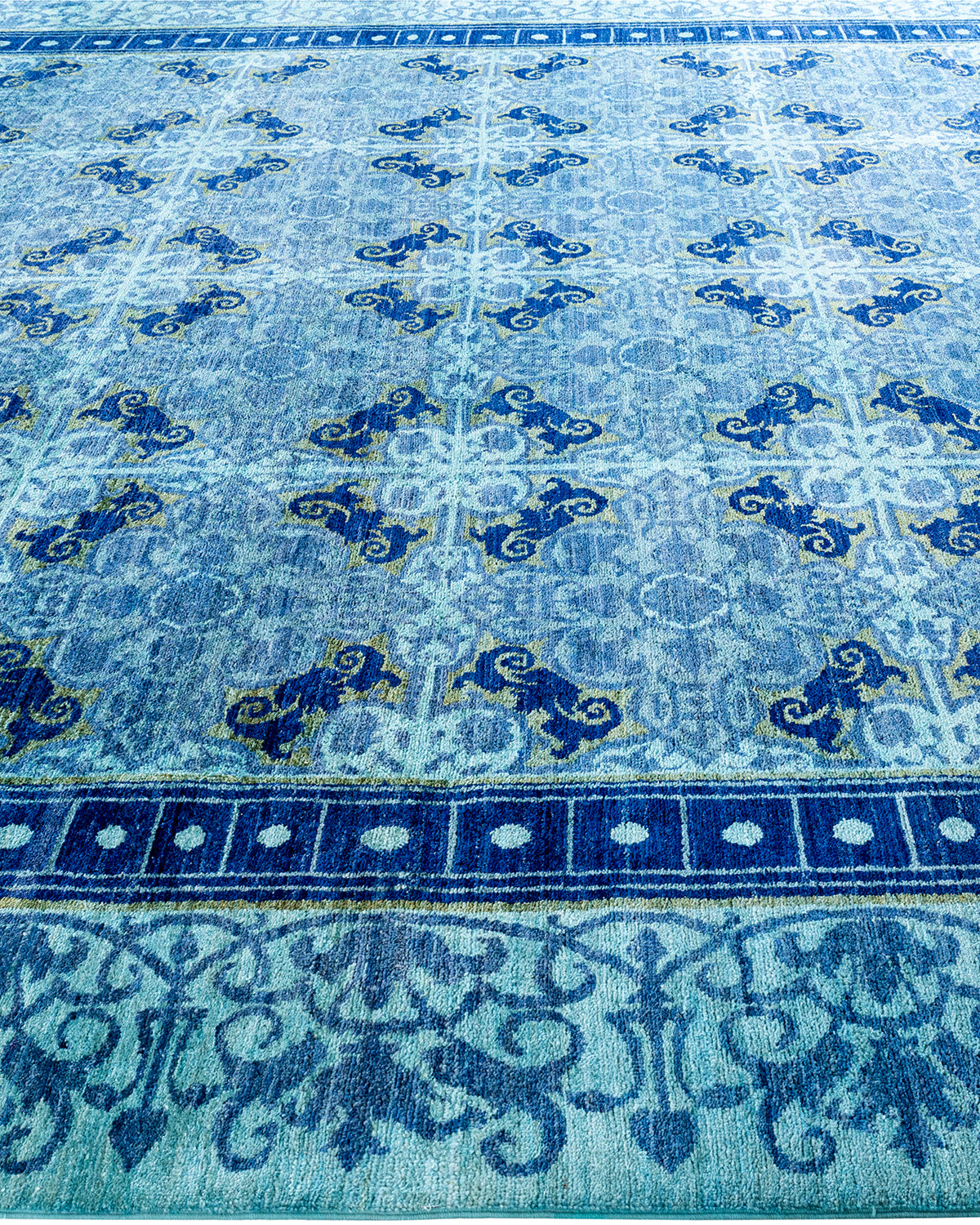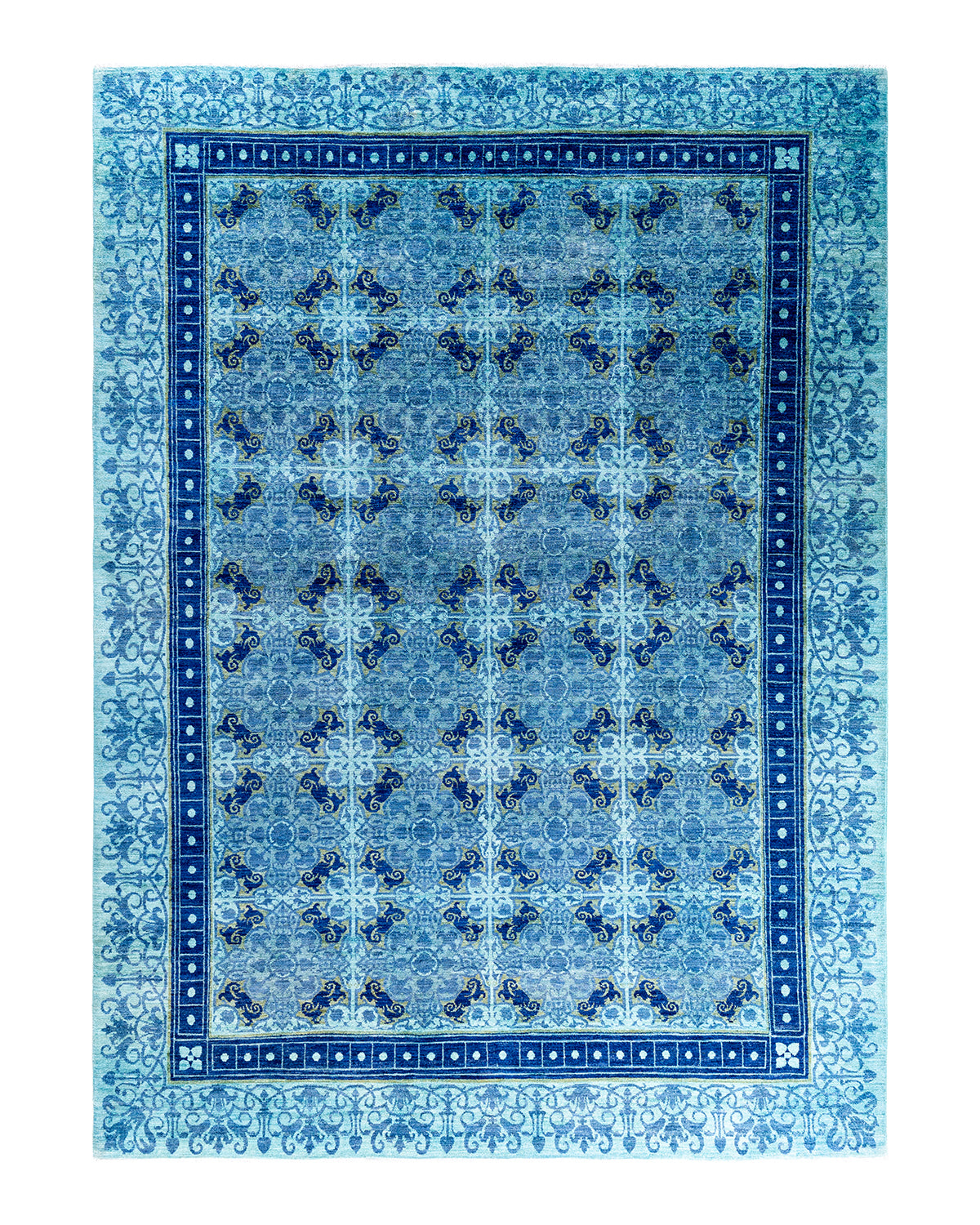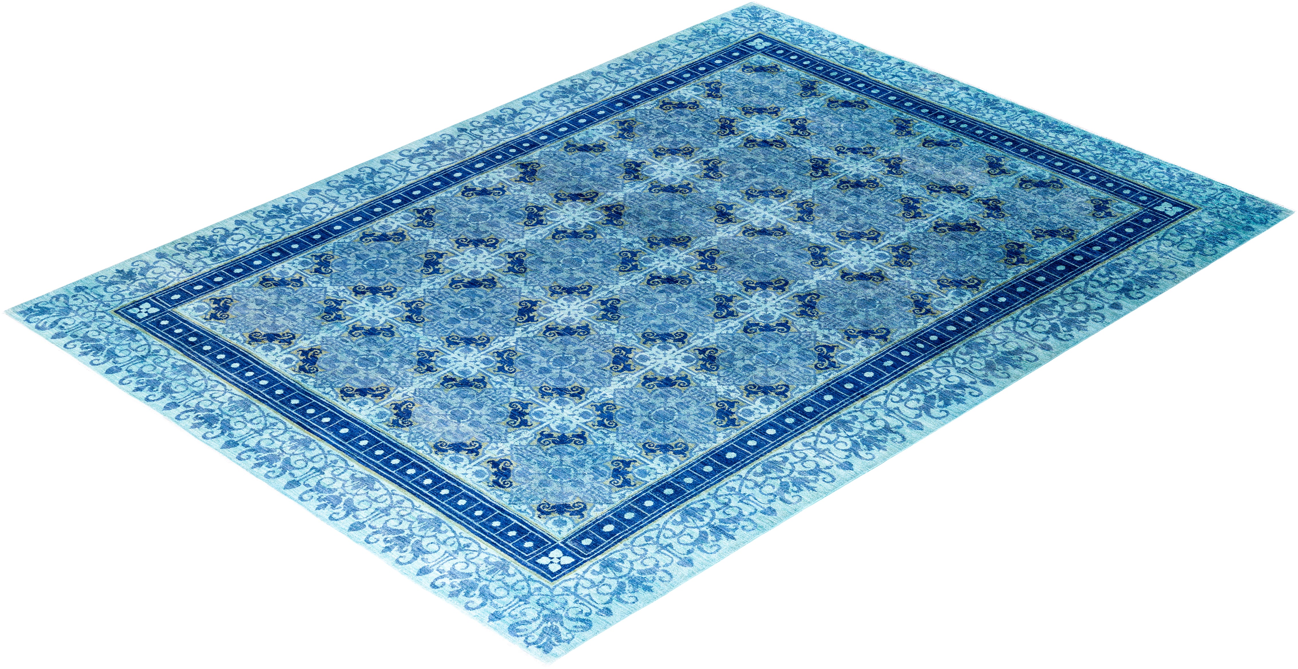 Contemporary Hand-Knotted Overdyed Blue Area Rug 9' 2" x 11' 5"