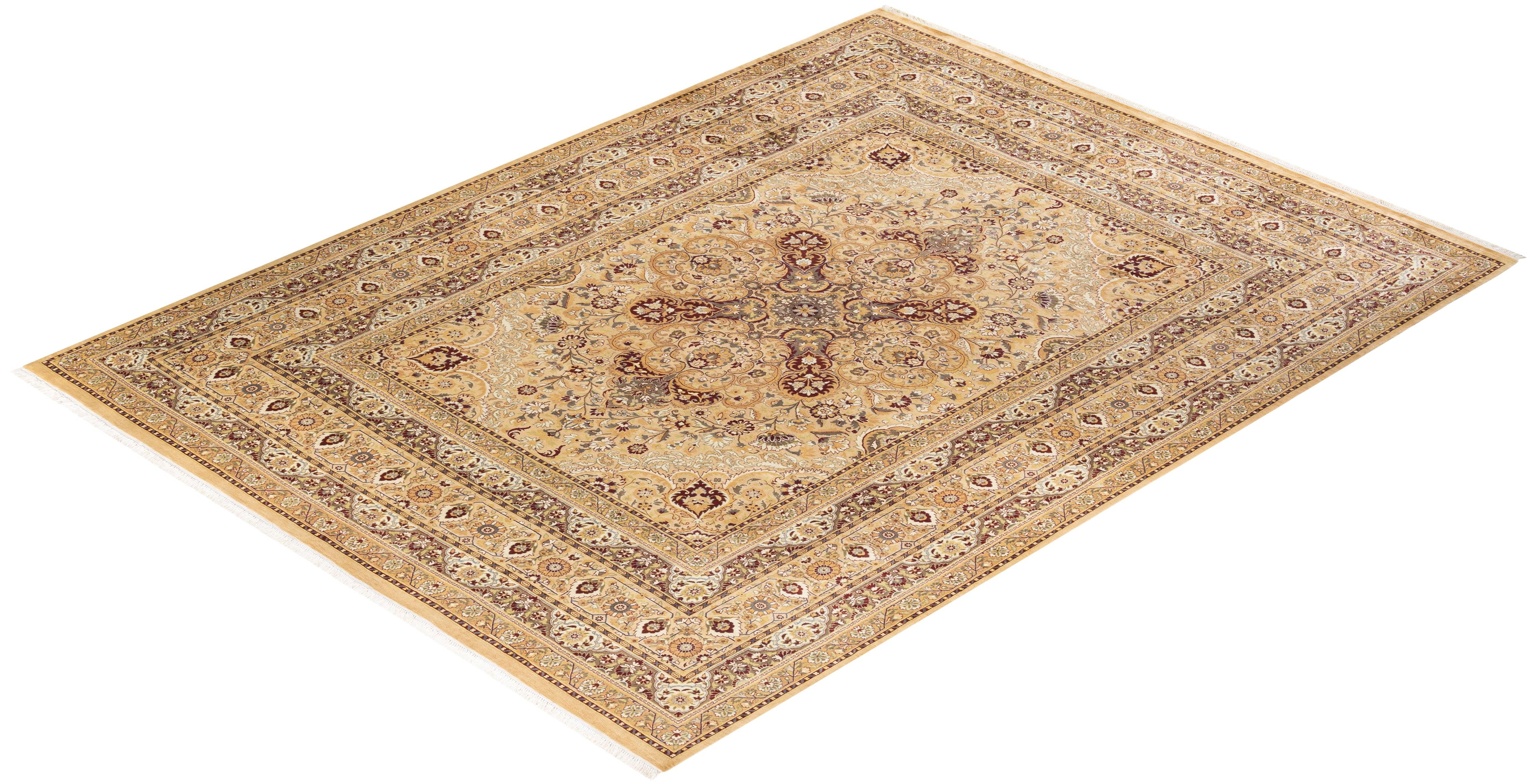 Traditional Hand Knotted Mogul Oriental Yellow Area Rug 9' 2" x 12' 3"