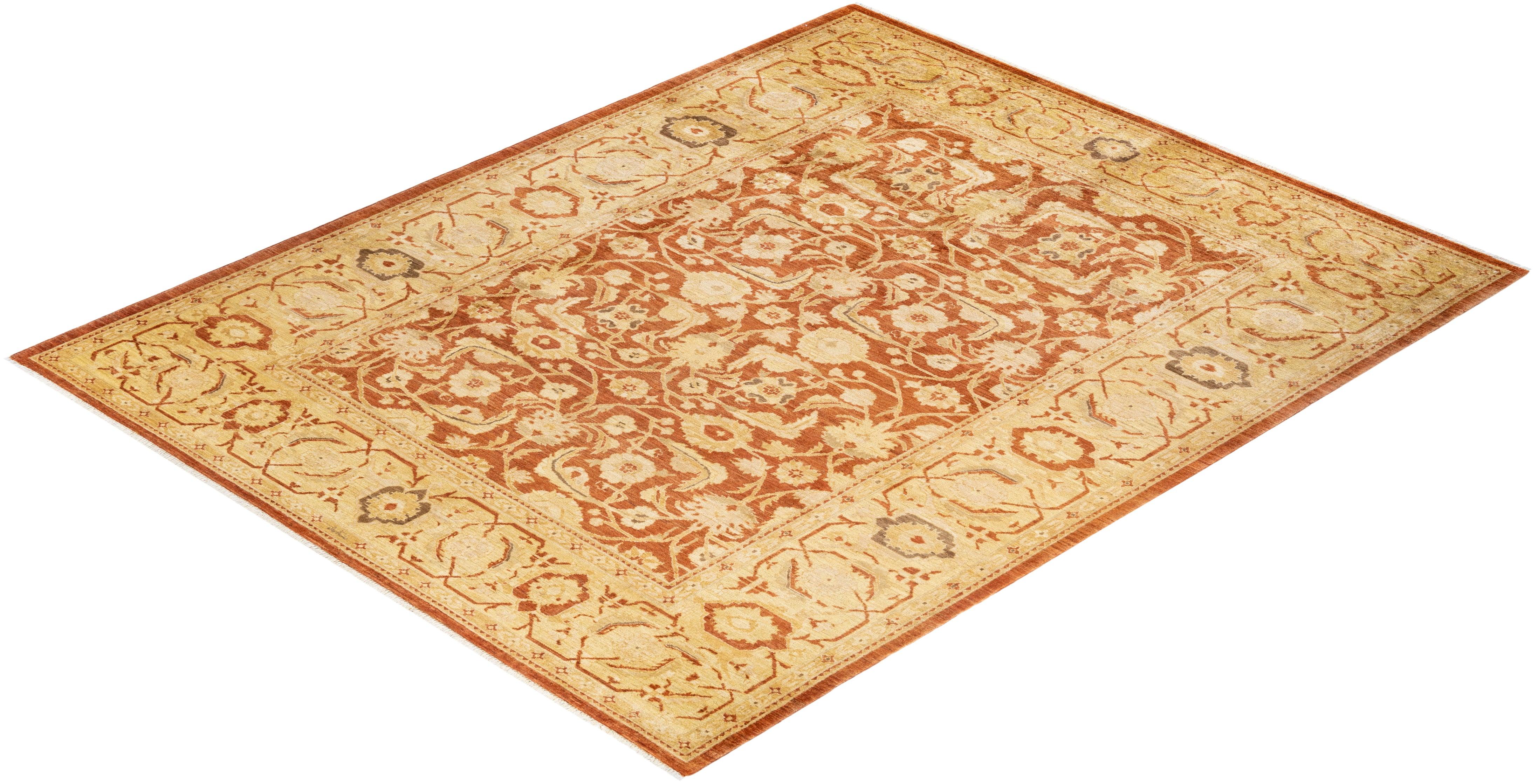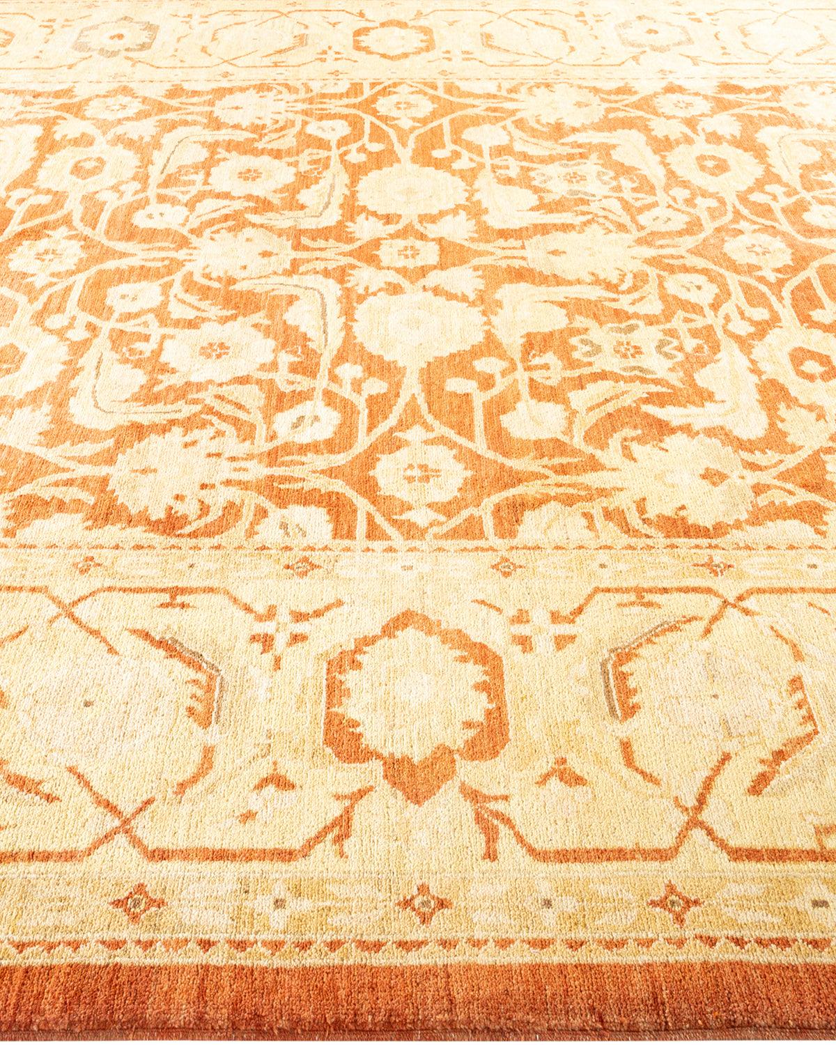 Contemporary Hand Knotted Eclectic Floral Brown Area Rug 9' 2" x 11' 3"