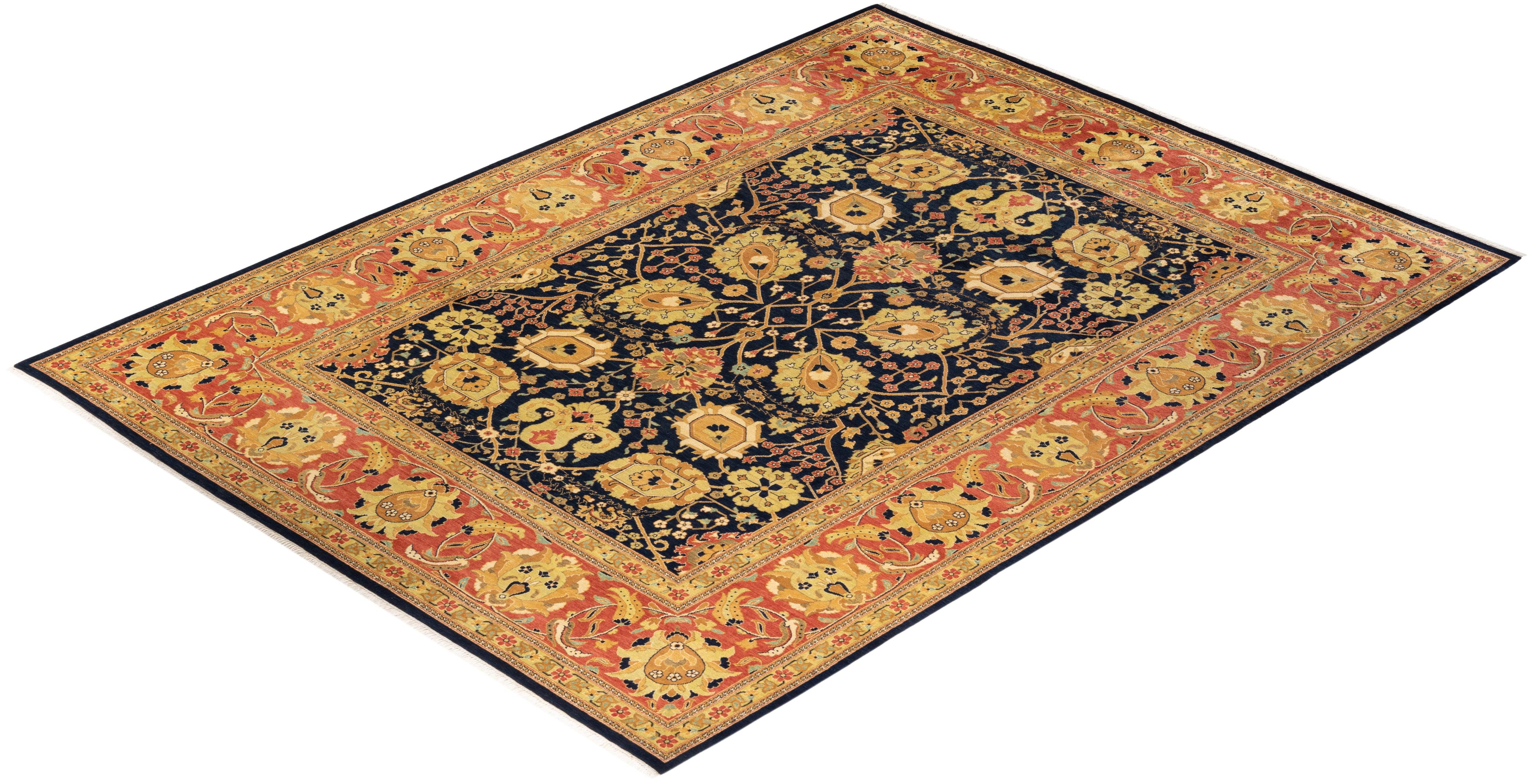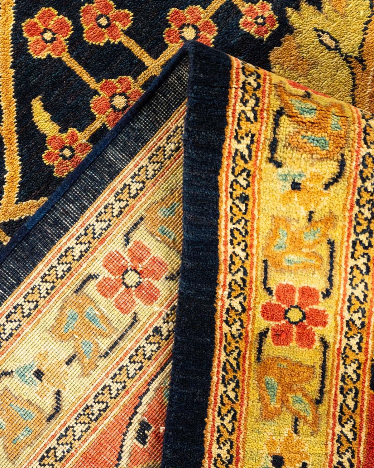 Contemporary Hand Knotted Eclectic Floral Blue Area Rug 9' 0" x 12' 0"