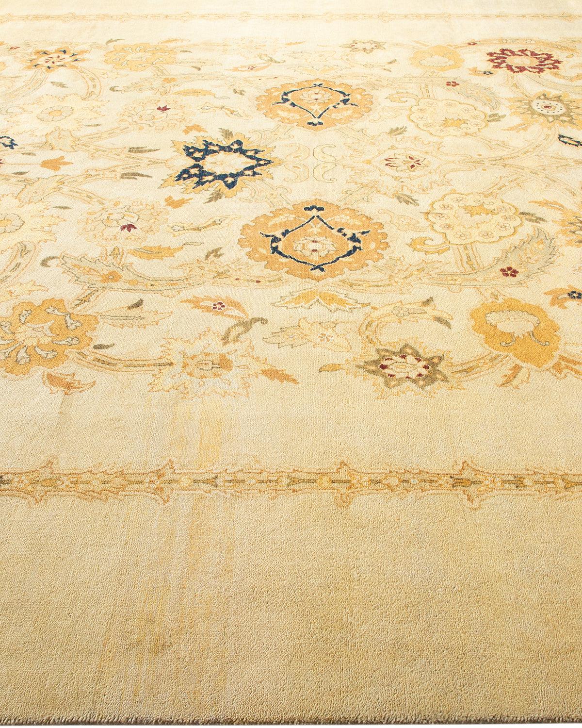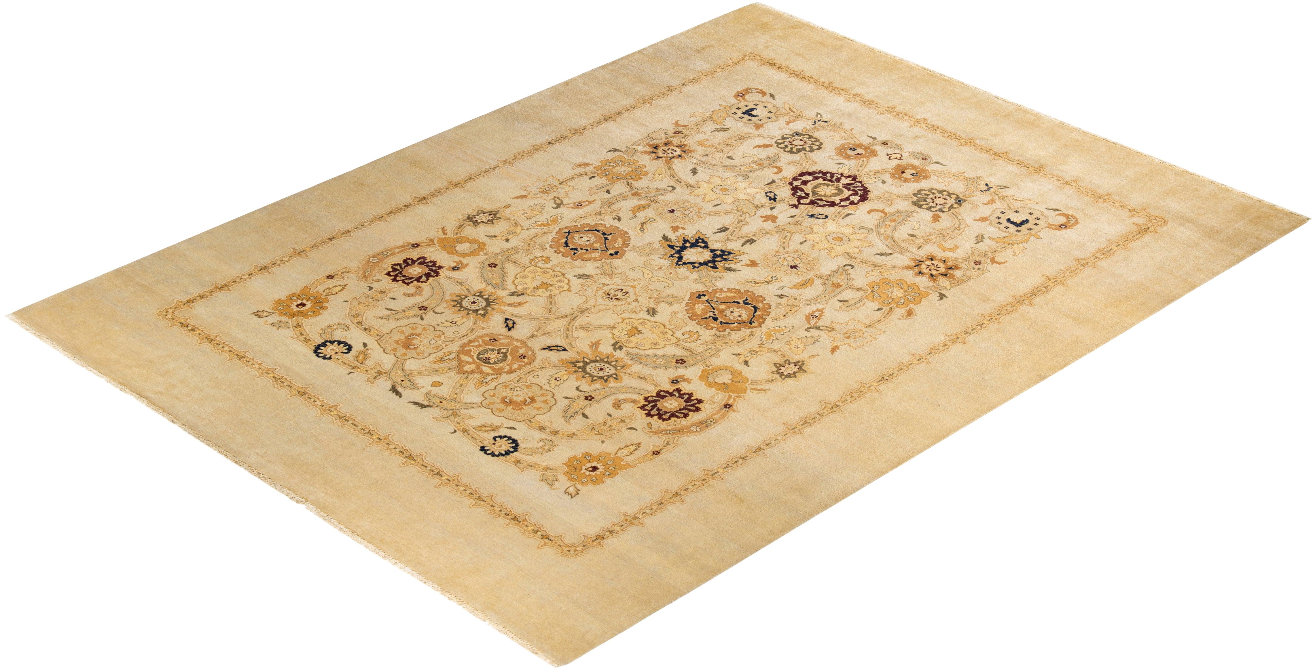 Contemporary Hand Knotted Eclectic Ivory Area Rug 9' 1" x 12' 0"