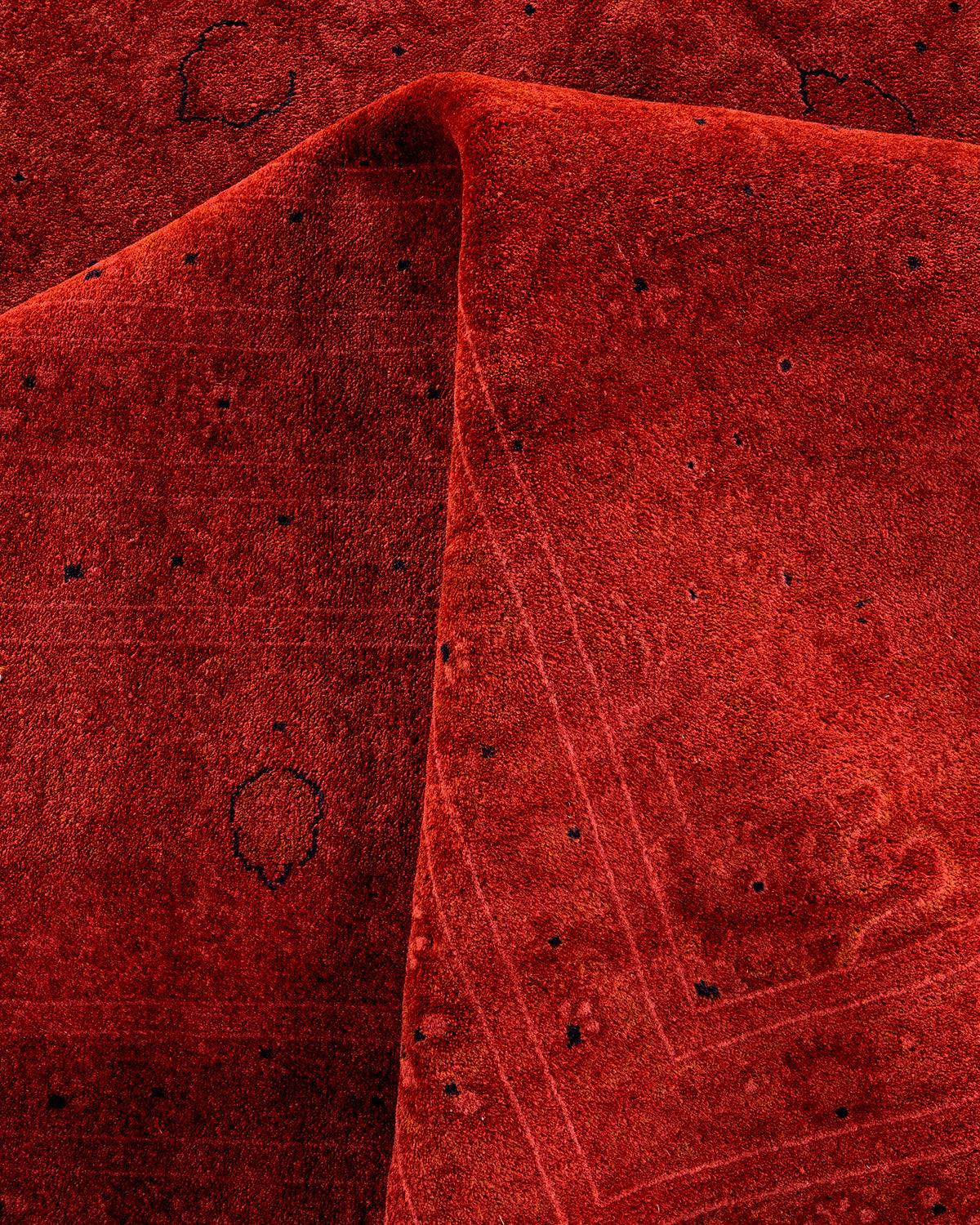 Contemporary Hand-Knotted Red Area Rug 9' 1" x 12' 8"