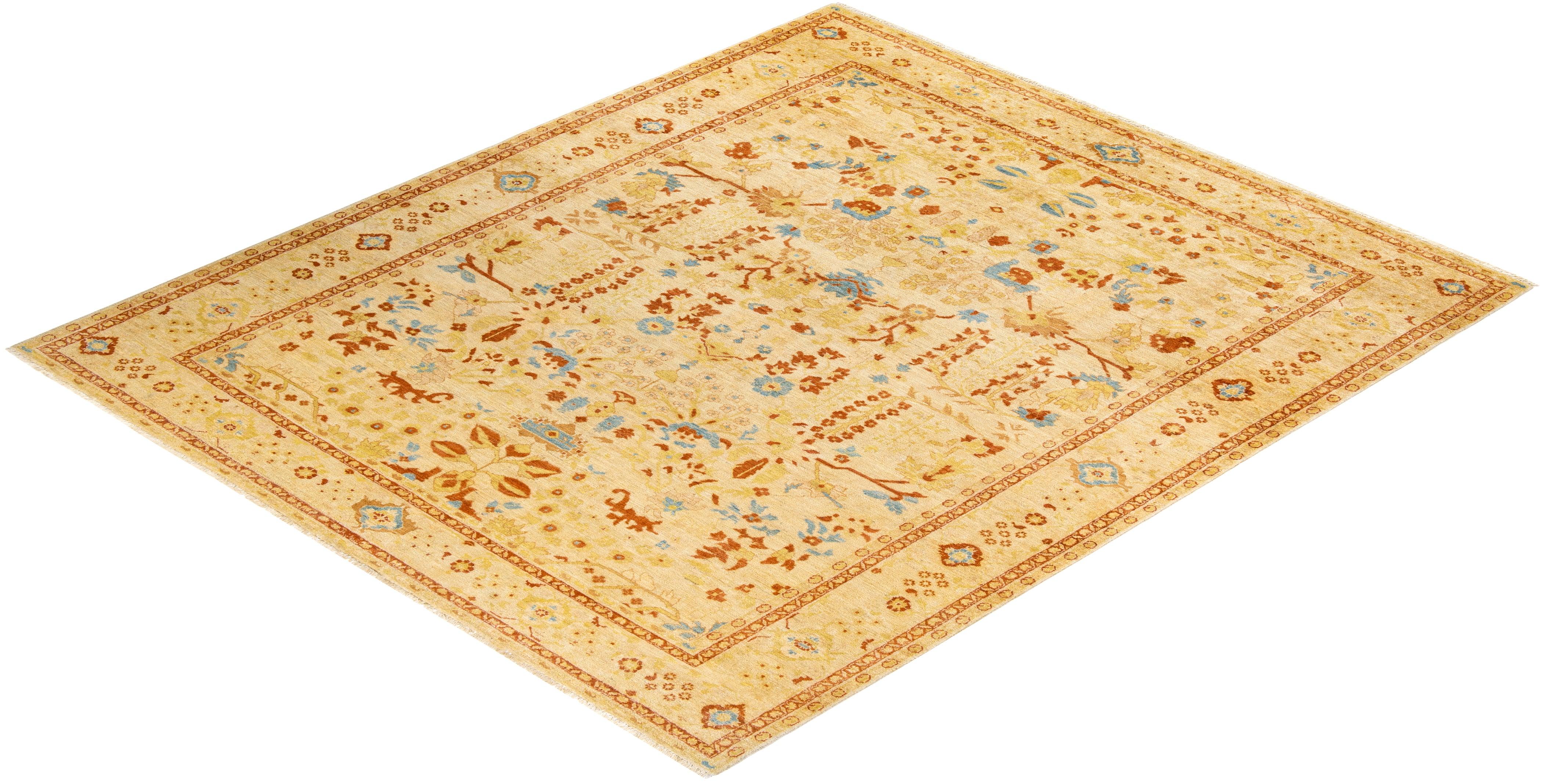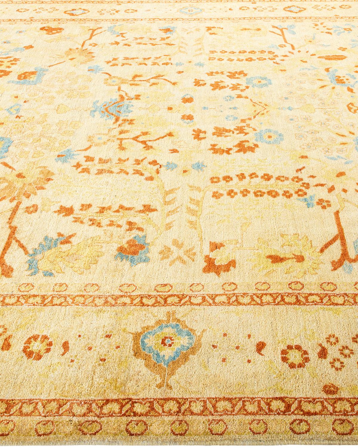 Contemporary Hand Knotted Eclectic Ivory Area Rug 8' 10" x 10' 10"
