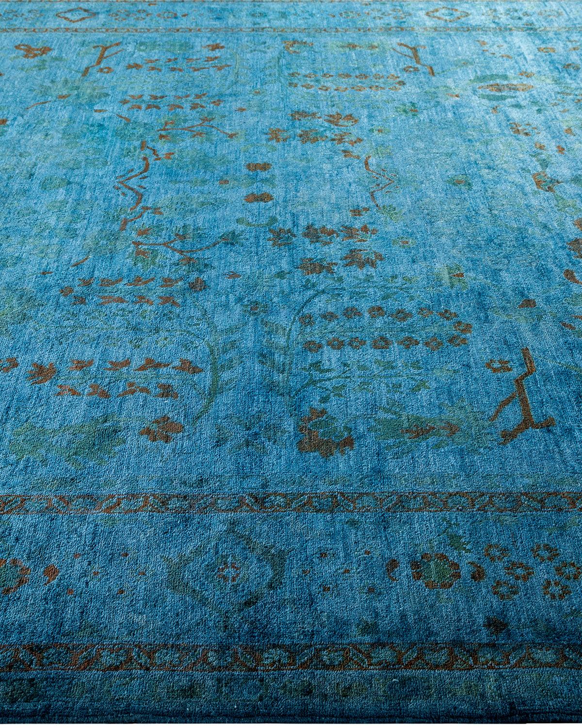 Contemporary Hand-Knotted Blue Area Rug 9' 1" x 11' 6"