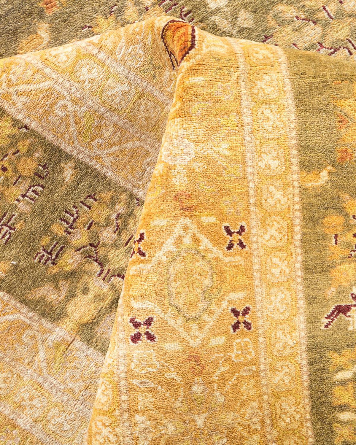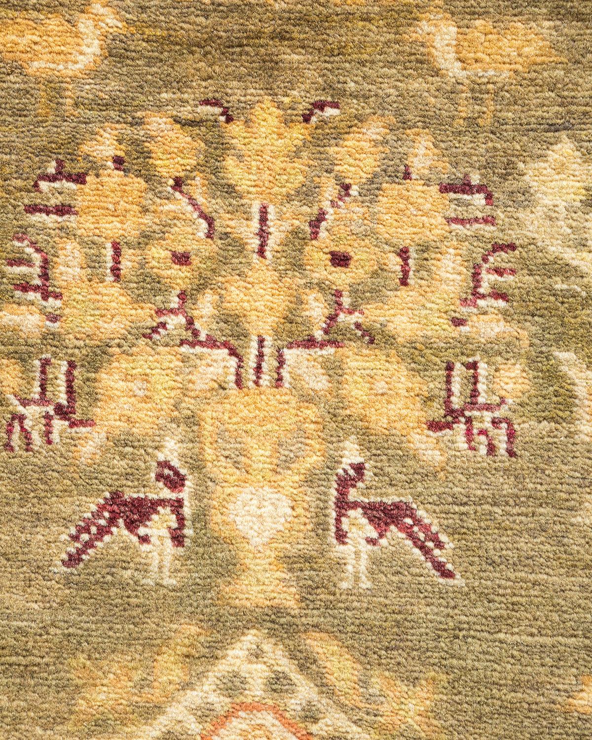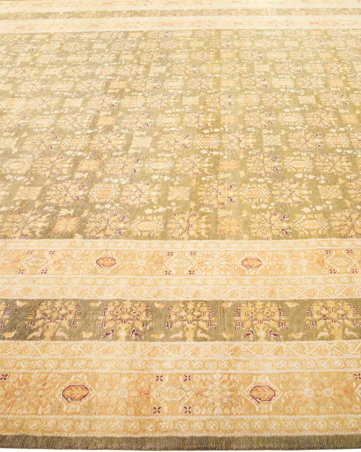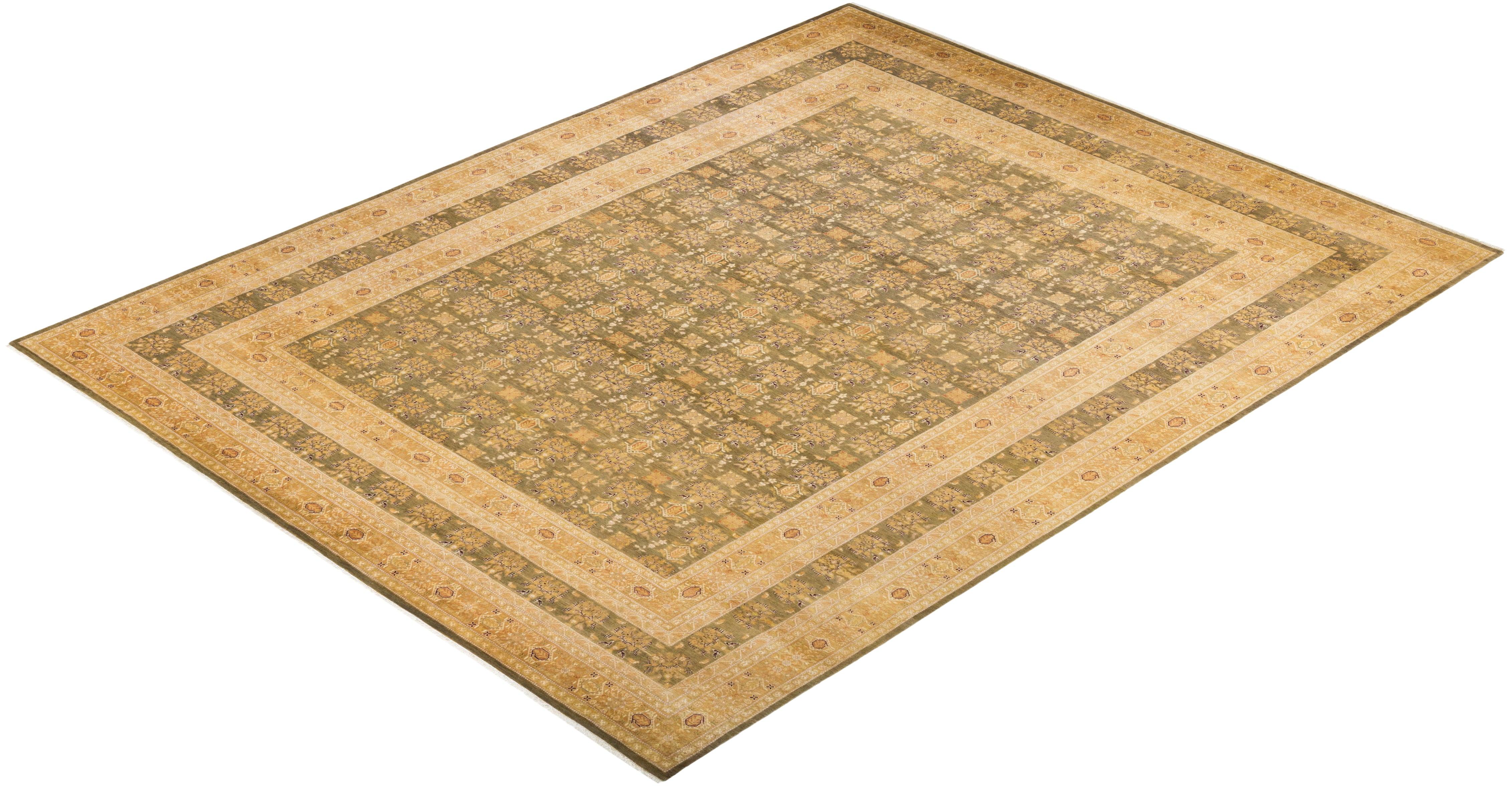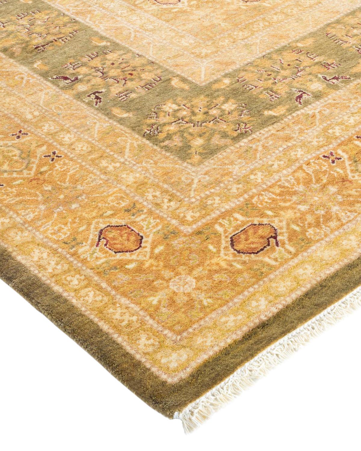 Traditional Hand Knotted Mogul Floral Green Area Rug 9' 4" x 12' 2"