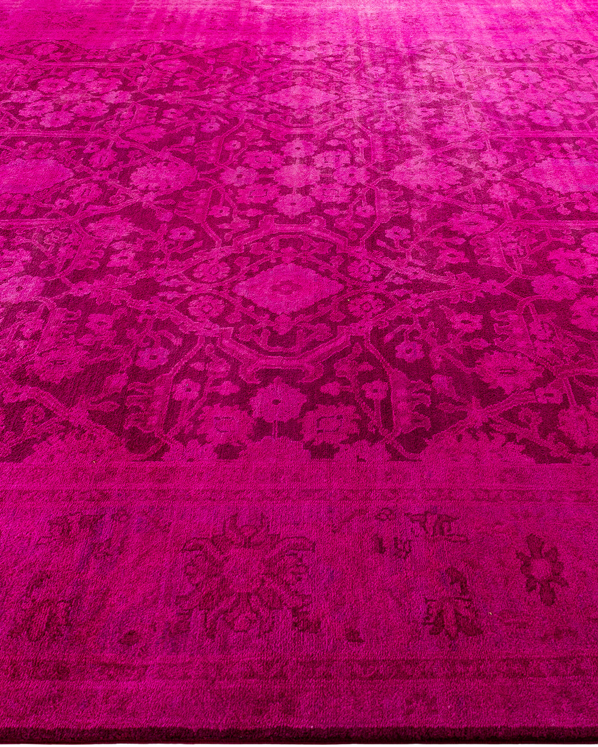 Contemporary Hand-Knotted Overdyed Pink Area Rug 9' 1" x 11' 5"