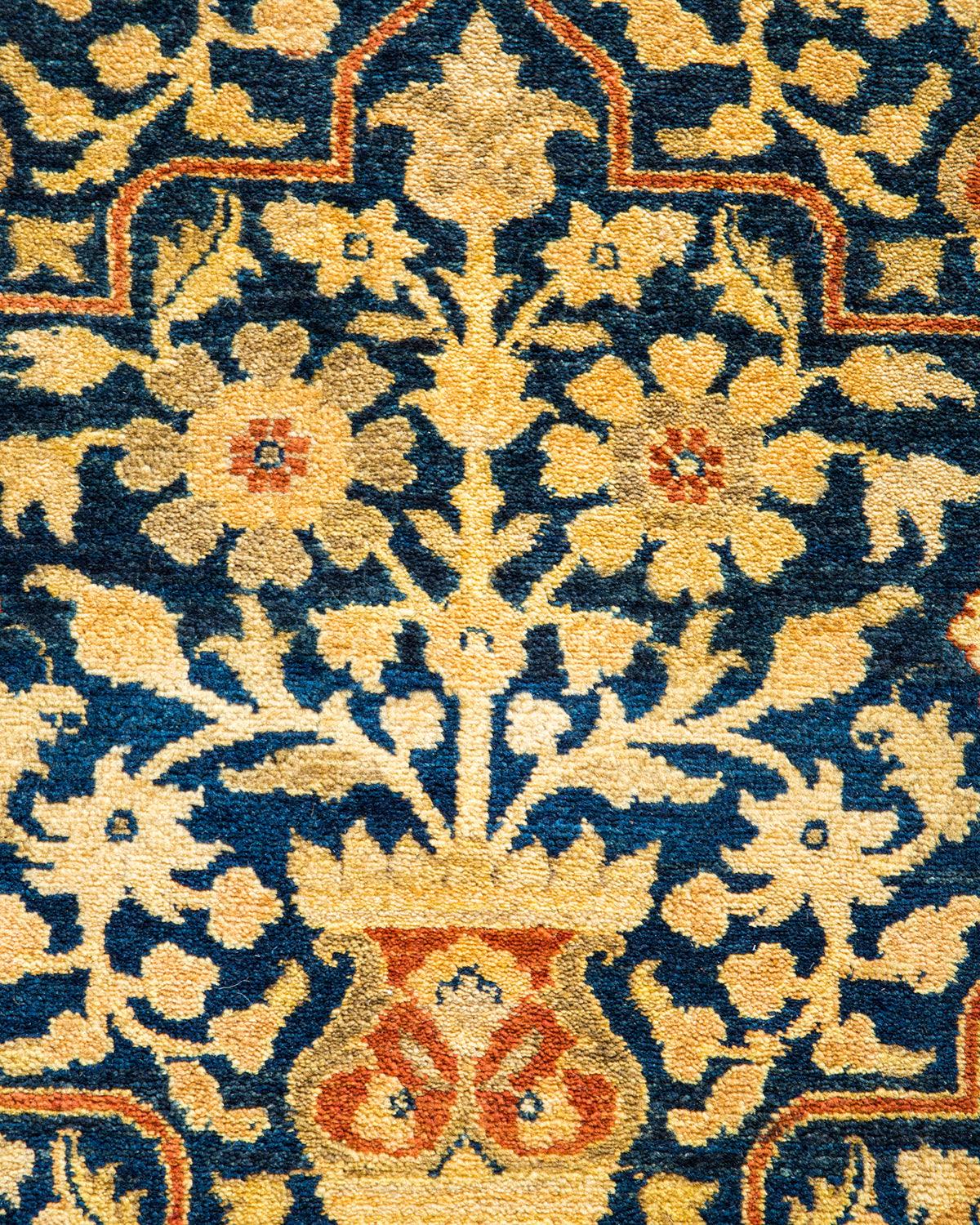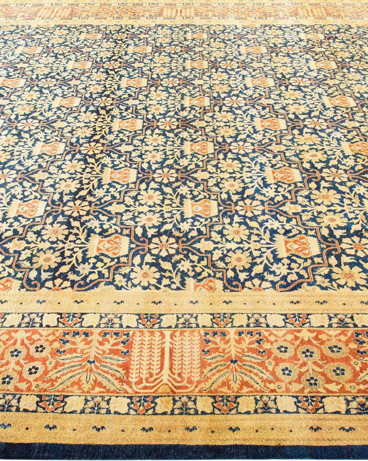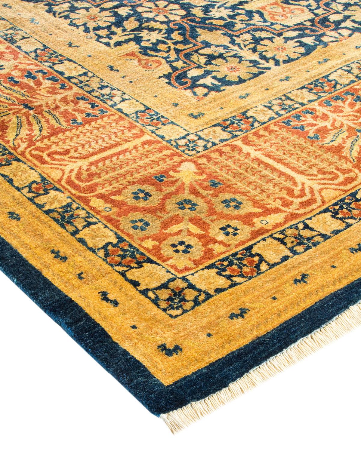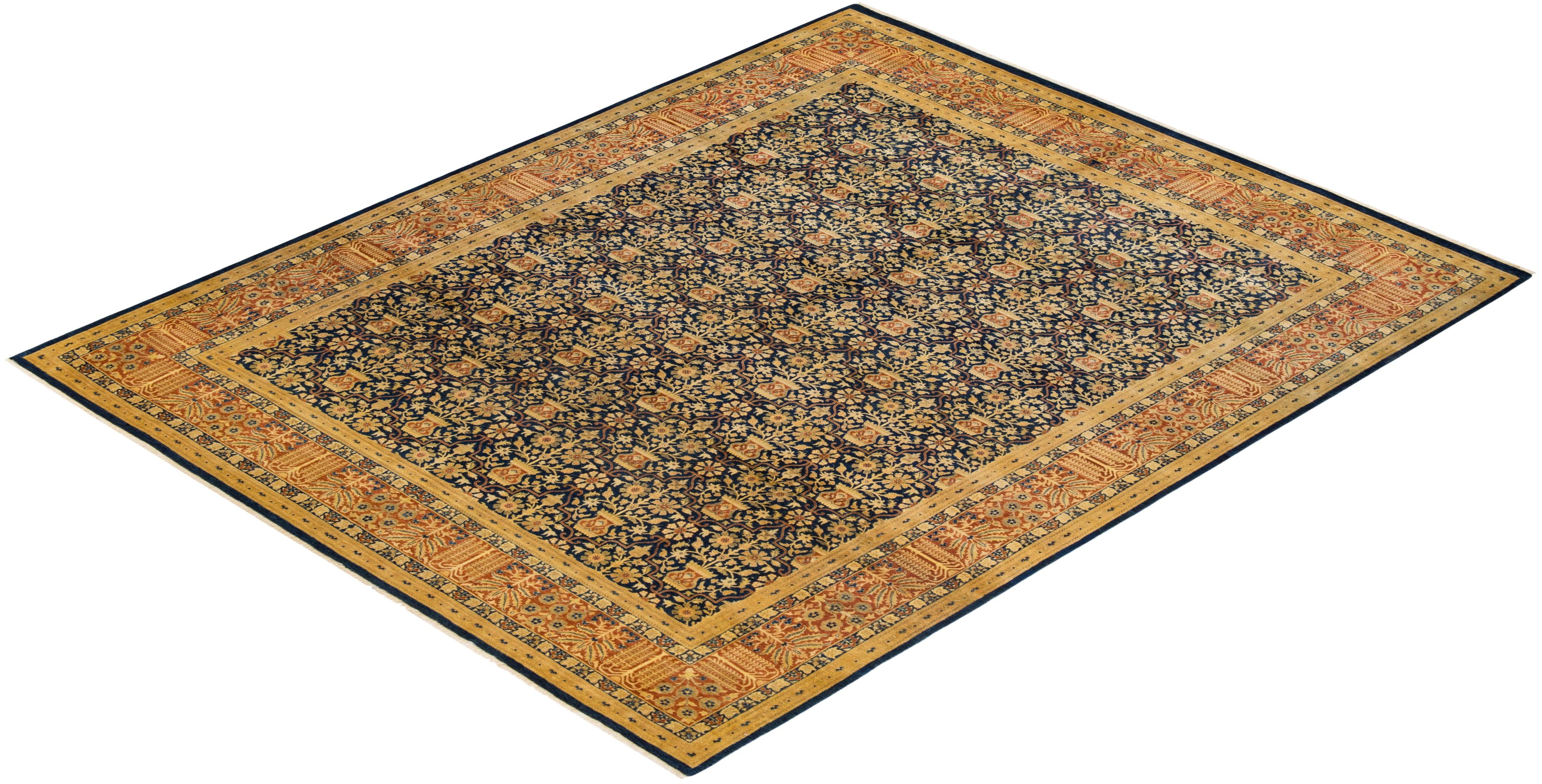 Traditional Hand Knotted Mogul Floral Blue Area Rug 9' 3" x 11' 5"