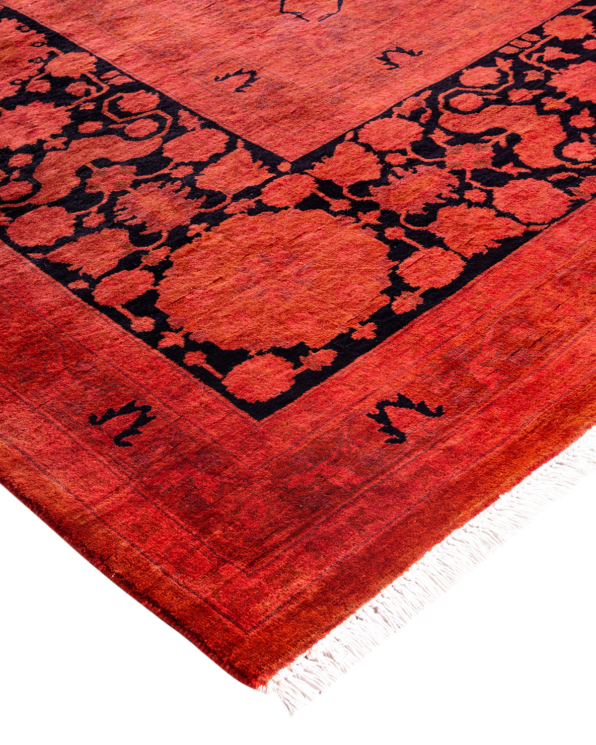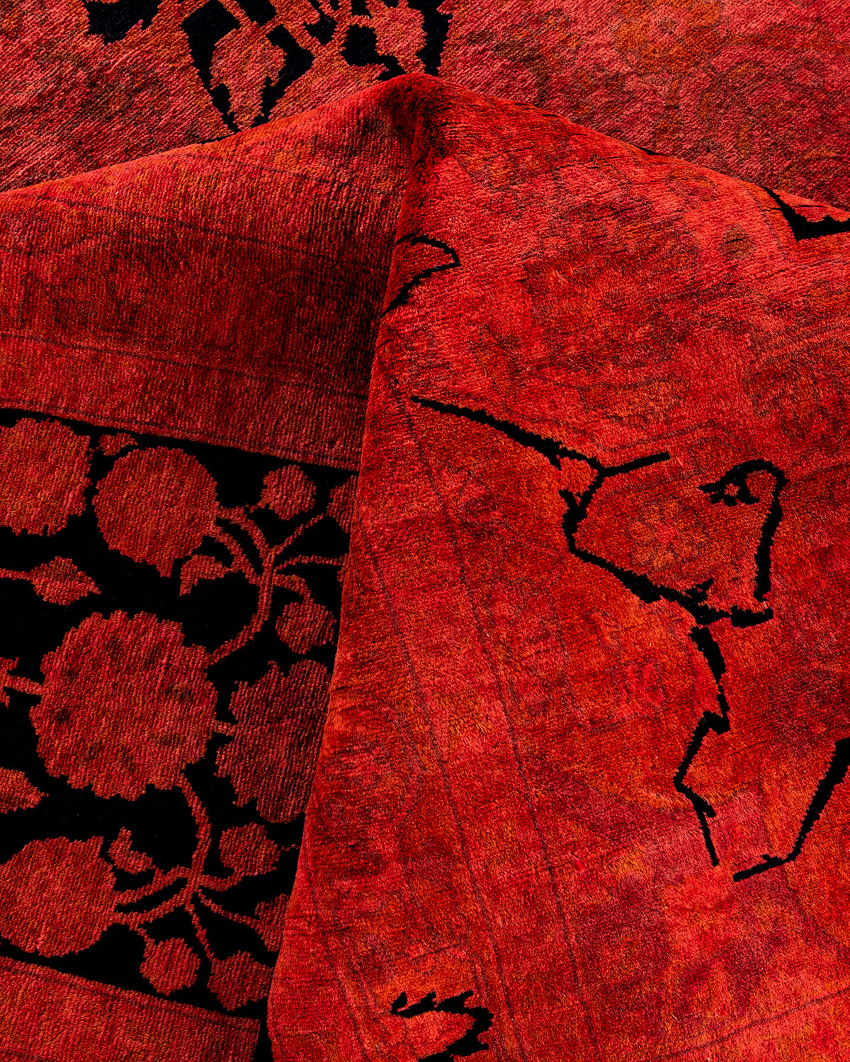 Contemporary Hand-Knotted Overdyed Orange Area Rug 9' 3" x 12' 3"