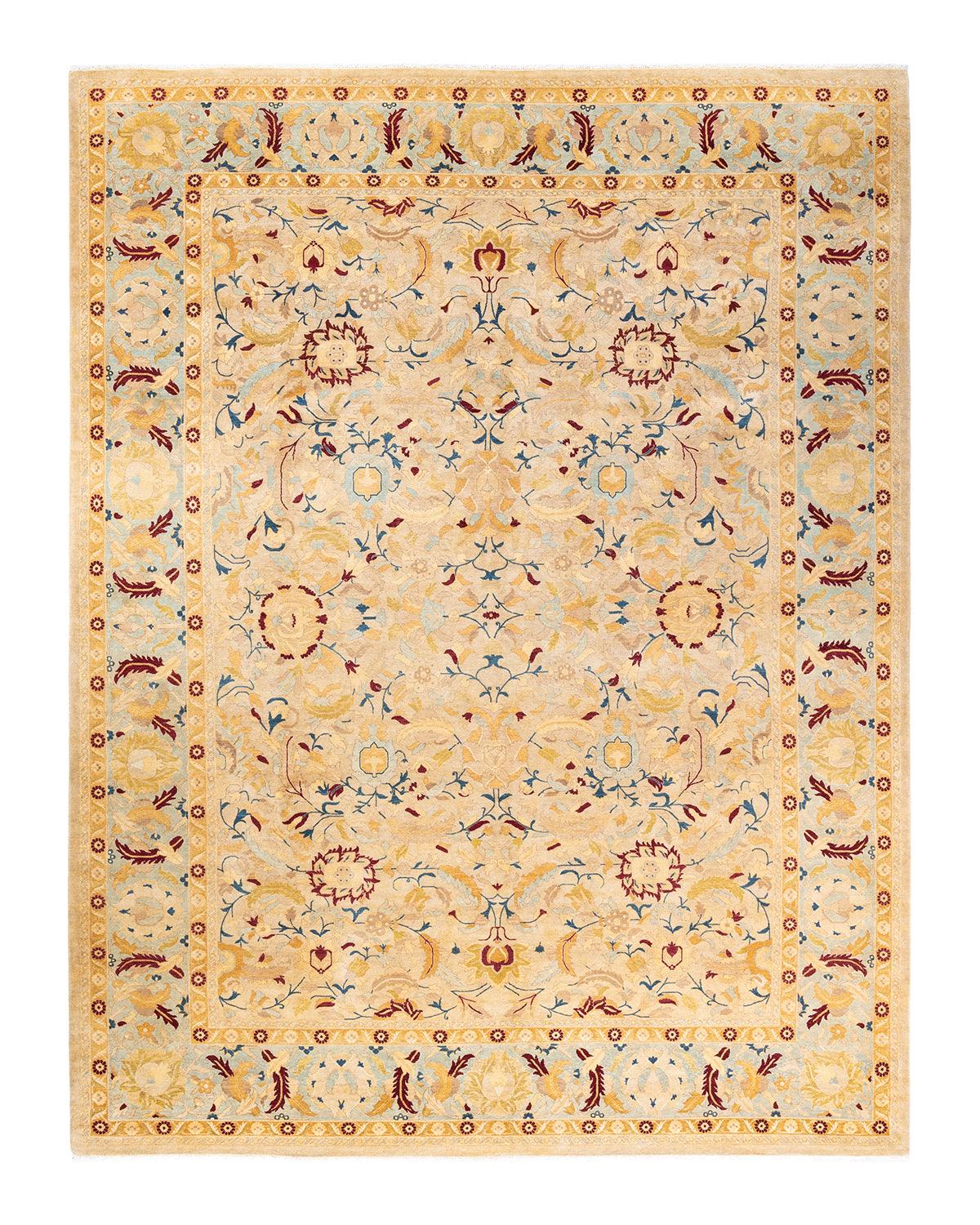 Traditional Hand Knotted Mogul Floral Ivory Area Rug 9' 1" x 12' 1"