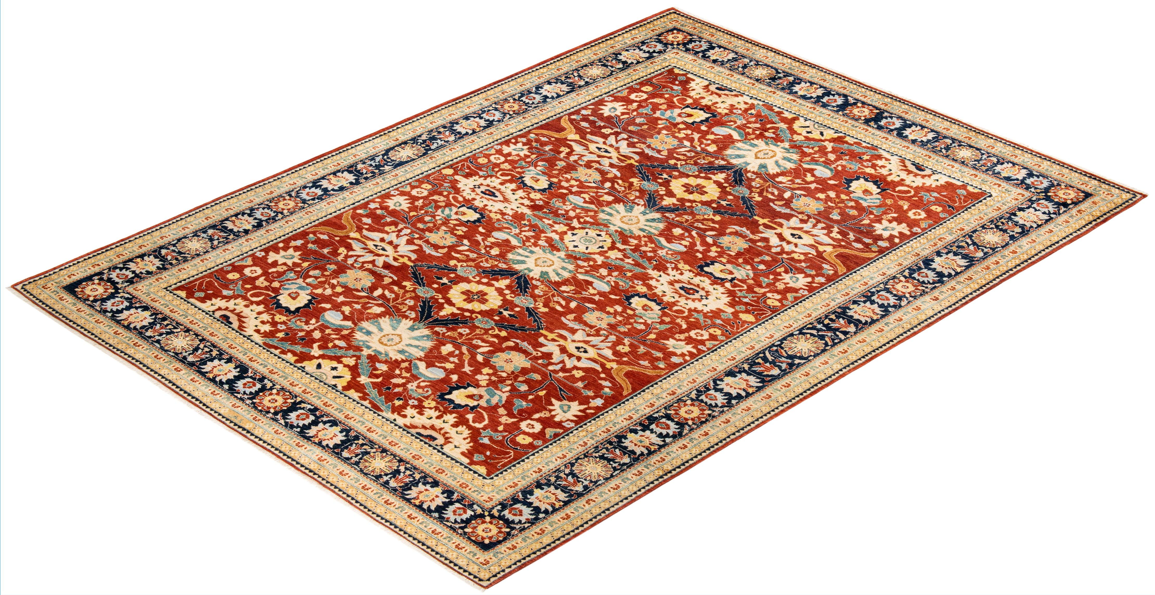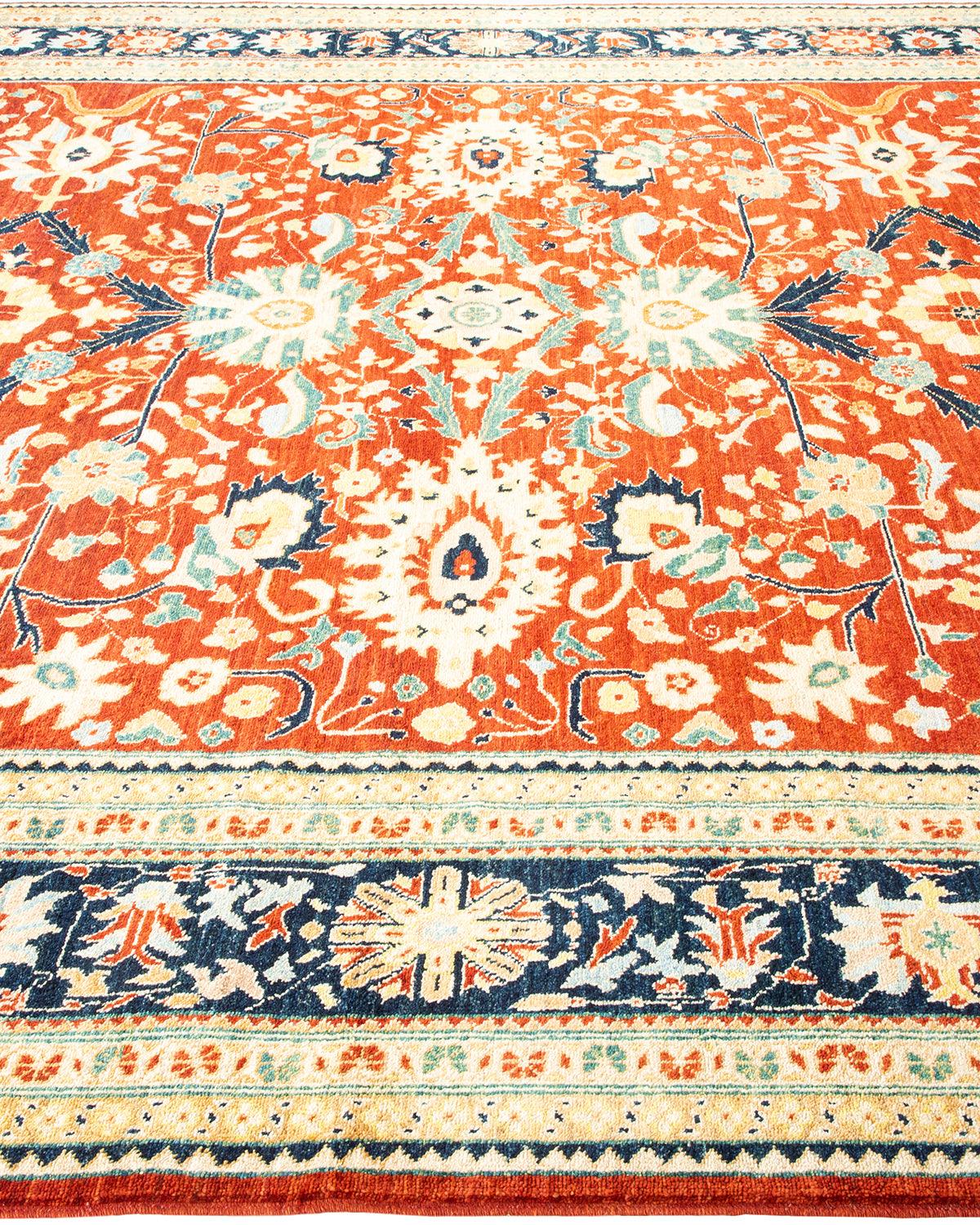 Contemporary Hand Knotted Eclectic Orange Area Rug 8' 10" x 12' 5"