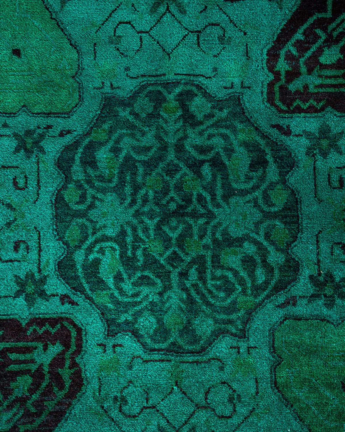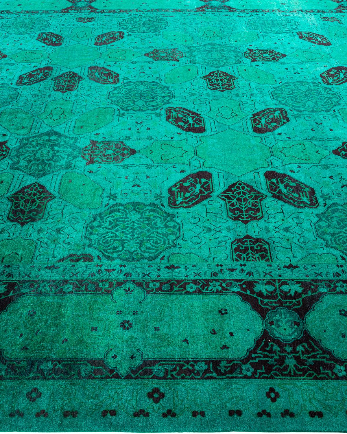 Contemporary Hand Knotted Overdyed Green Area Rug 9' 1" x 11' 10"