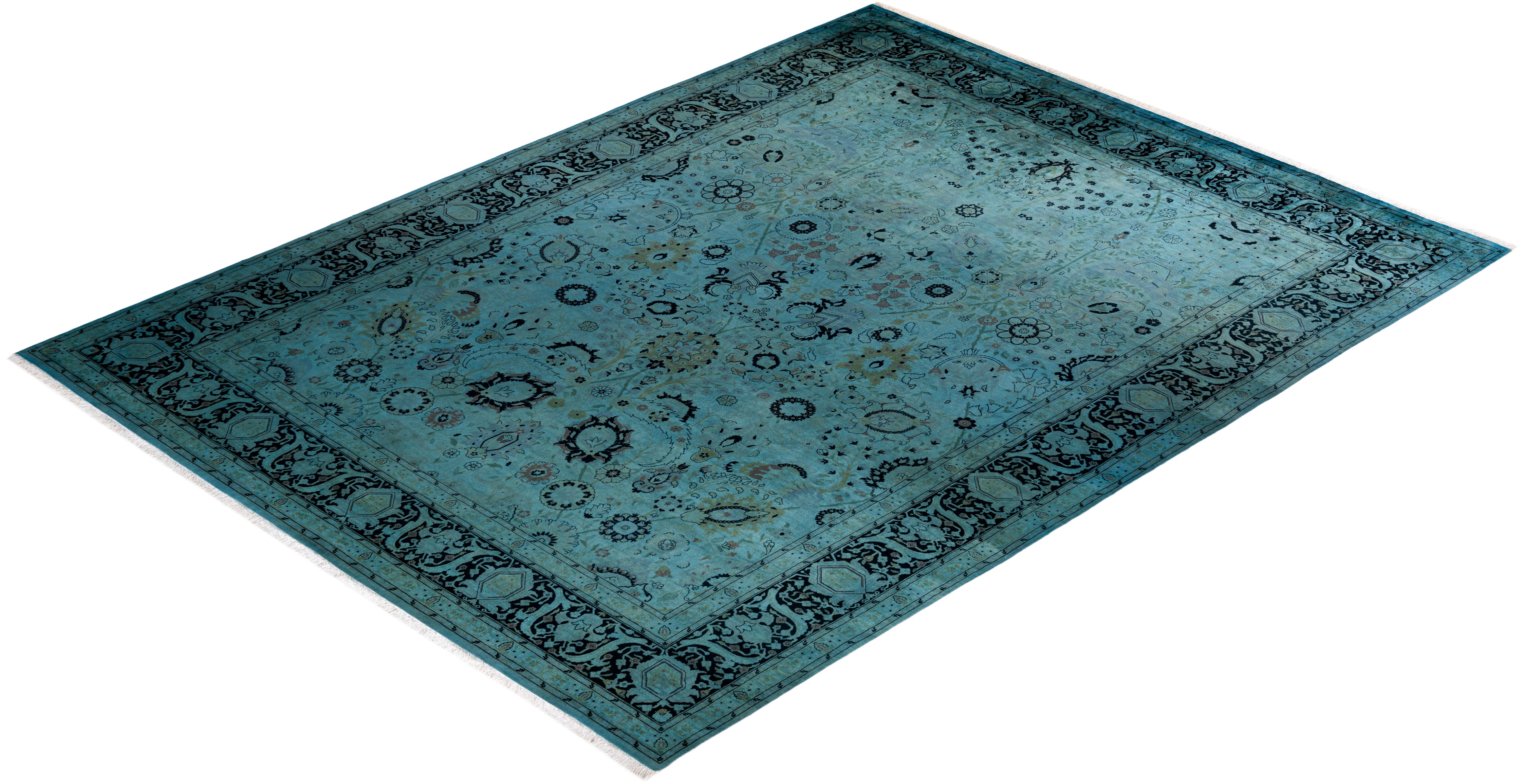 Contemporary Hand Knotted Overdyed Blue Area Rug 9' 0" x 12' 0"
