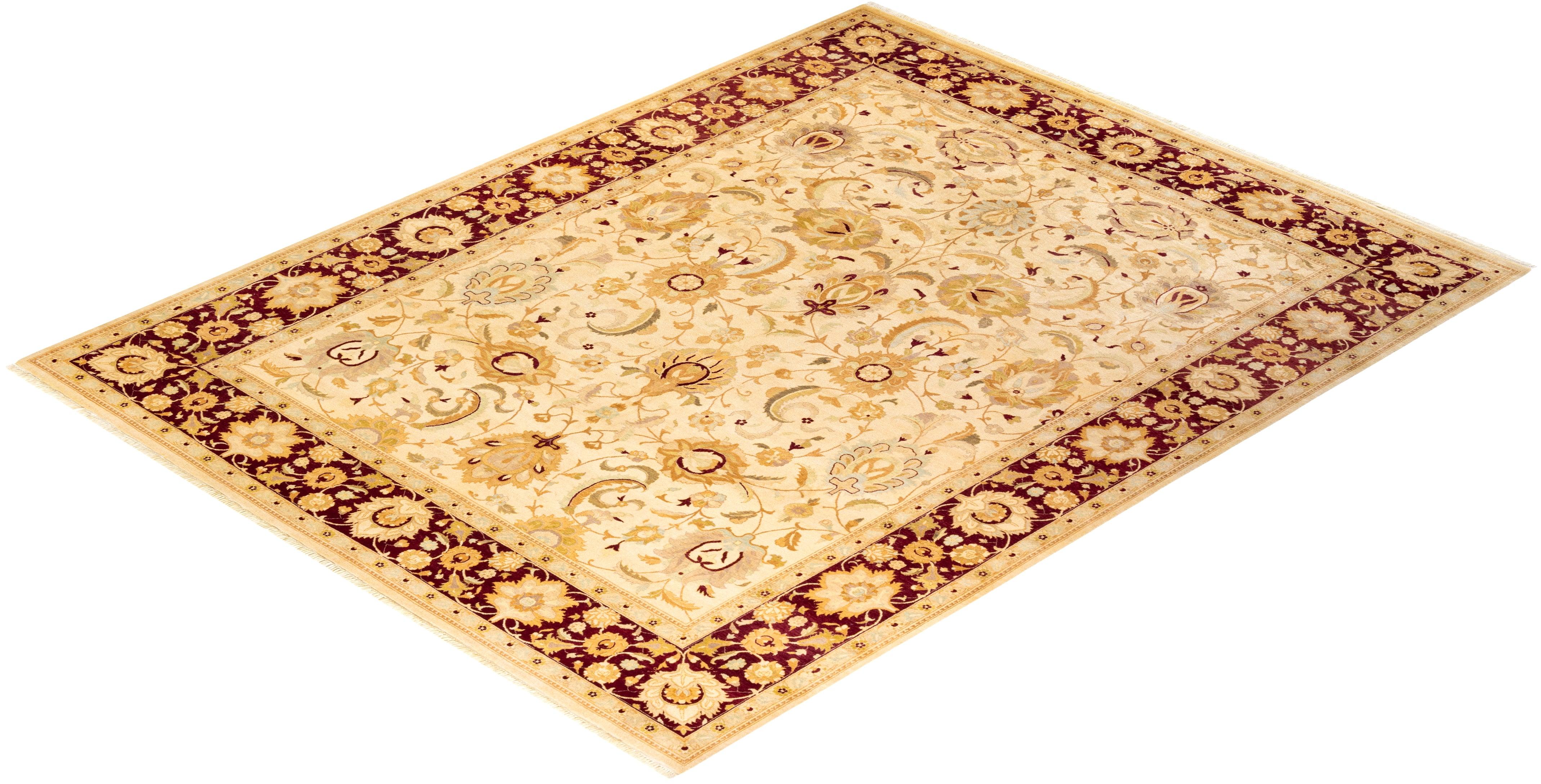 Traditional Hand Knotted Mogul Floral Ivory Area Rug 9' 1" x 11' 8"