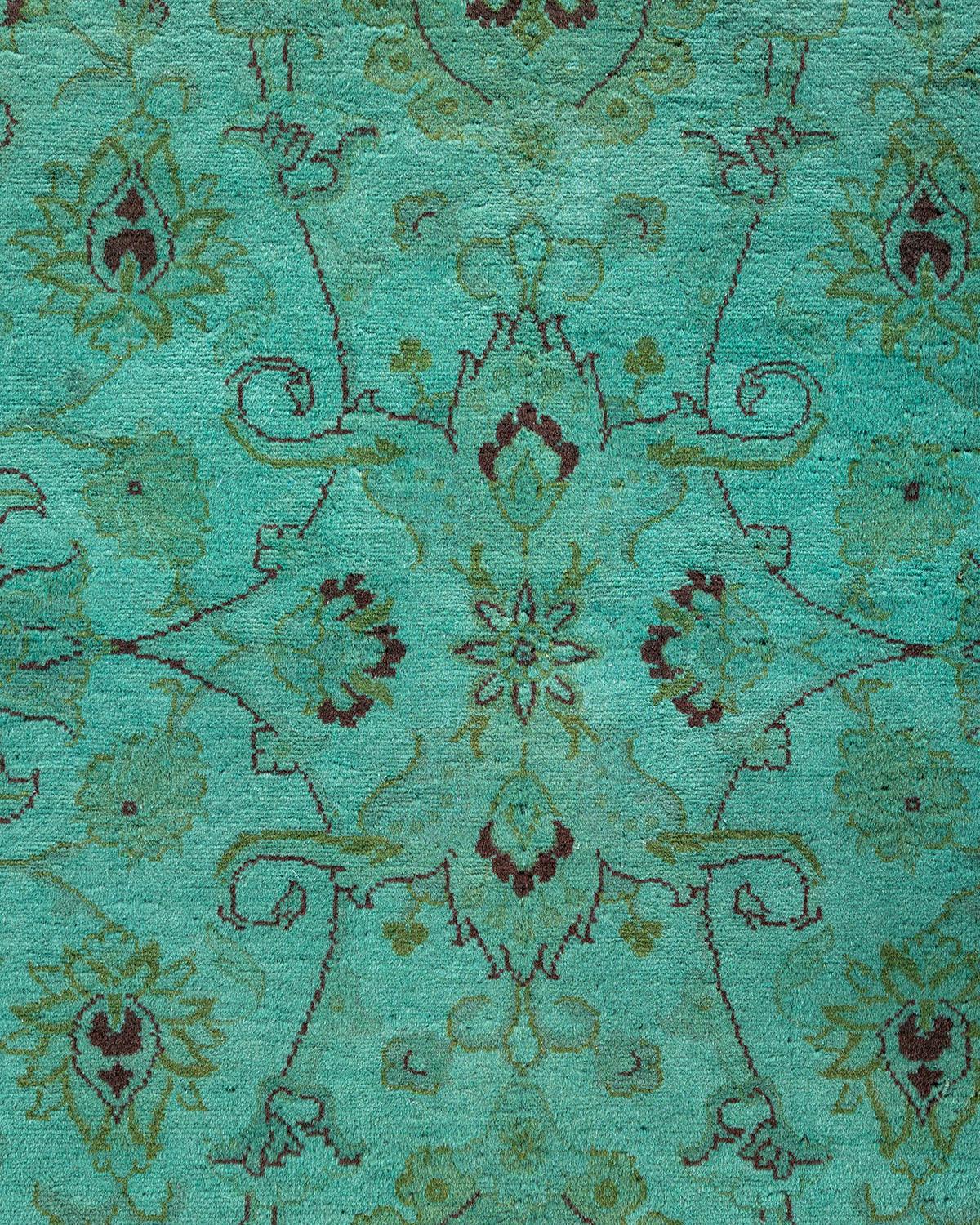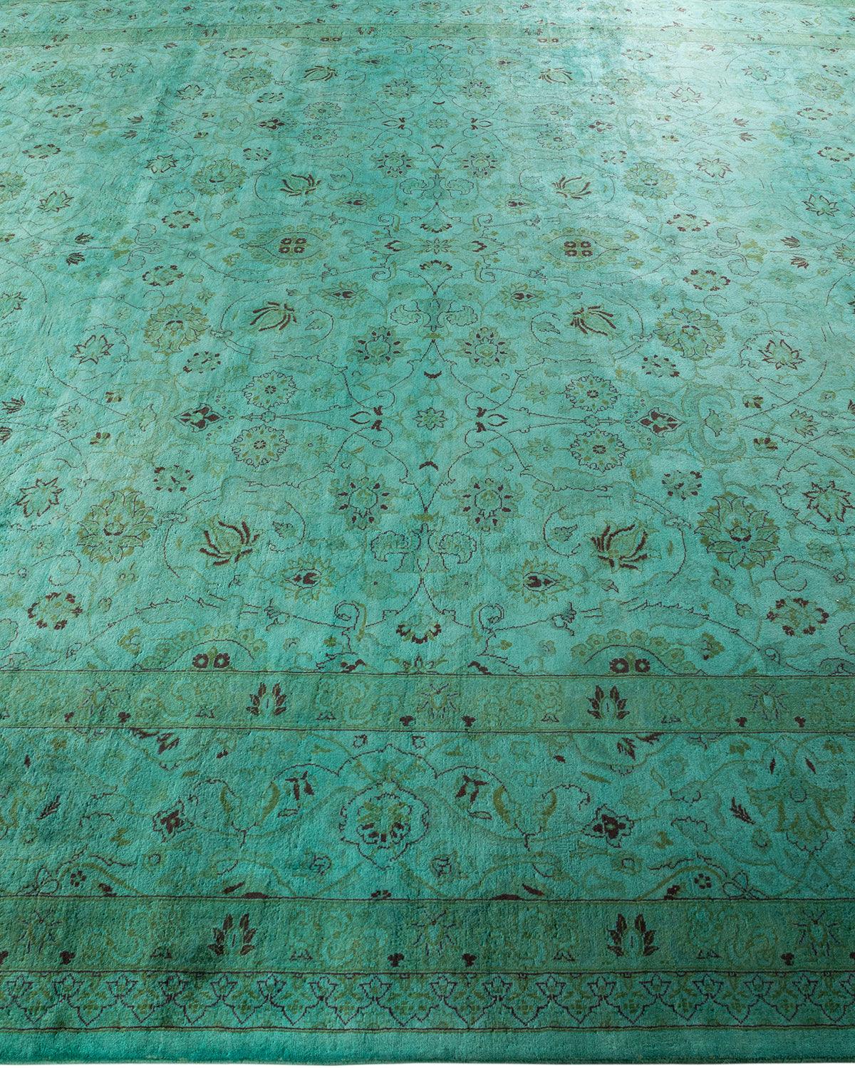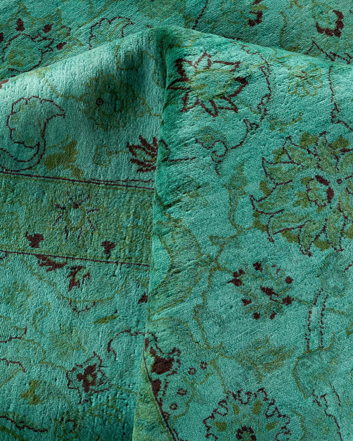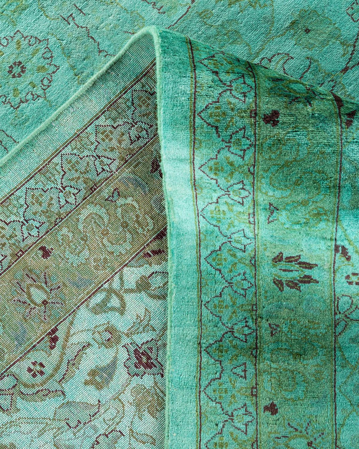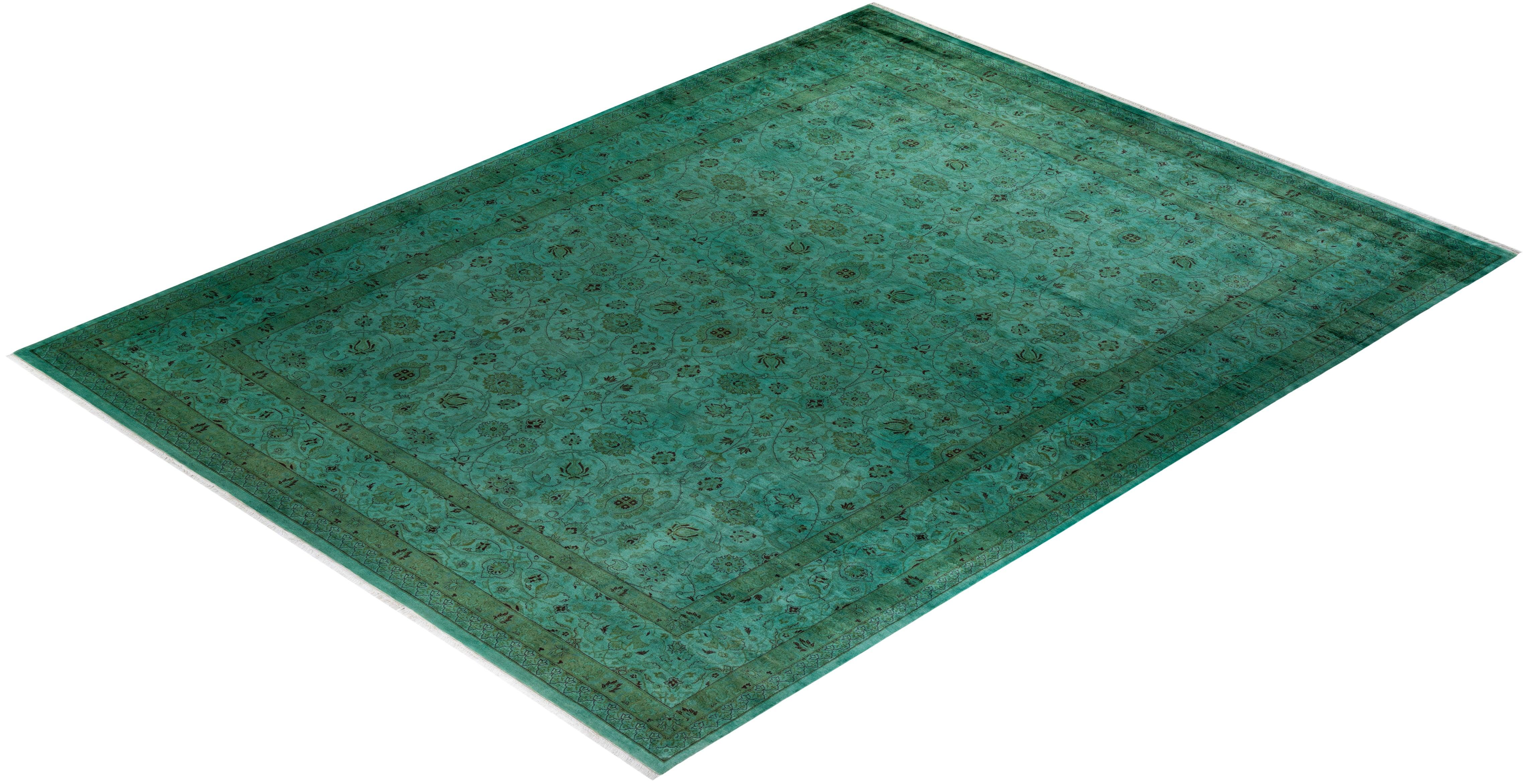 Contemporary Hand-Knotted Green Area Rug 9' 1" x 11' 10"