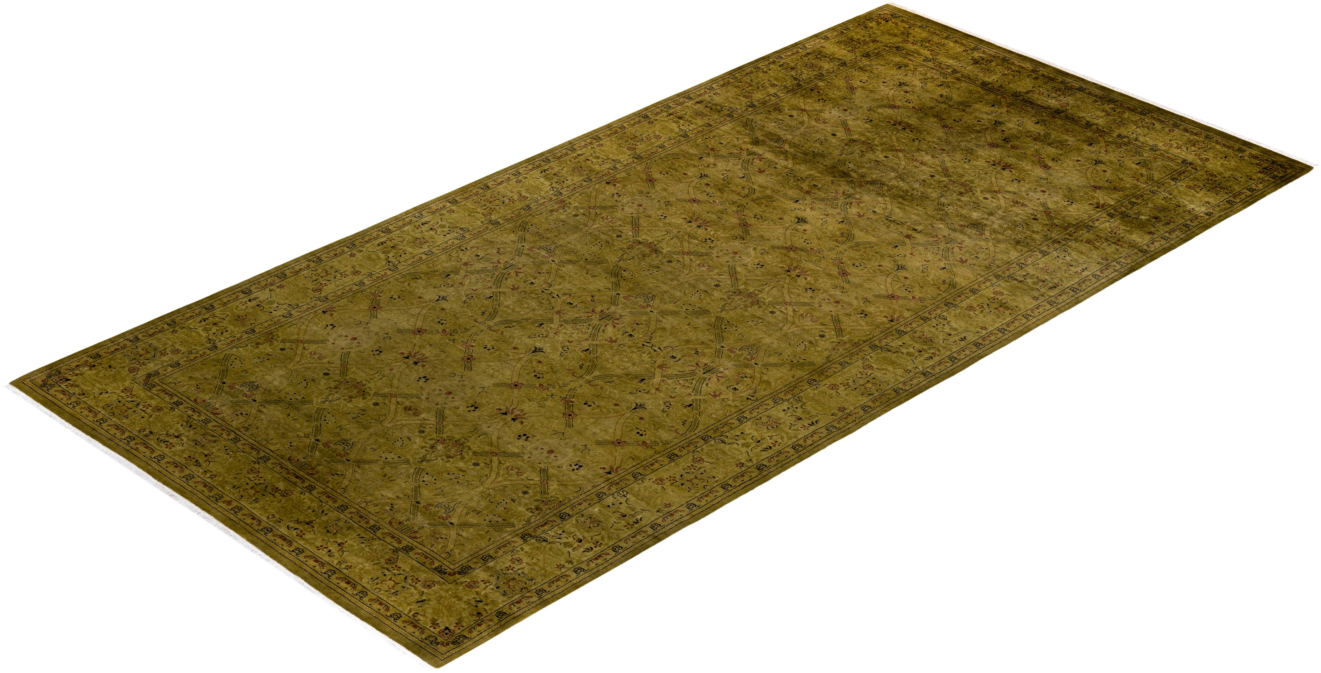 Contemporary Hand Knotted Overdyed Green Area Rug 6' 1" x 12' 4"