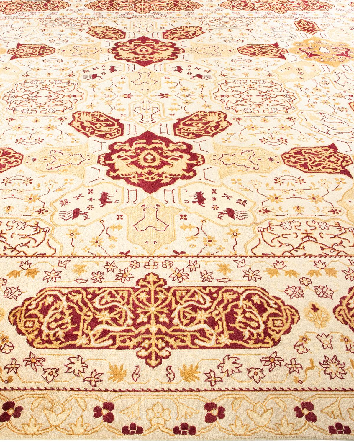 Contemporary Hand Knotted Eclectic Floral Ivory Area Rug 9' 0" x 11' 7"