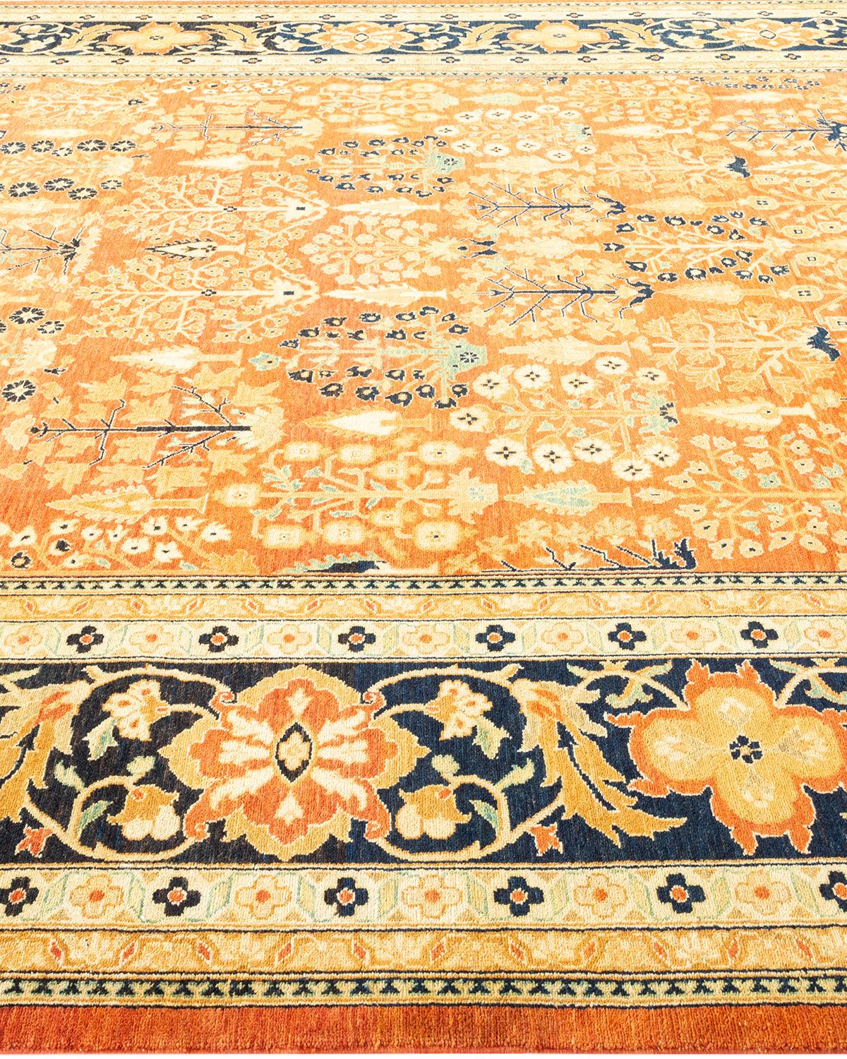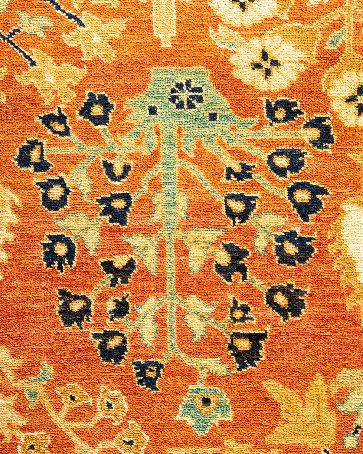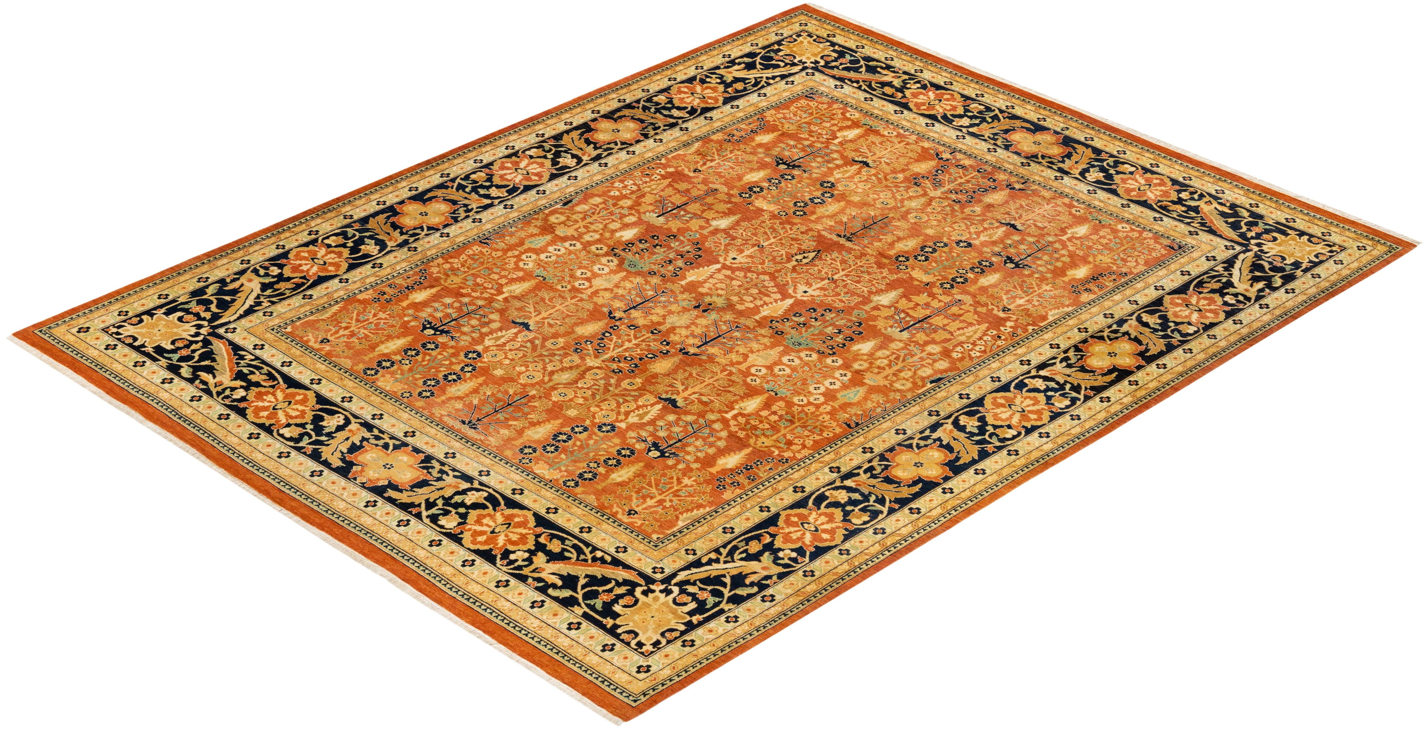 Contemporary Hand Knotted Eclectic Floral Orange Area Rug 9' 3" x 11' 10"