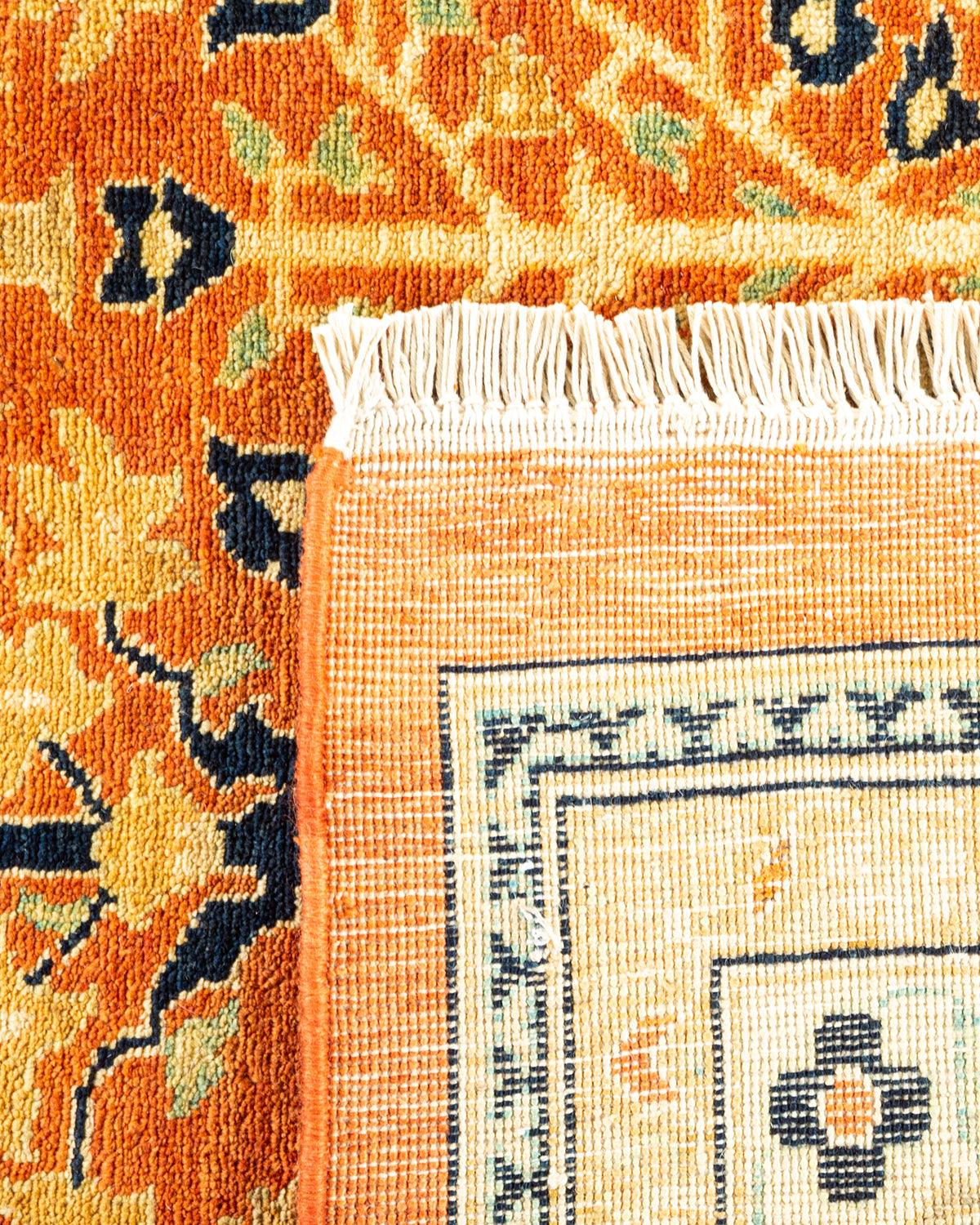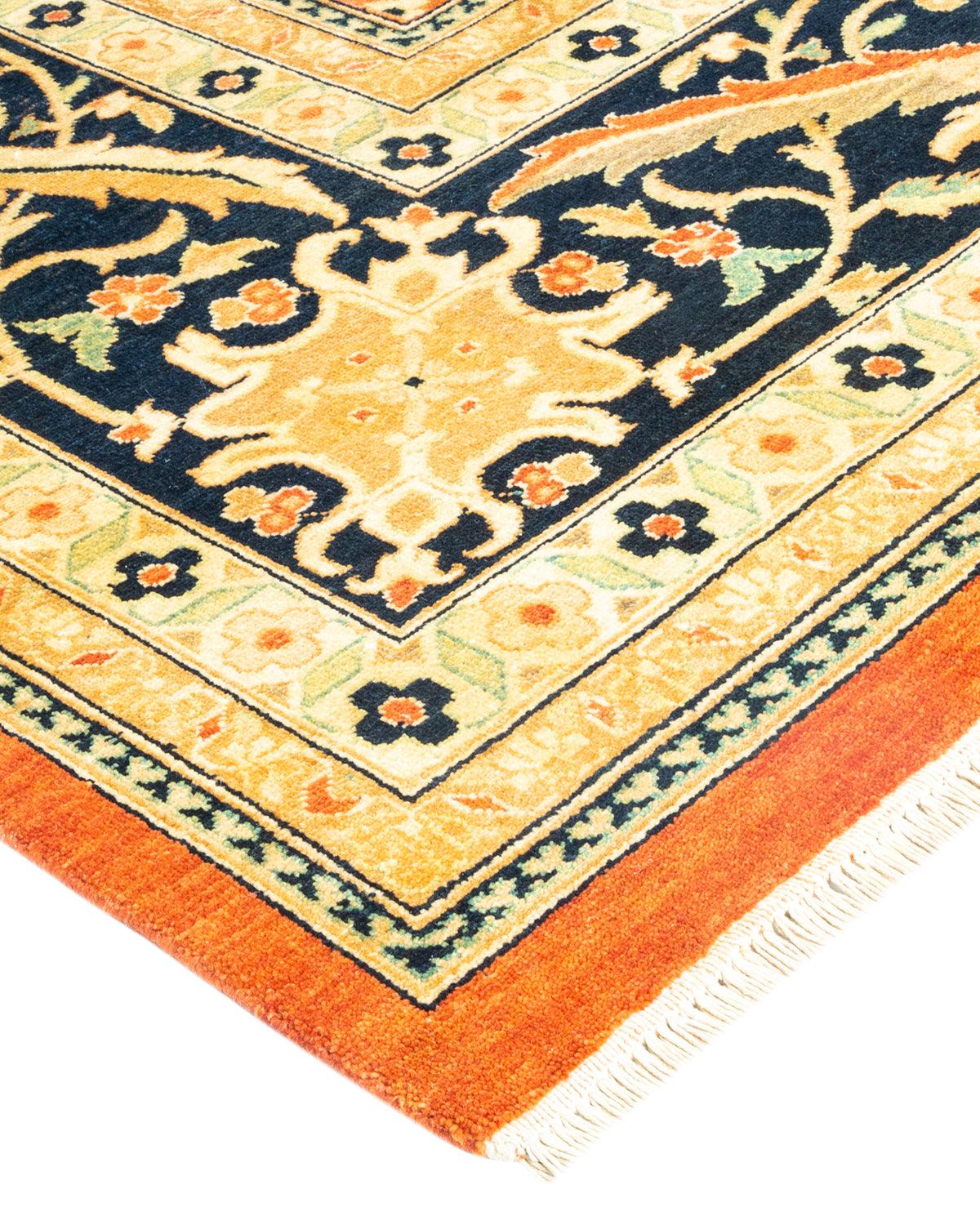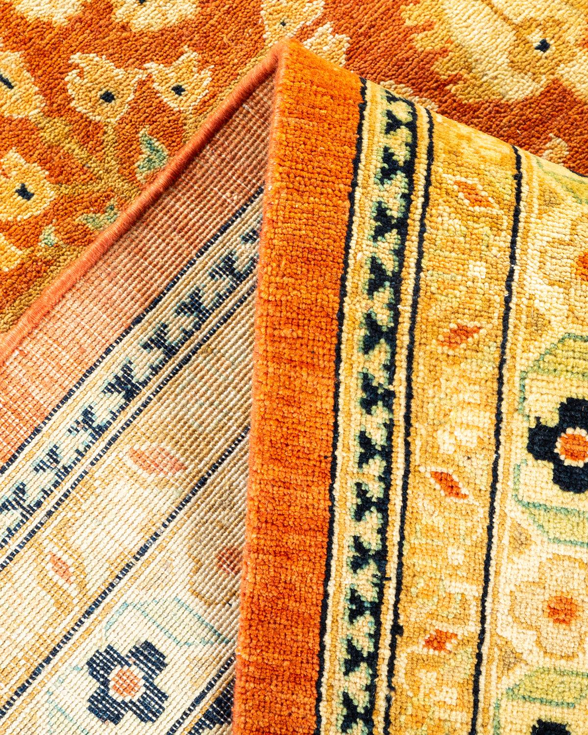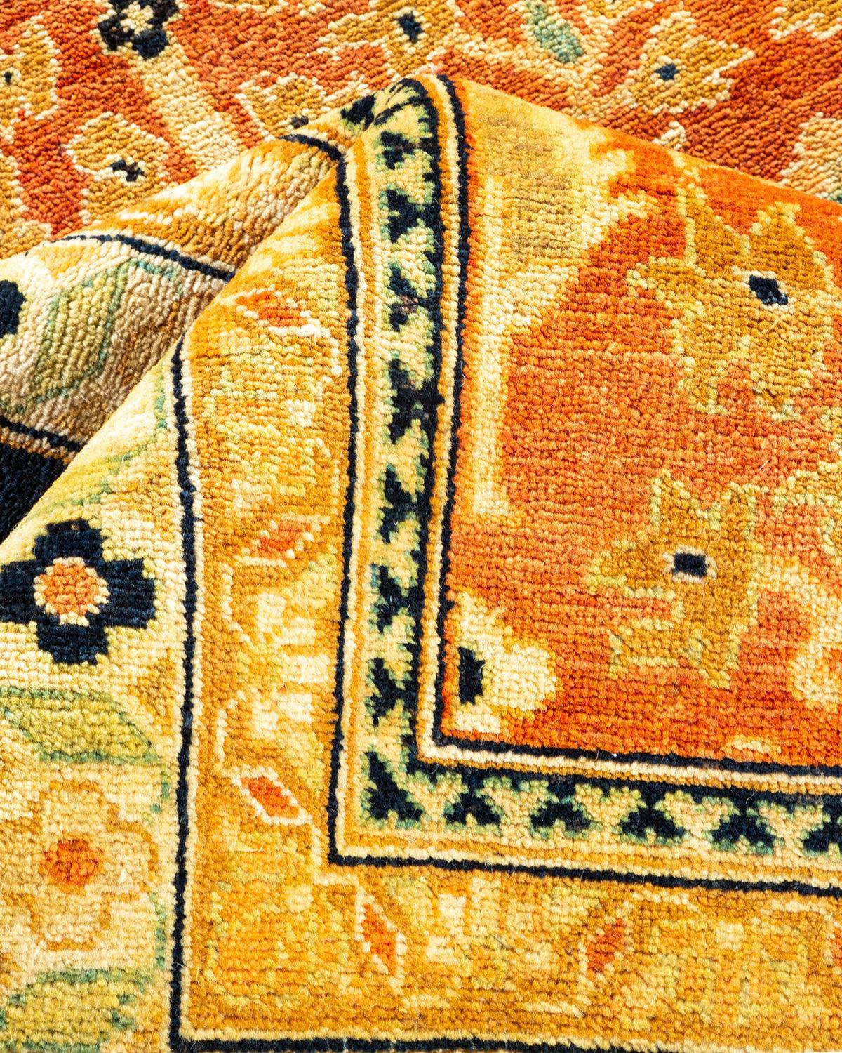 Contemporary Hand Knotted Eclectic Floral Orange Area Rug 9' 3" x 11' 10"