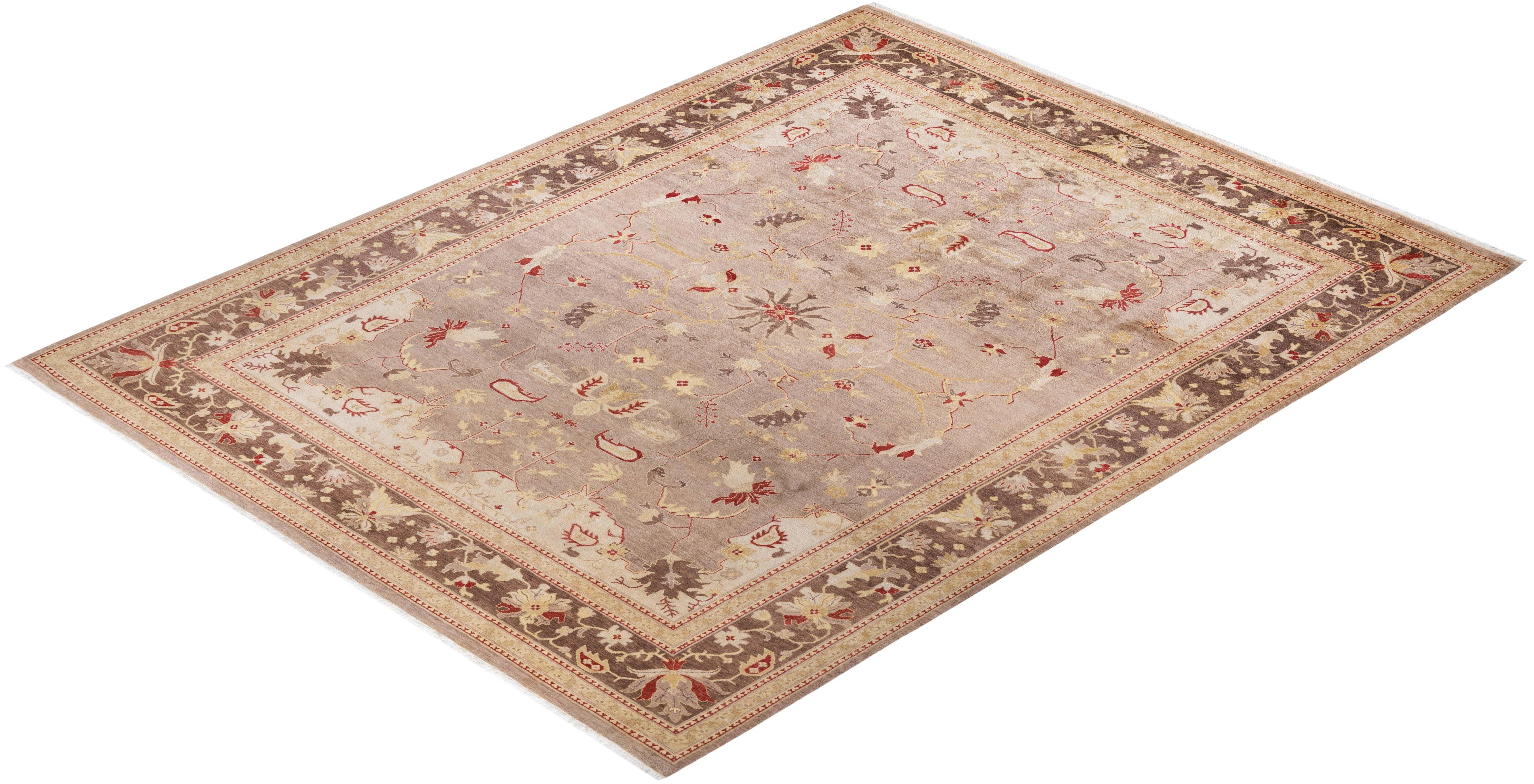 Contemporary Hand Knotted Eclectic Beige Area Rug 9' 4" x 12' 2"
