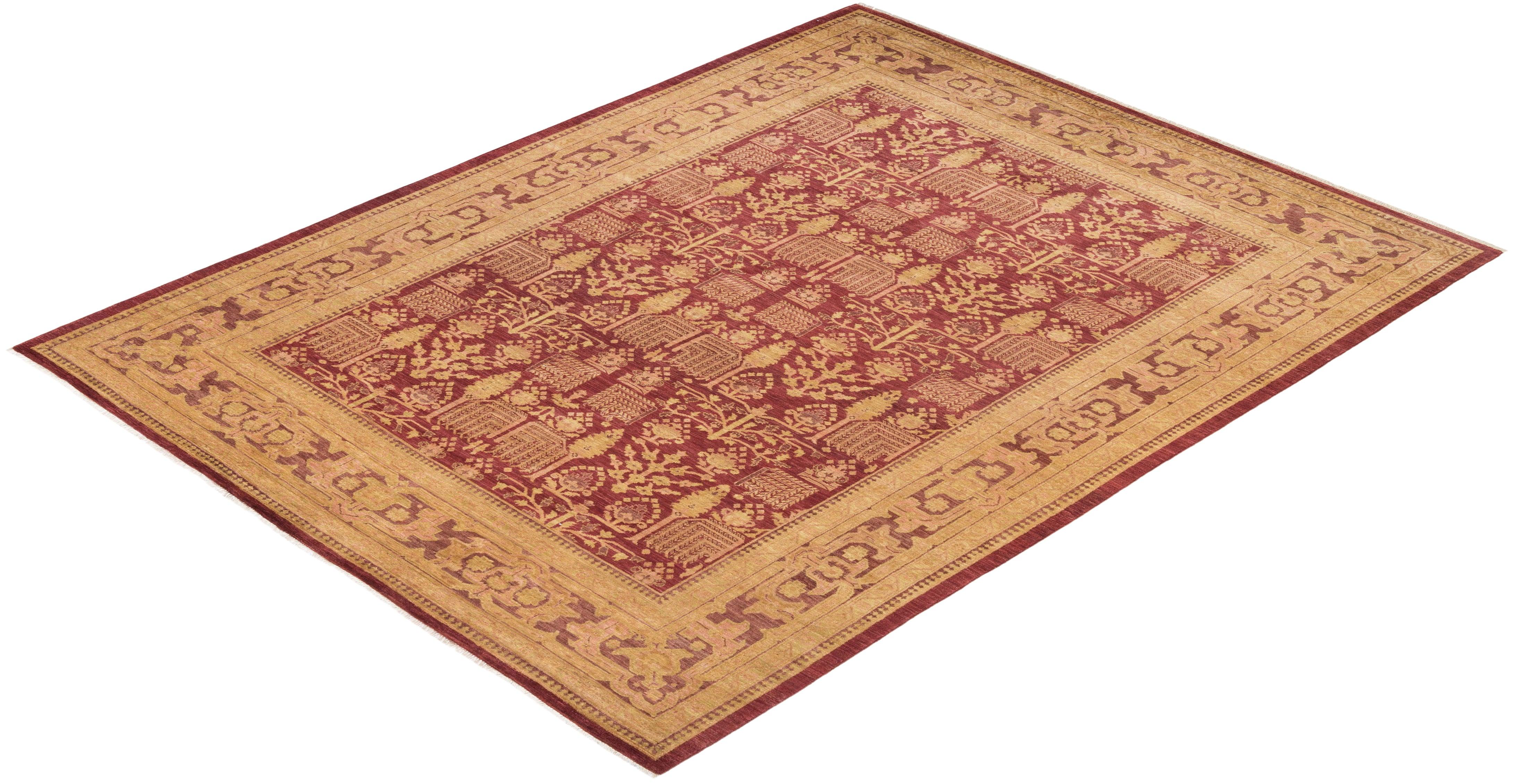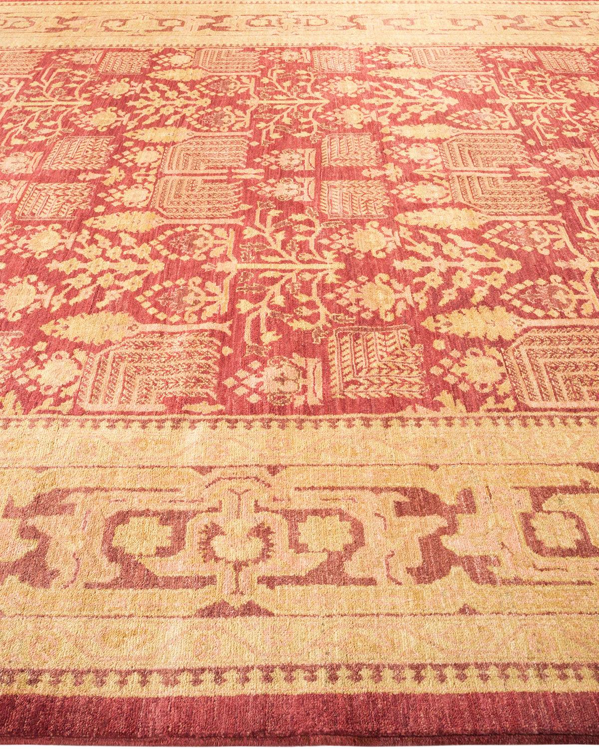 Contemporary Hand Knotted Eclectic Floral Orange Area Rug 9' 2" x 12' 0"