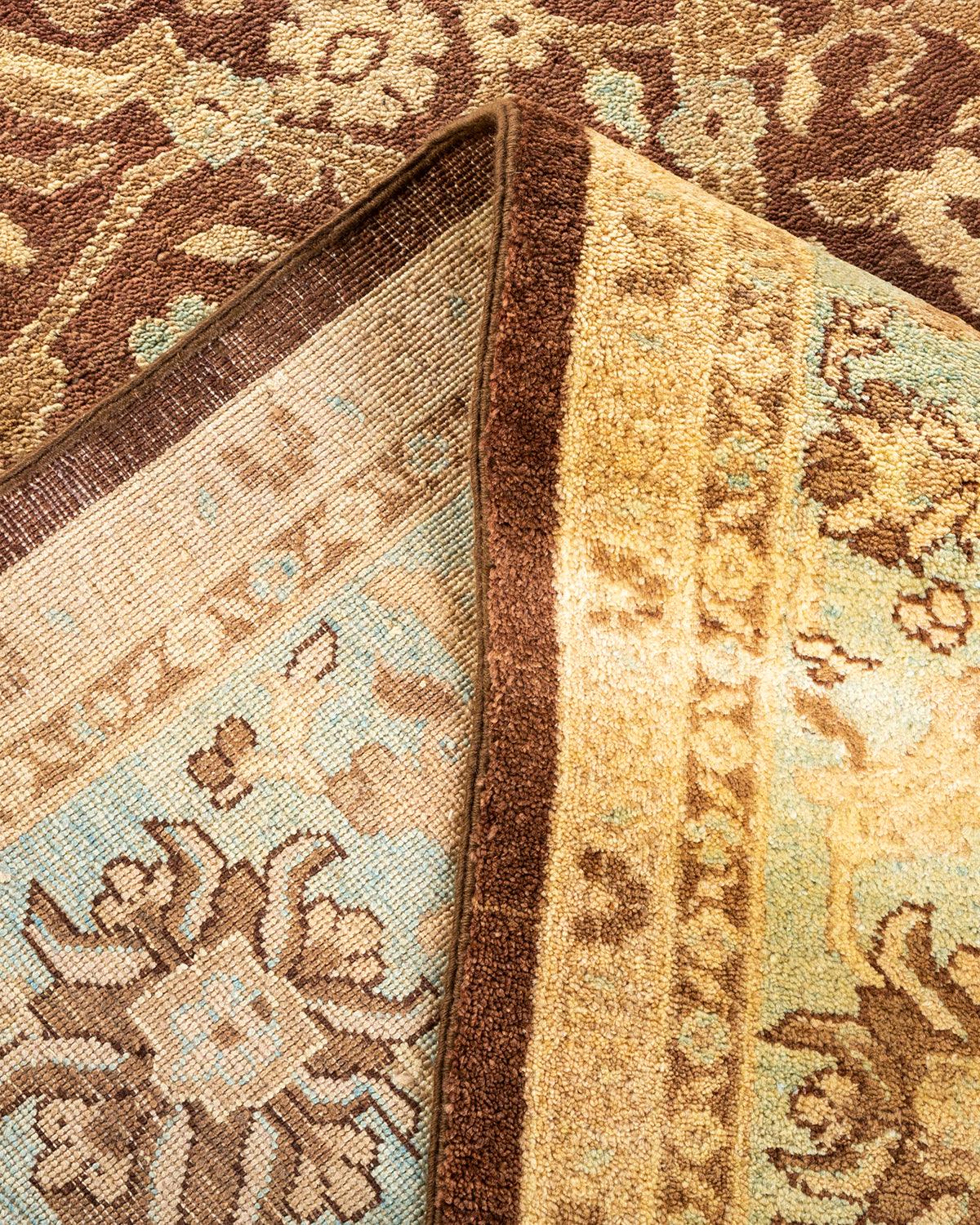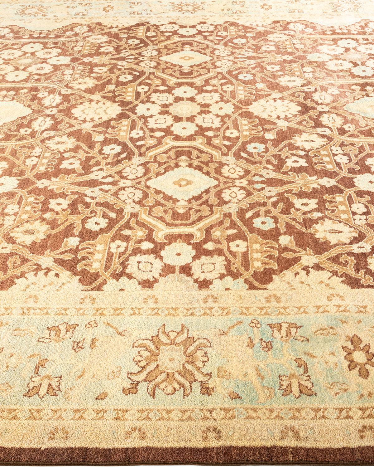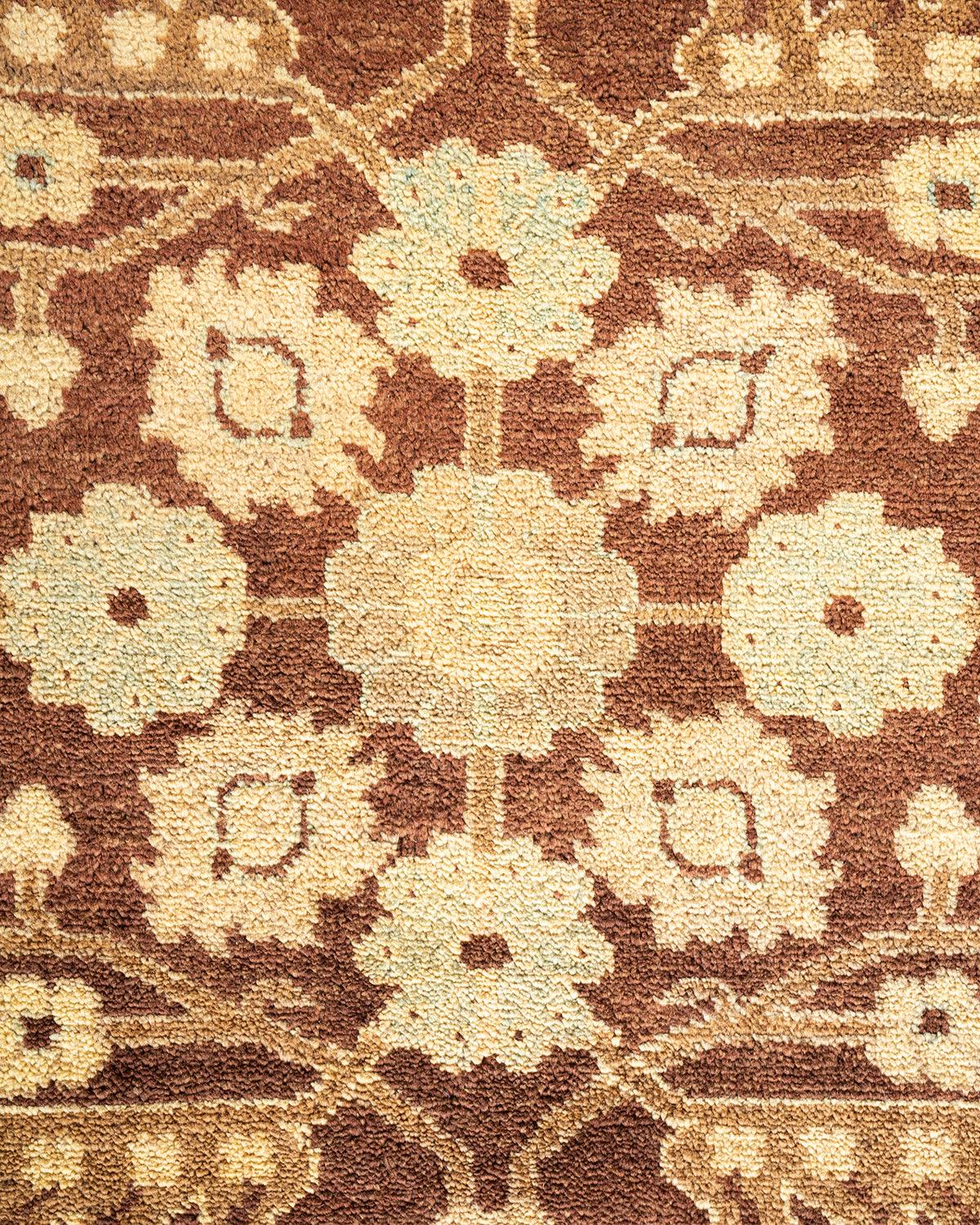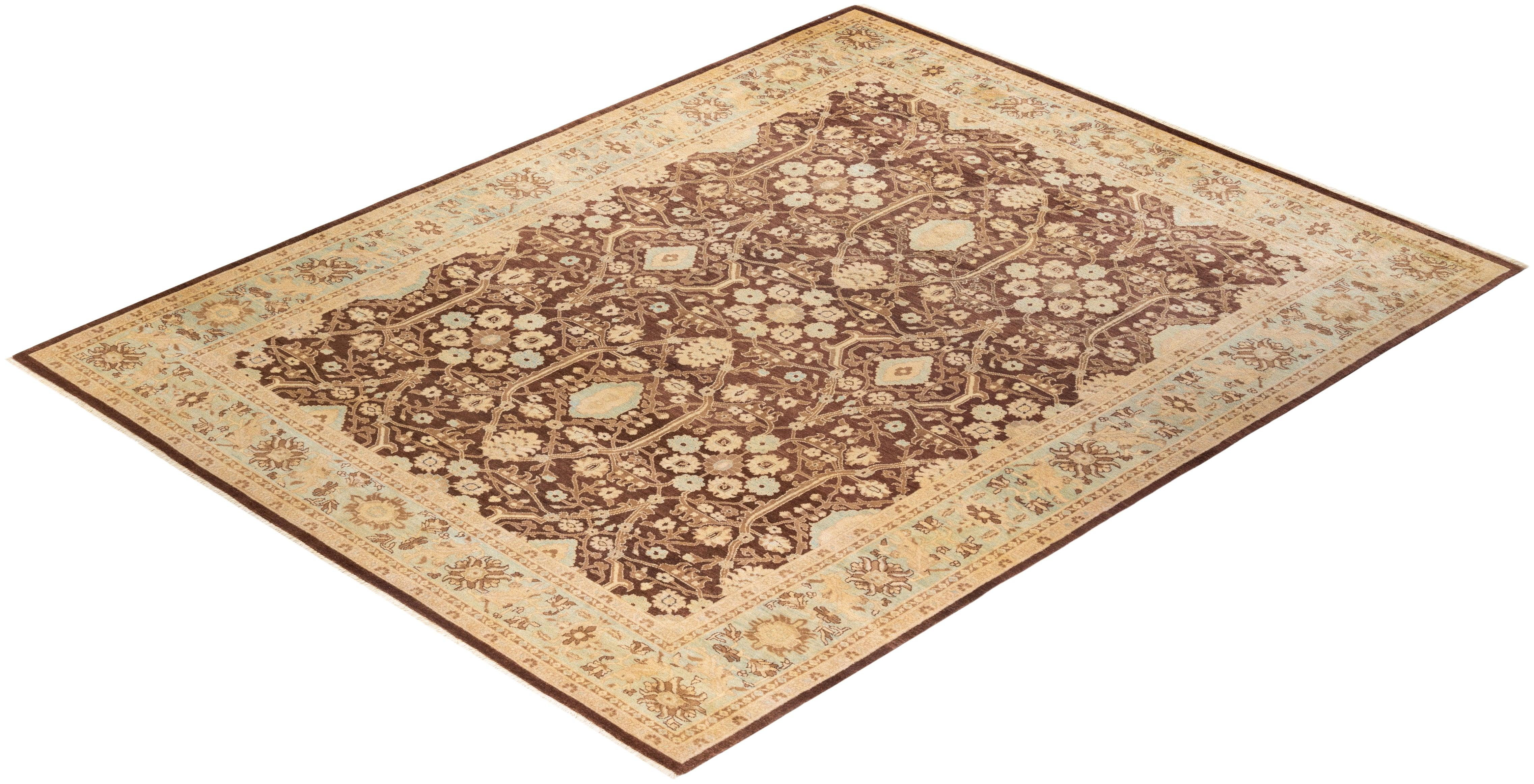 Contemporary Hand Knotted Eclectic Floral Brown Area Rug 8' 10" x 11' 10"