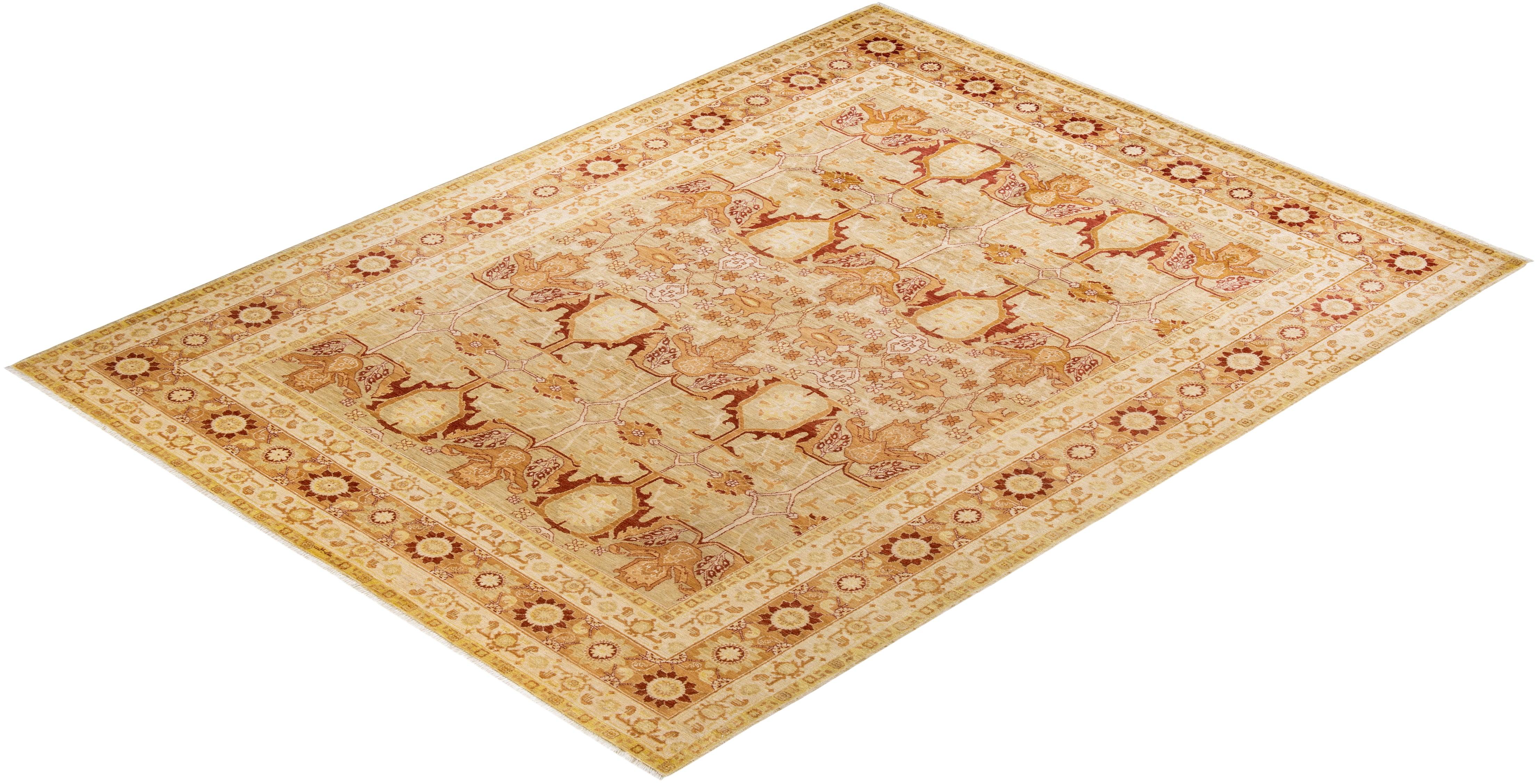 Contemporary Hand Knotted Eclectic Green Area Rug 9' 2" x 12' 4"