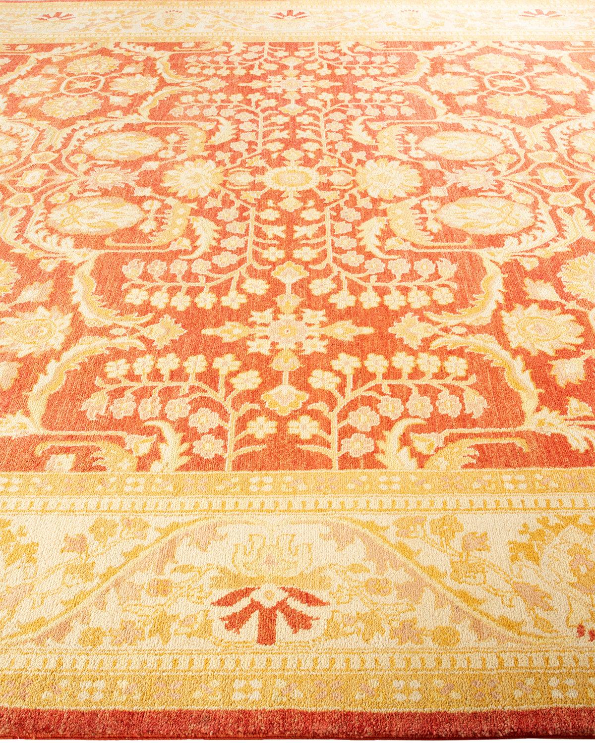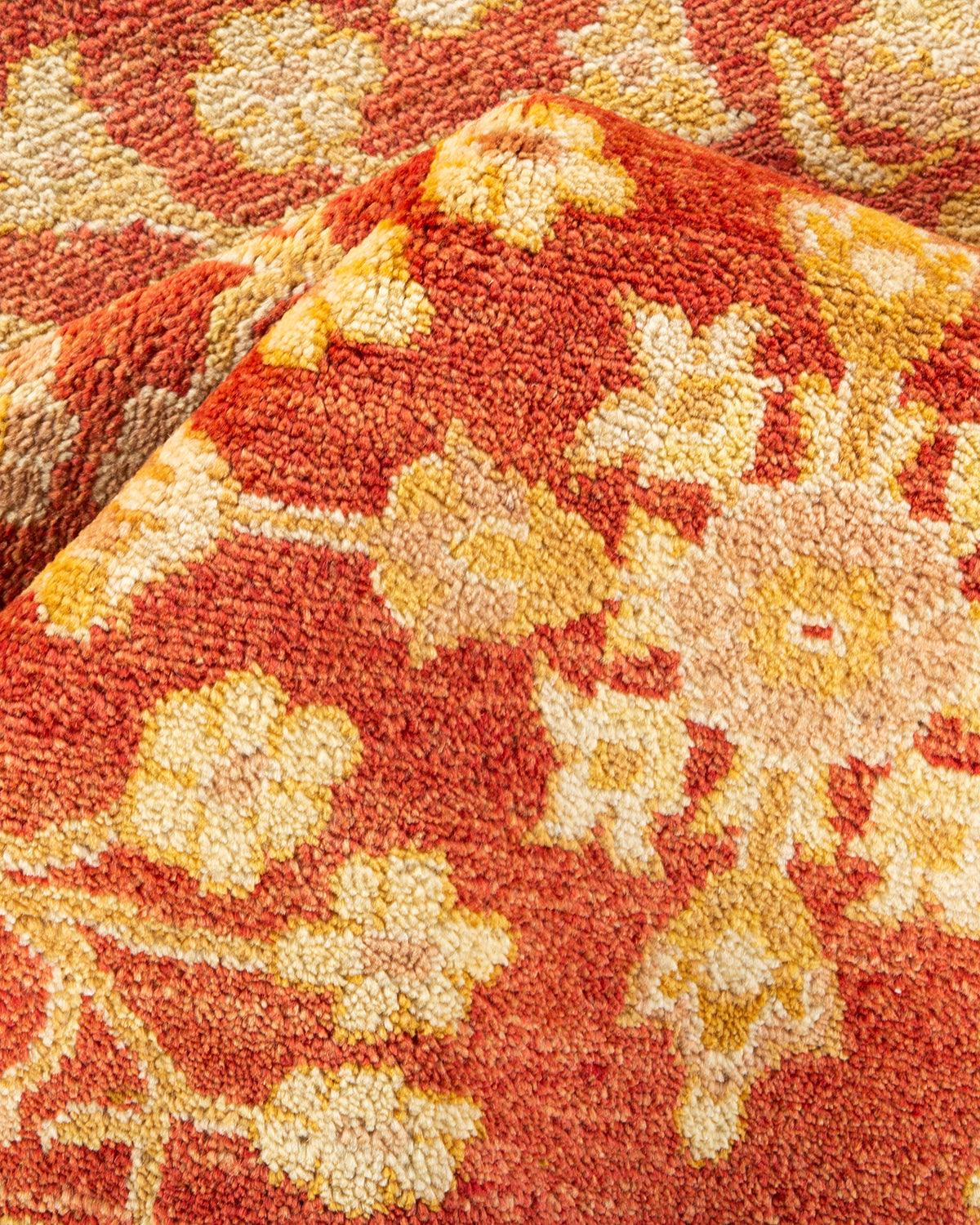 Contemporary Hand Knotted Eclectic Floral Orange Area Rug 8' 10" x 12' 3"