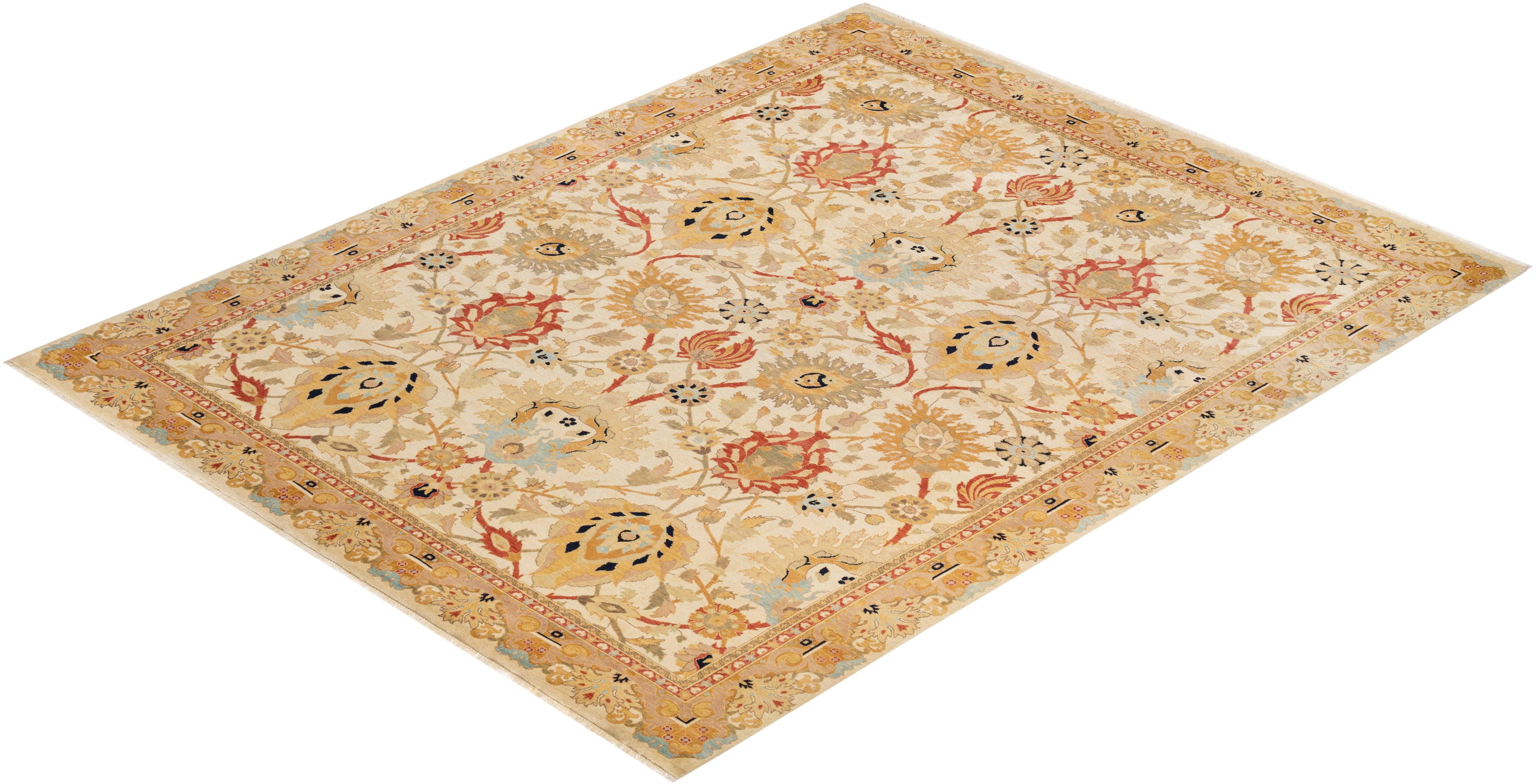Contemporary Hand Knotted Eclectic Ivory Area Rug 9' 2" x 11' 8"