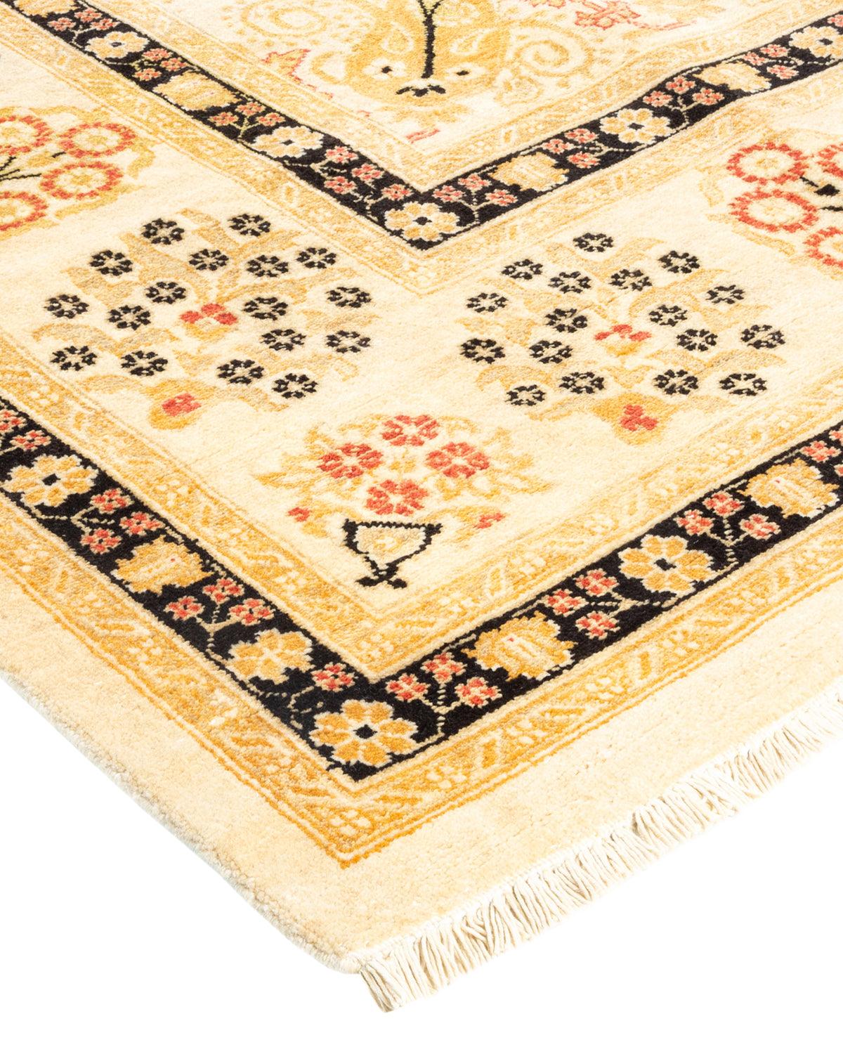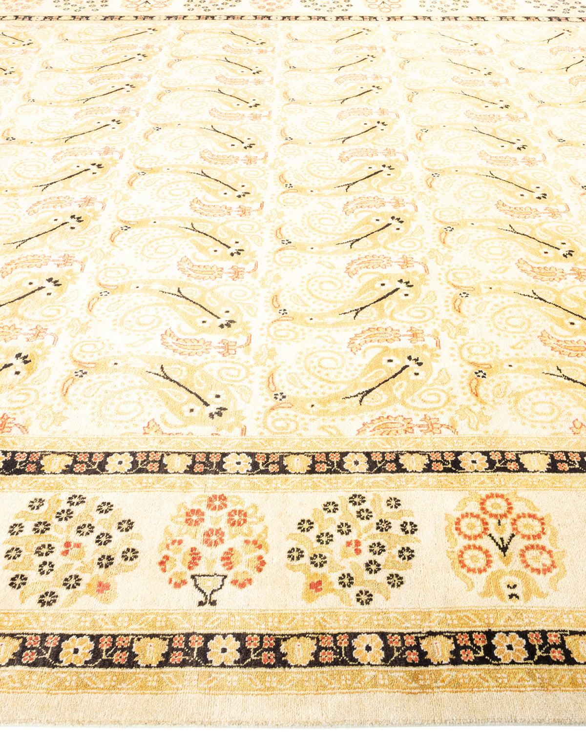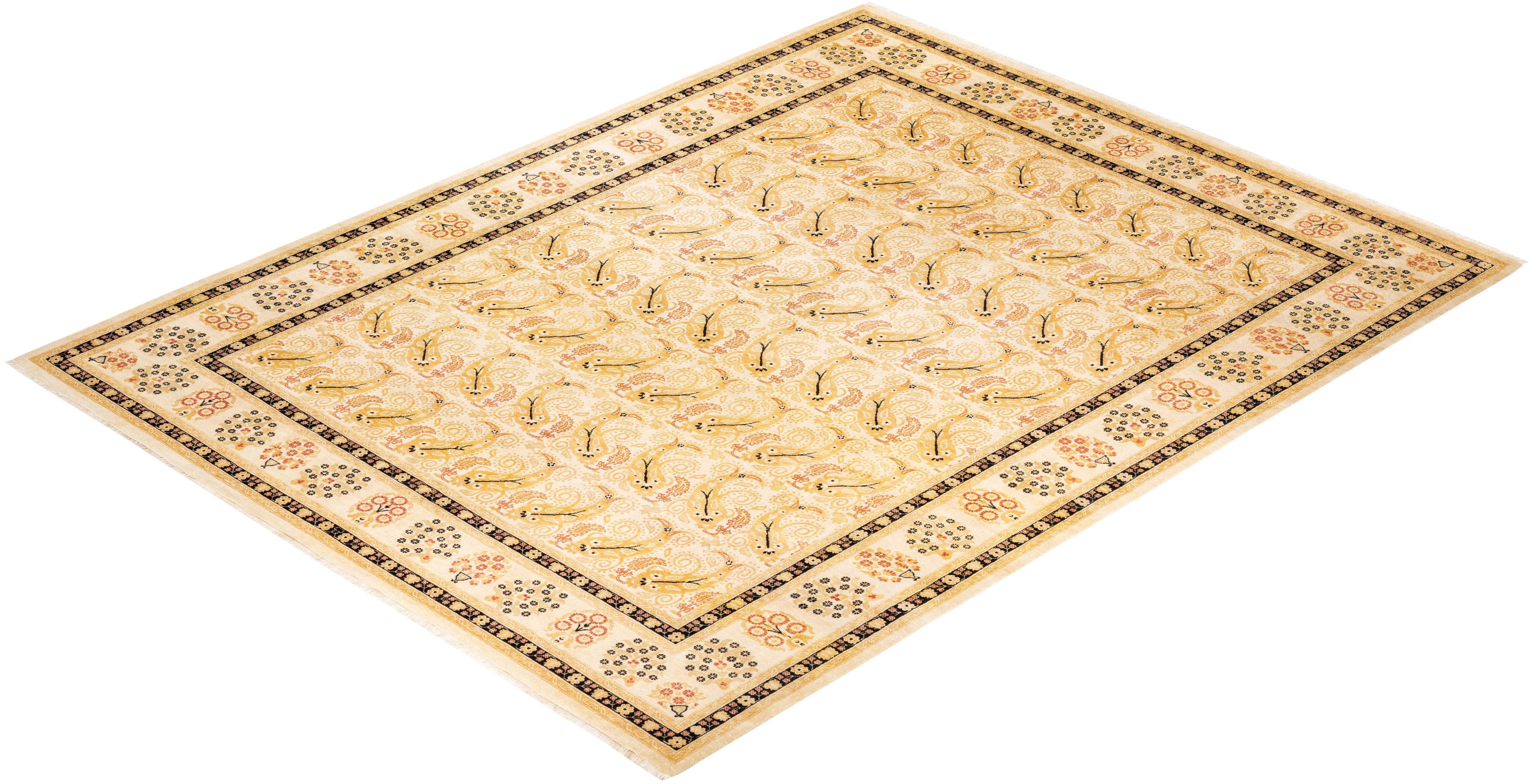 Contemporary Hand Knotted Eclectic Ivory Area Rug 9' 1" x 12' 0"