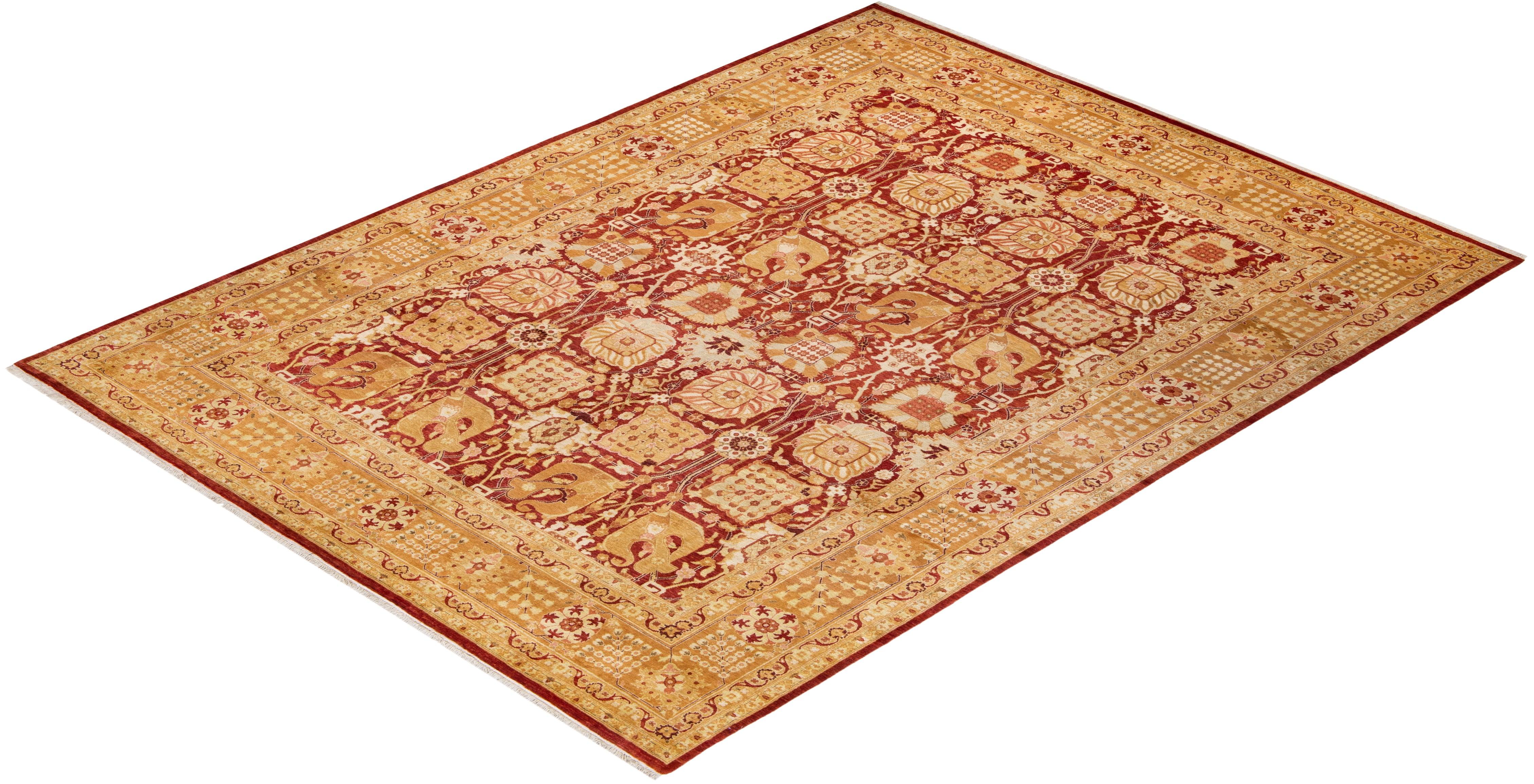 Contemporary Hand Knotted Eclectic Orange Area Rug 9' 2" x 12' 3"