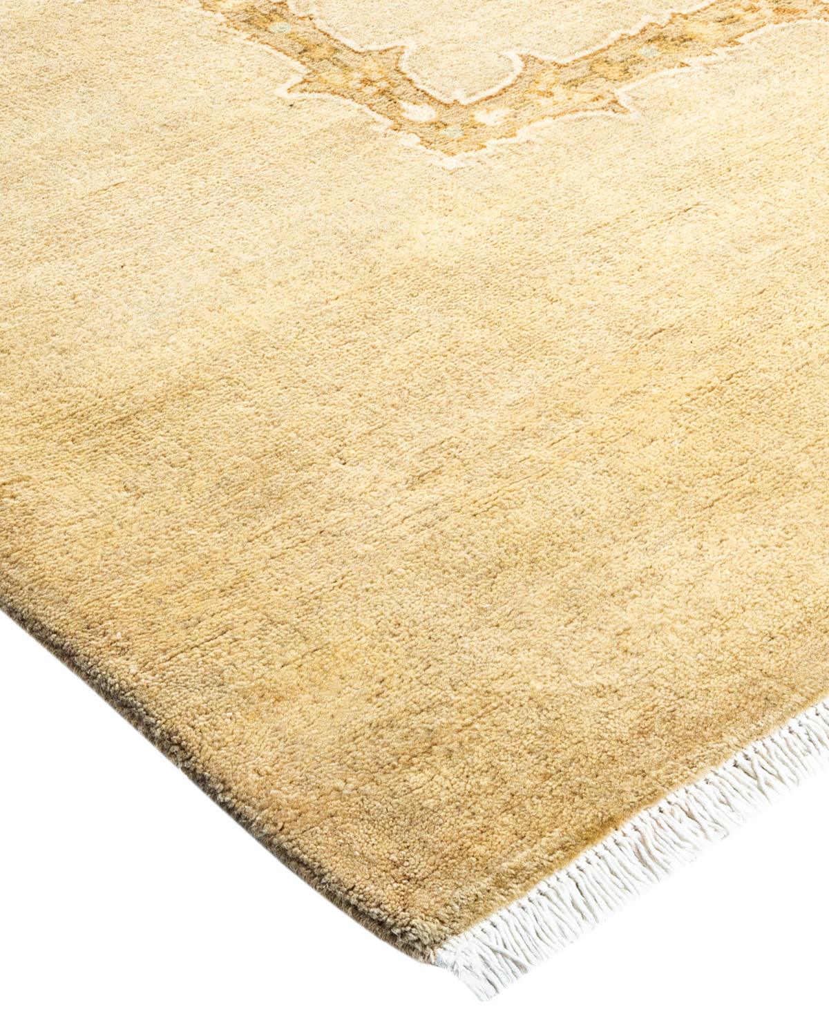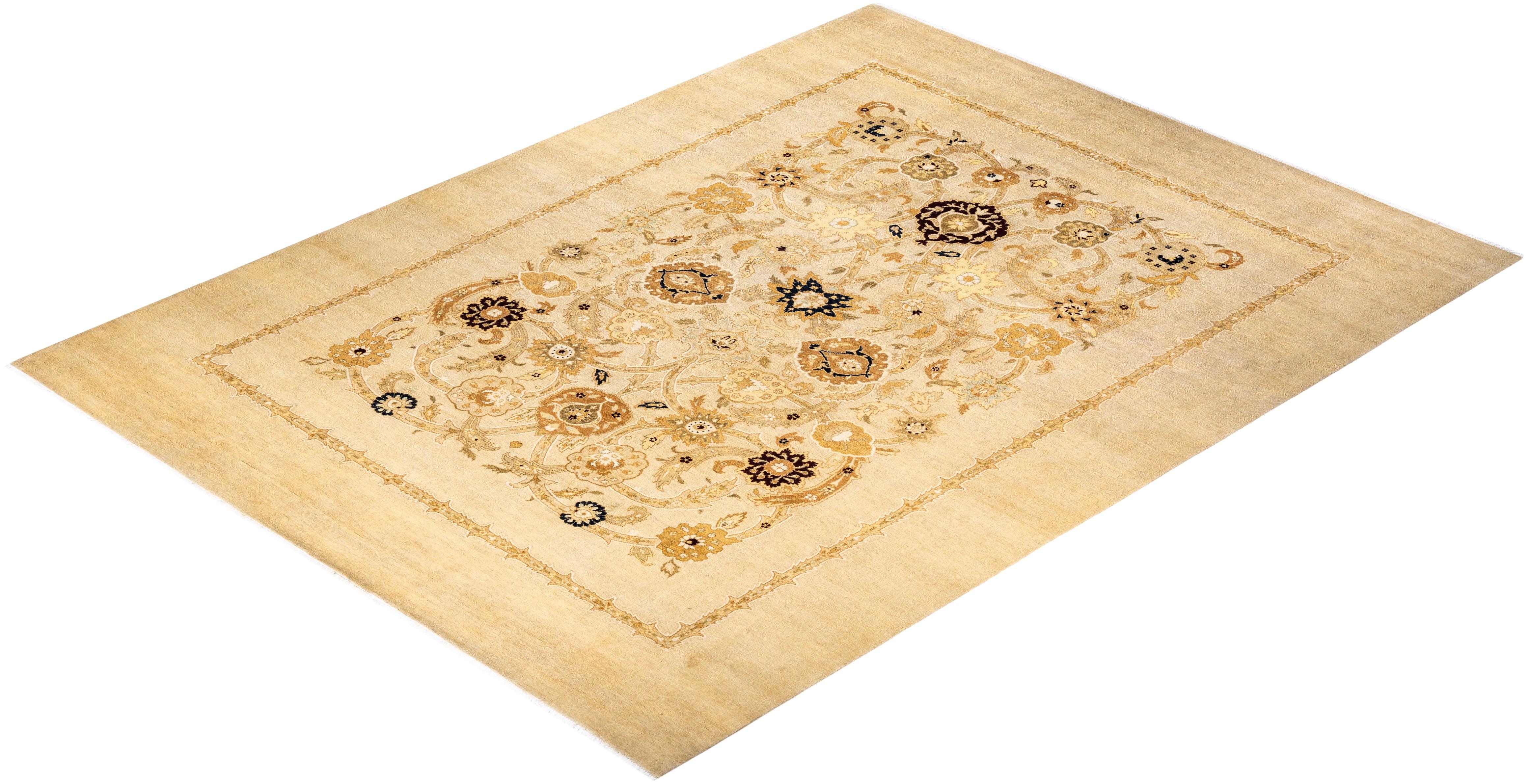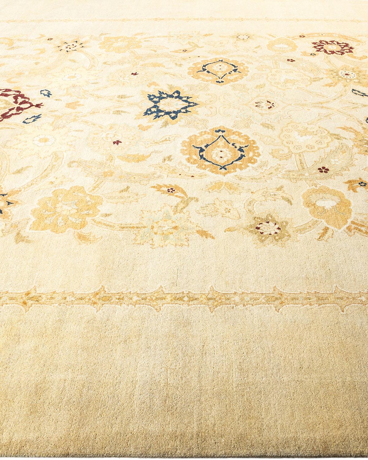Contemporary Hand Knotted Eclectic Ivory Area Rug 9' 1" x 12' 2"