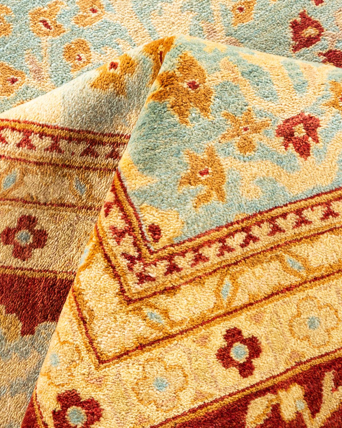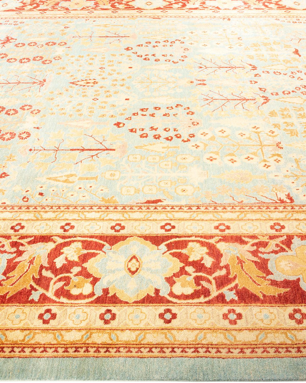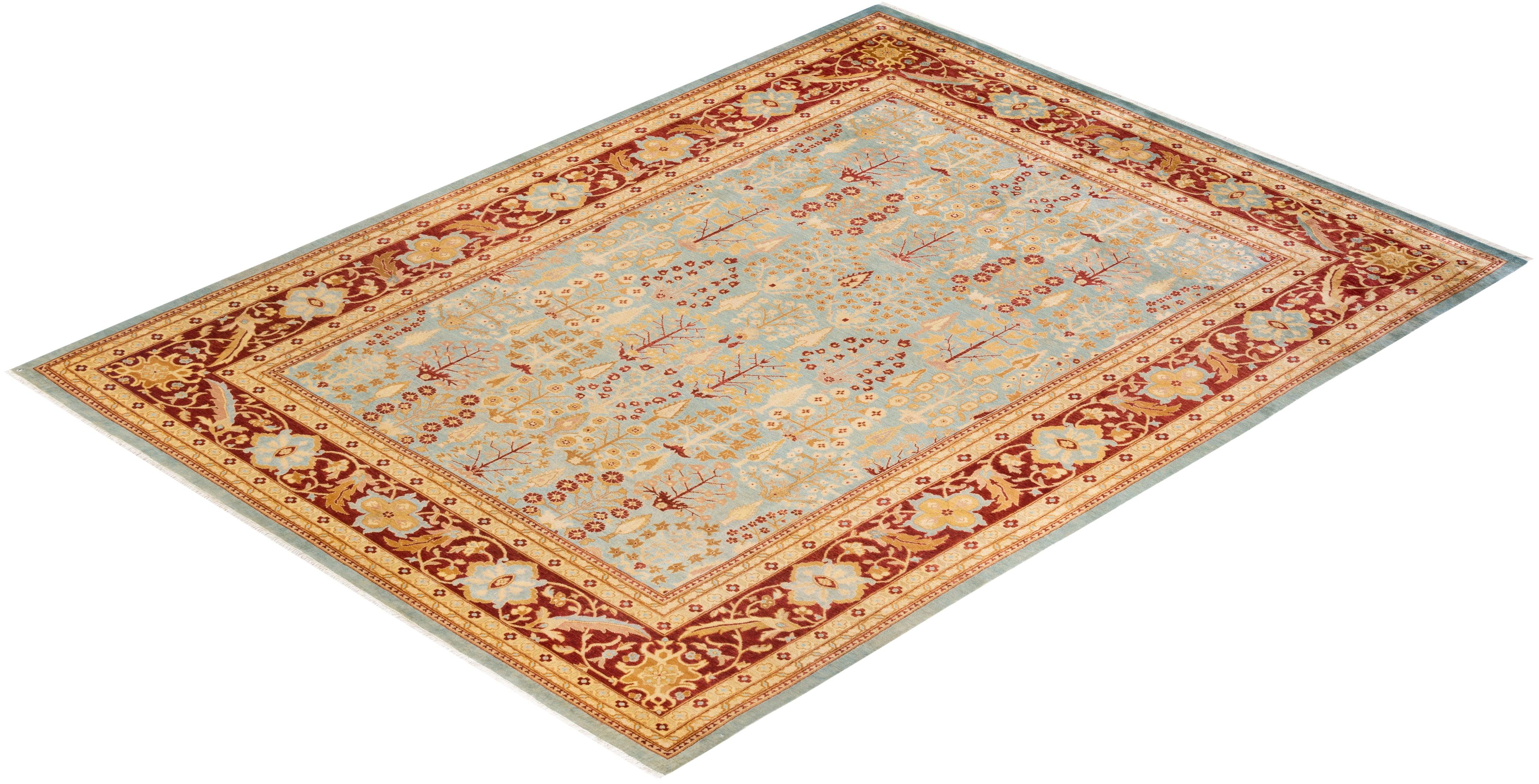 Contemporary Hand Knotted Eclectic Oriental Light Blue Area Rug 8' 10" x 12' 2"