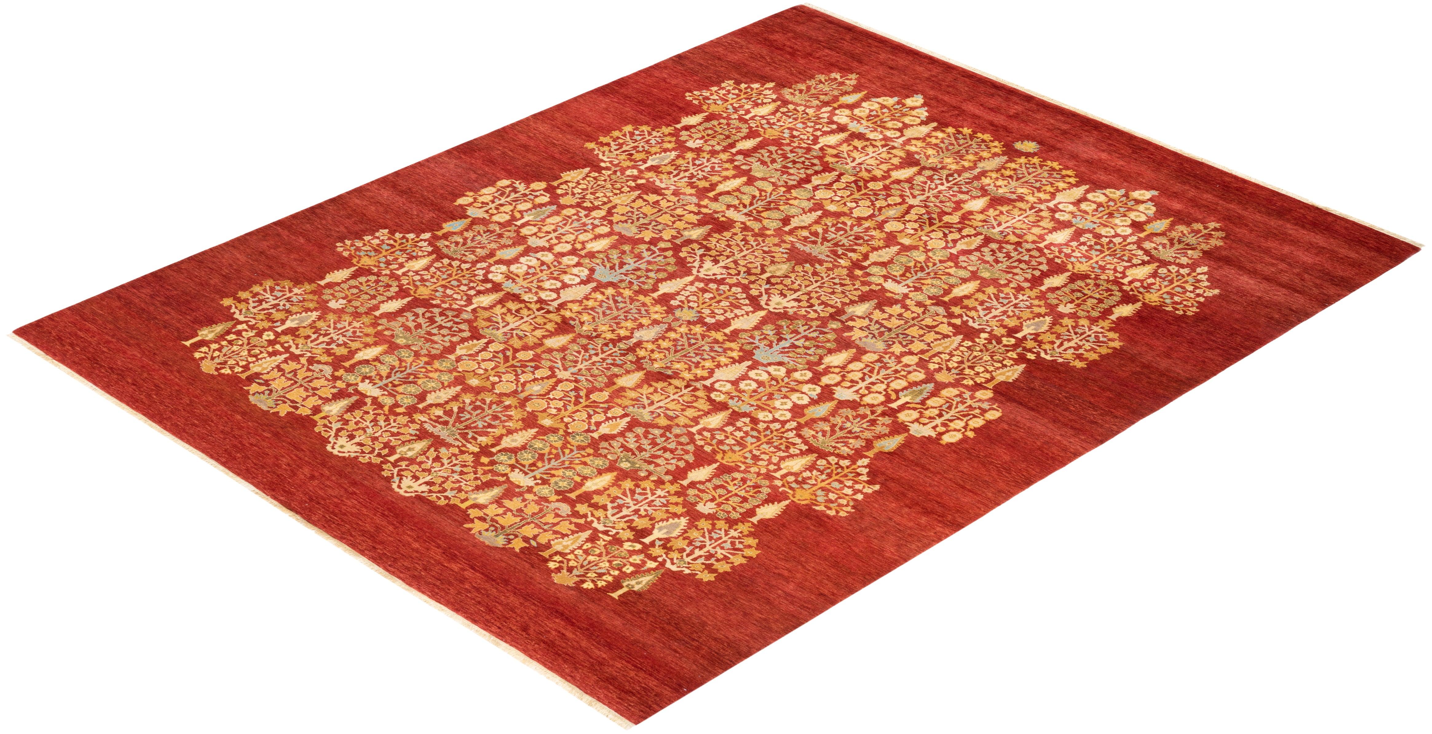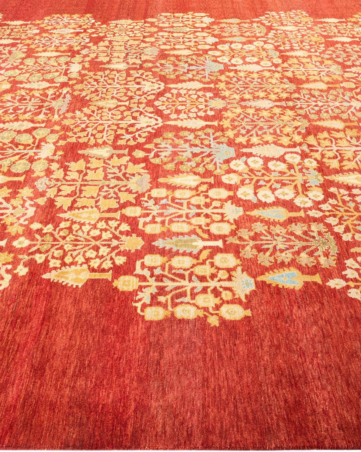 Contemporary Hand Knotted Eclectic Orange Area Rug 9' 1" x 12' 2"